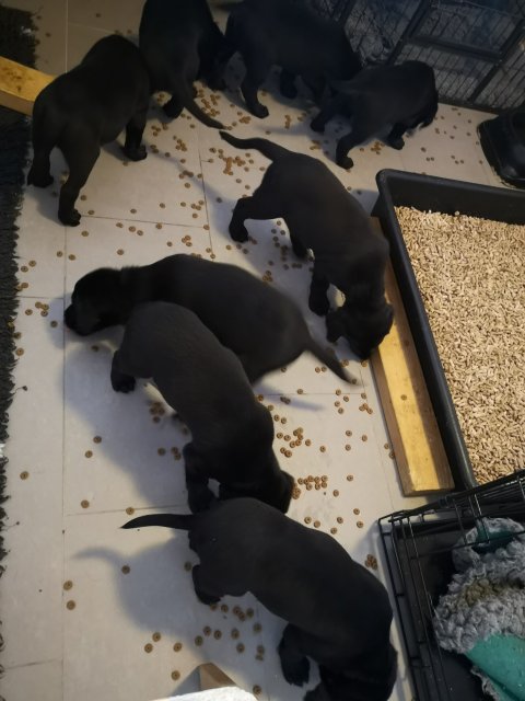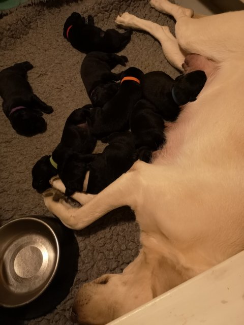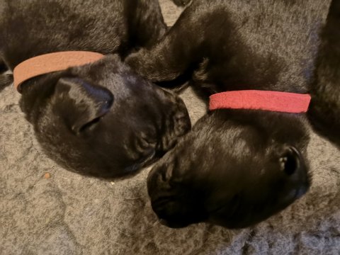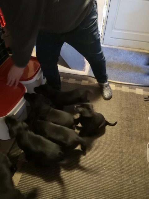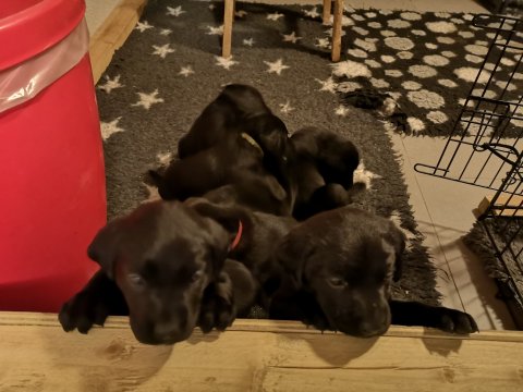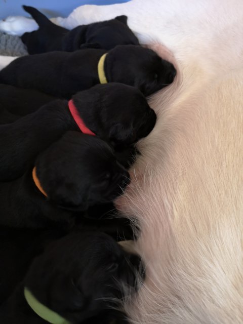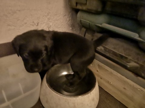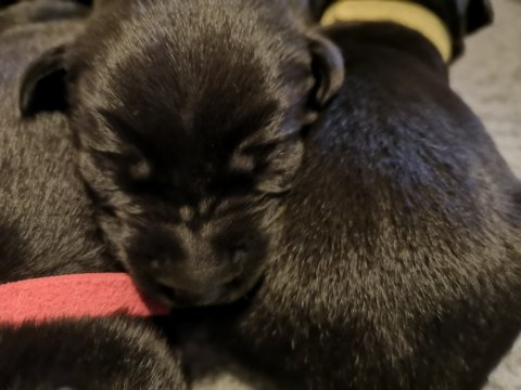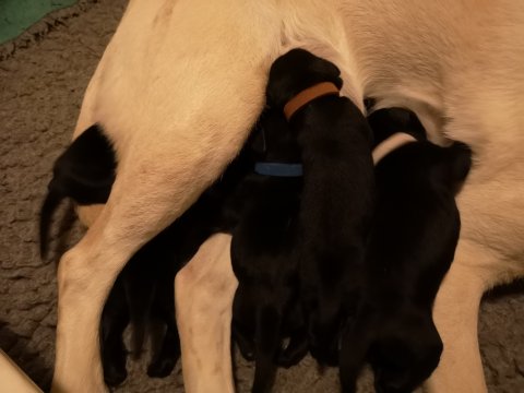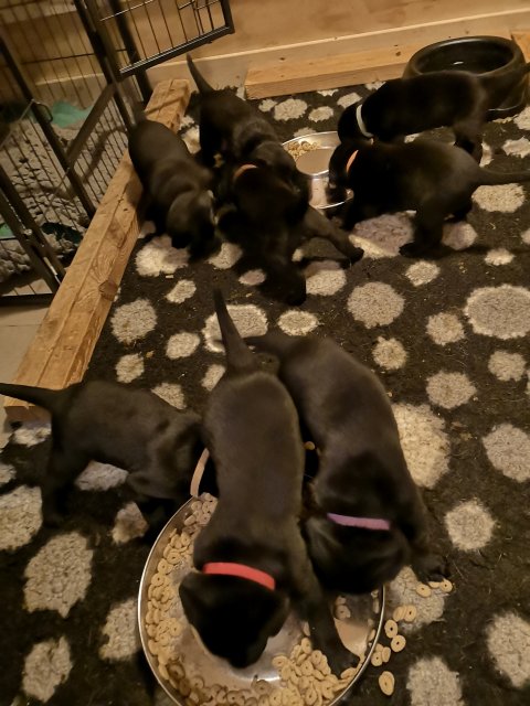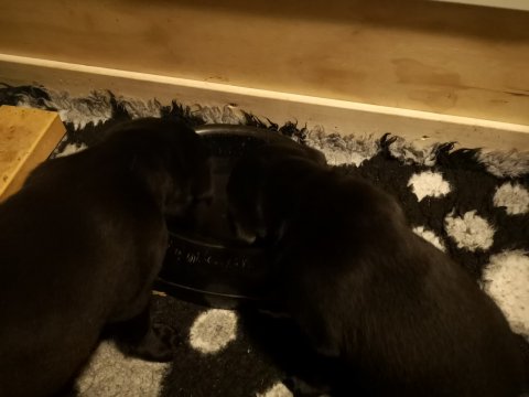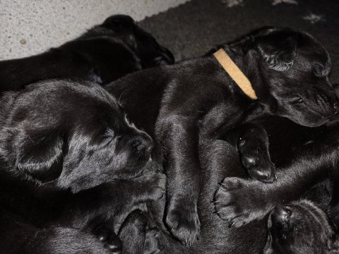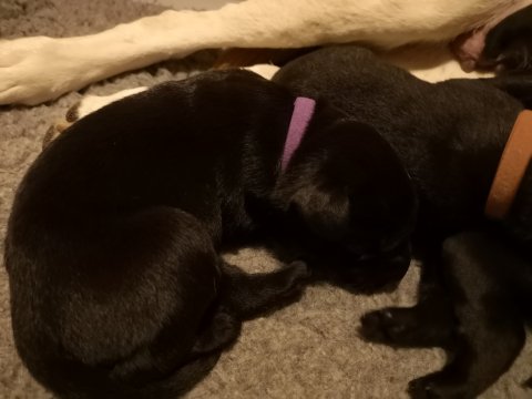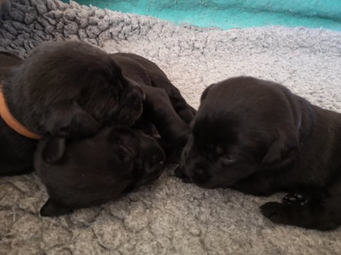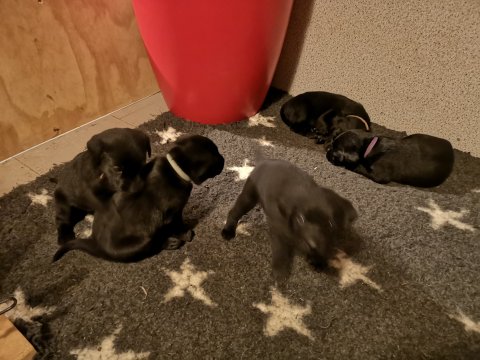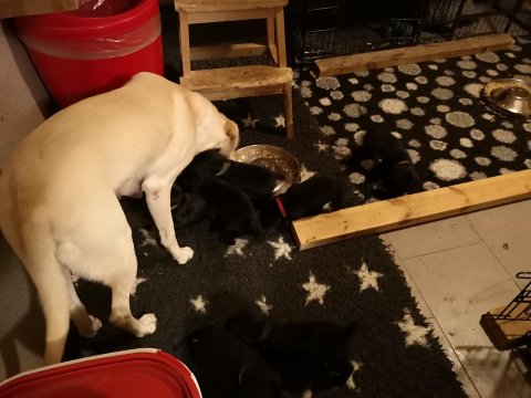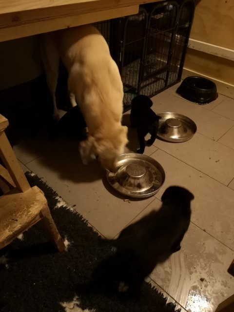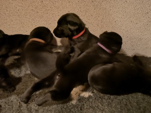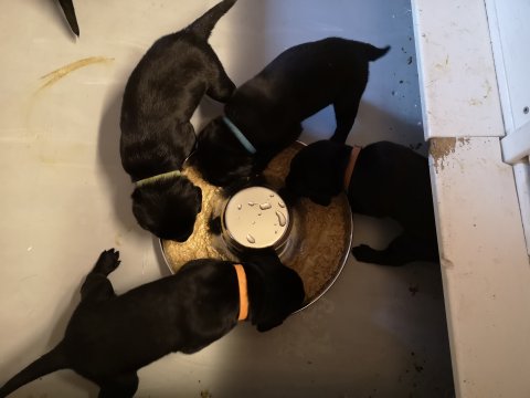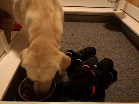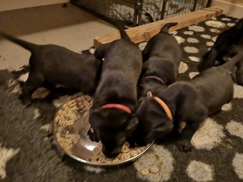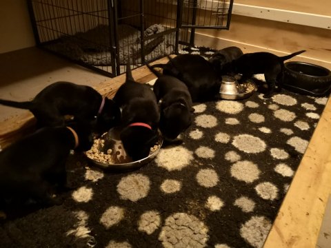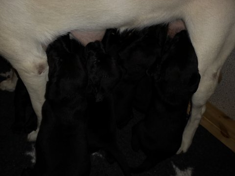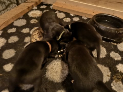 I denne uge er der sket meget med hvalpene. De har alle fået øjne og begyndt at bevæge sig rundt i kassen næsten som rigtig små hunde. De er meget nysgerrig på hvad der sker uden for hvalpkassen og de træner i og finde deres egen lyd, små bjæf og noget der ligner. De har også opdaget de andre hvalpe, så de er begyndt at "slås" med hinanden. De er også begyndt at få opblødt hvalpefoder, hvilket alle hvalpene spiser med velbehag, men de er ikke altid lige pæne når de er færdig med at spise, så er det godt at mor Mila kommer ind og vasker dem også kan de få deres livret mælk fra Mila´s mælkebar.