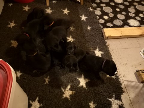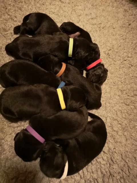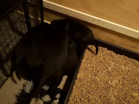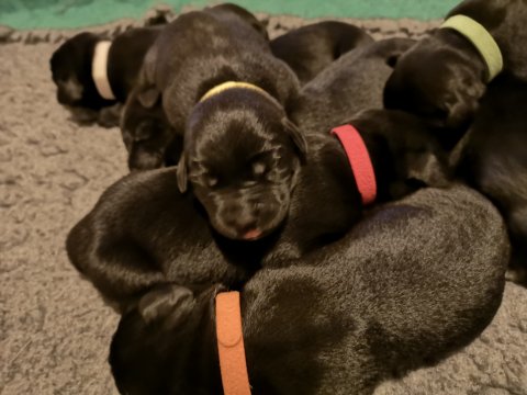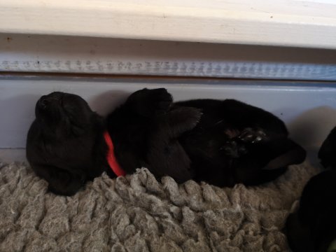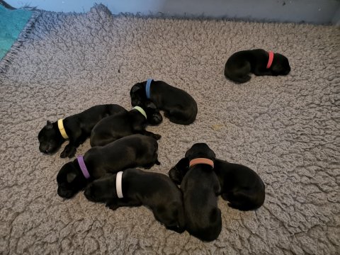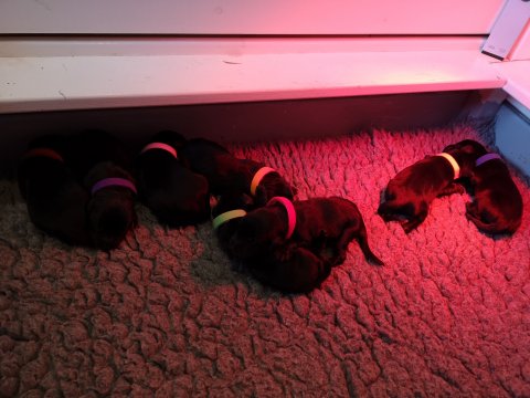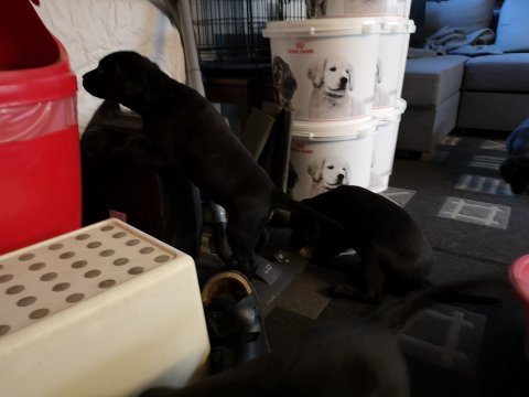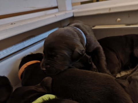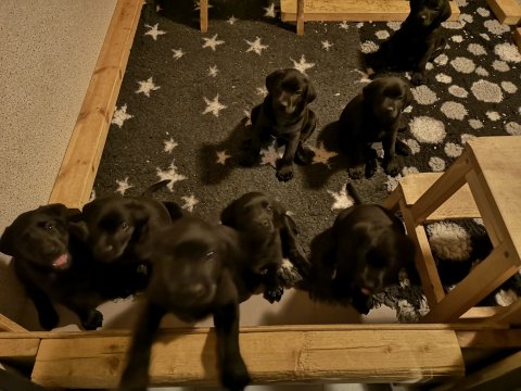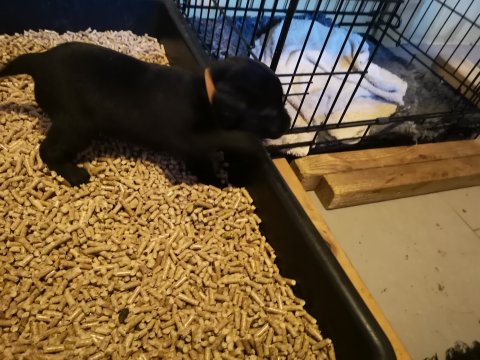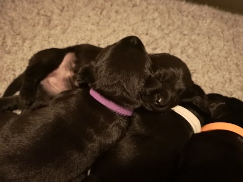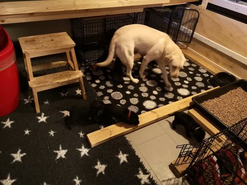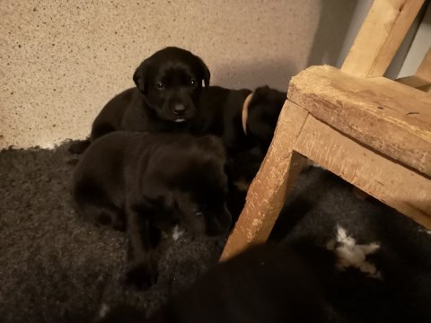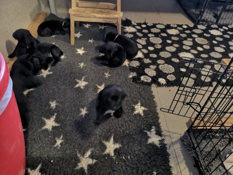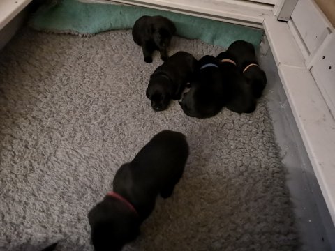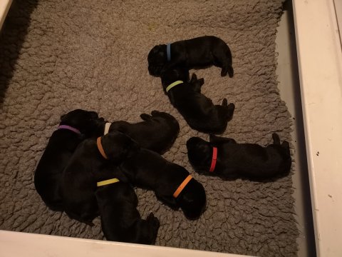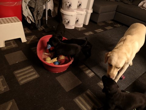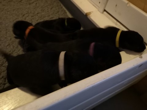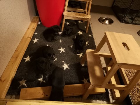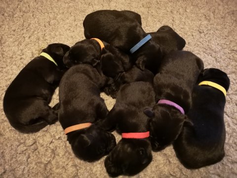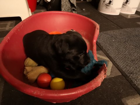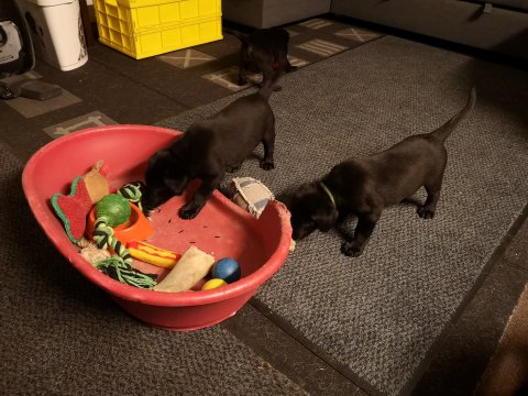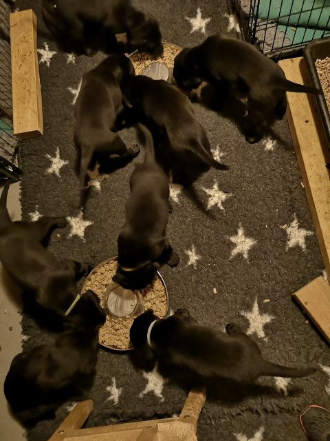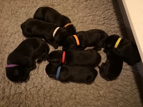 Det er den sidste uge i hvalpekassen og der har rigtig været gang i rummet der blevet tumlet, leget og hygget samt trænet i at blive renlig. Vi har set flere af hvalpene løbe på "hvalpetoilet" når de ude og lege i hvalpebørnehaven også kommer de tilbage for at lege videre med de andre. Når hvalpene ikke har været udenfor deres hvalperum har de hygget sig sammen og hver for sig. De er næsten altid klar ved låg til at blive snakket med når vi kommer ned til rummet. Flokken er klar til at flytte hjemmefra og komme ud til deres nye familier, så de få masse nye oplevelser med deres nye familier