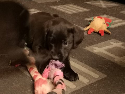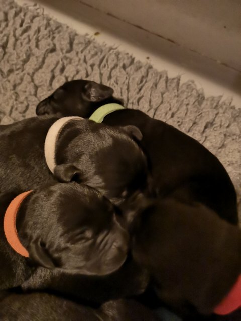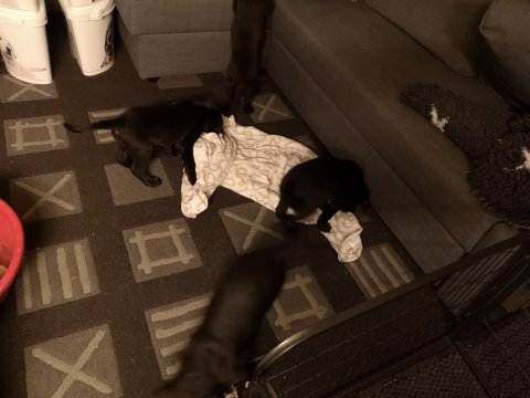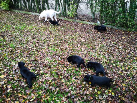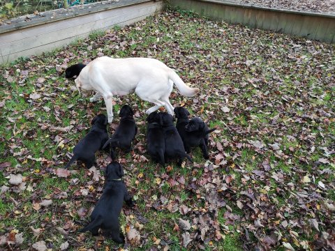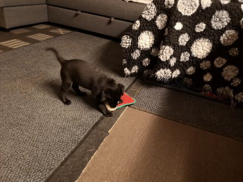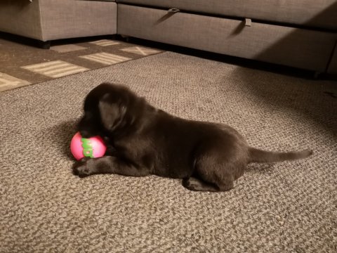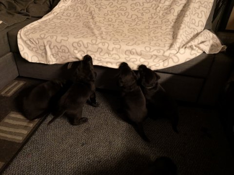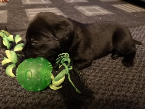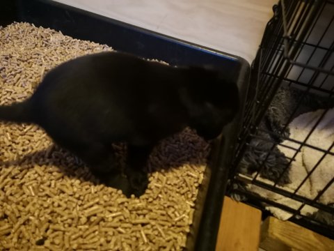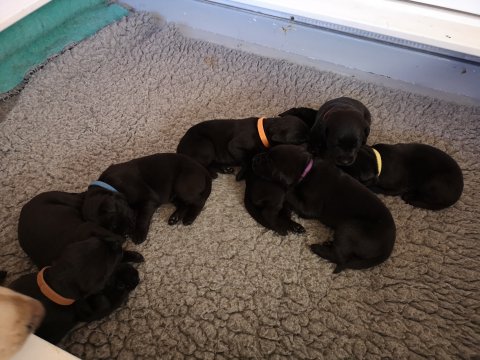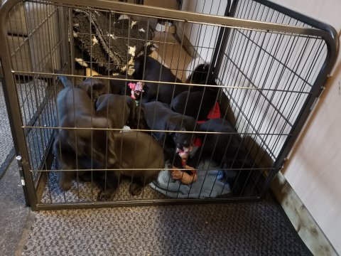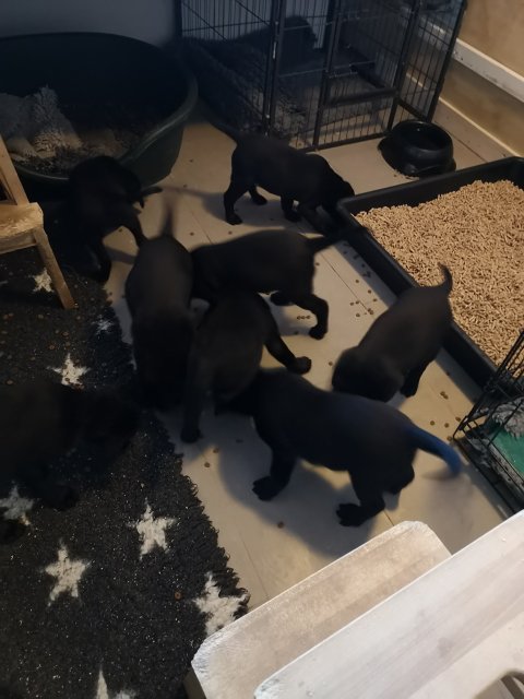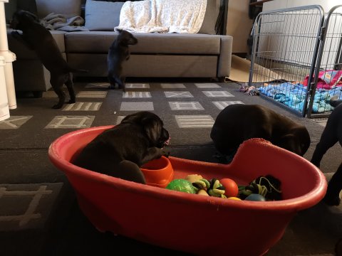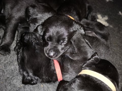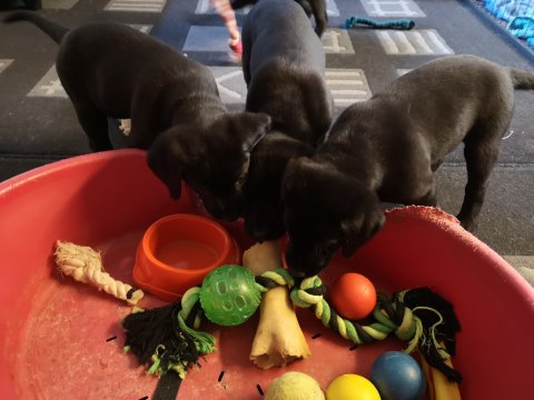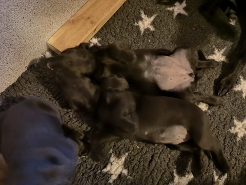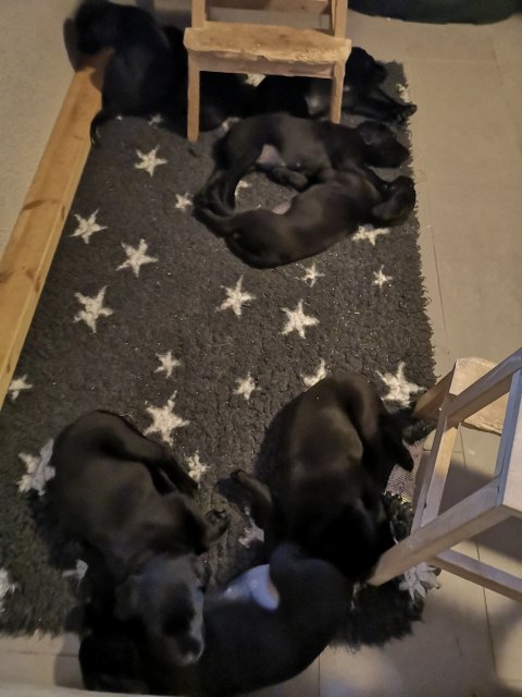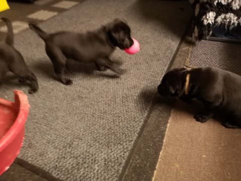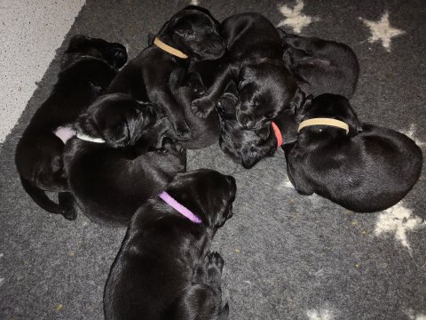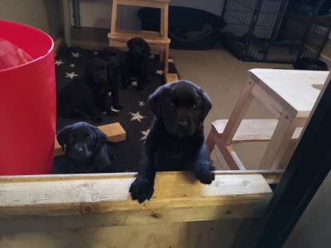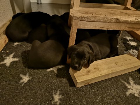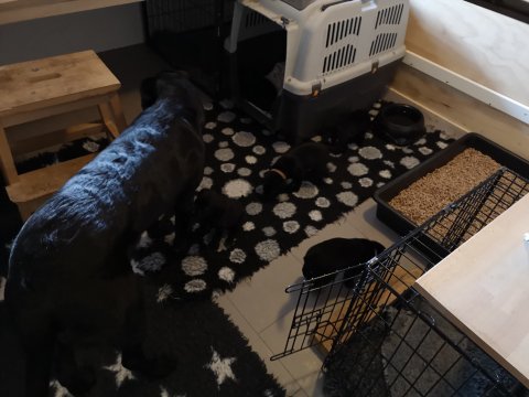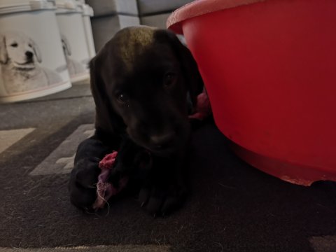 Det er den sidste uge i hvalpekassen og der har rigtig været gang i rummet der blevet tumlet, leget og hygget samt trænet i at blive renlig. Vi har set flere af hvalpene løbe på "hvalpetoilet" når de ude og lege i hvalpebørnehaven også kommer de tilbage for at lege videre med de andre. Når hvalpene ikke har været udenfor deres hvalperum har de hygget sig sammen og hver for sig. De er næsten altid klar ved låg til at blive snakket med når vi kommer ned til rummet. Flokken er klar til at flytte hjemmefra og komme ud til deres nye familier, så de få masse nye oplevelser med deres nye familier