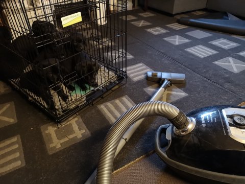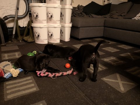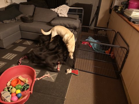 Der er kommet liv i hvalperummet, hvalpene har nu hel rummet.