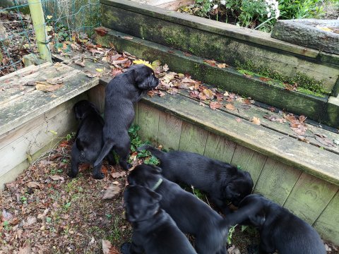 Hvalpene bliver mere og mere modige og går på nye opdagelser og alt bliver undersøgt. Når de er ude i haven bevæger de sig længere væk fra os og når vi fløjter/kalder kommer de rigtig glade hen til os igen. Når der er i "hvalpebørnehaven" finde de hurtig noget på nyt i forhold til dagen før. De løber frem og tilbage, prøver krafter med sig selv og hinanden. De er også blevet svære at fotografer, for der hele tiden gang i dem.