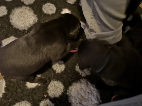 Hvalpene vil rigtig gerne snakke med os når vi kommer ned til dem og de komme ofte hen til lågen i hvalperummet og gør opmærksom på at de er i rummet, dog ikke når vi siger godnat, så er der ro i rummet indtil næste morgen