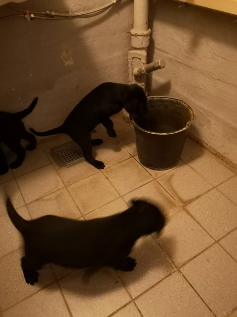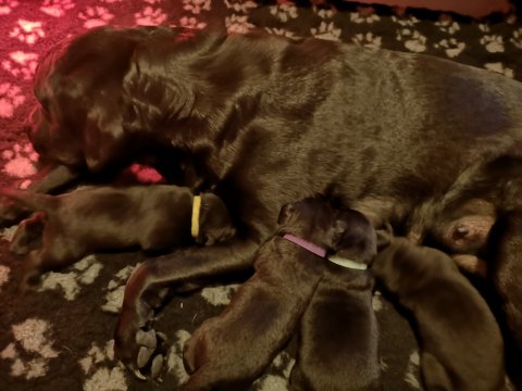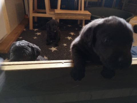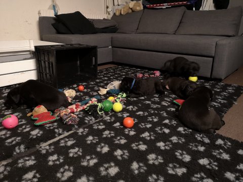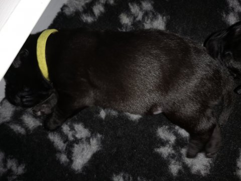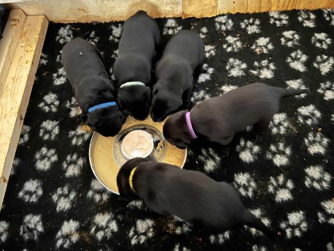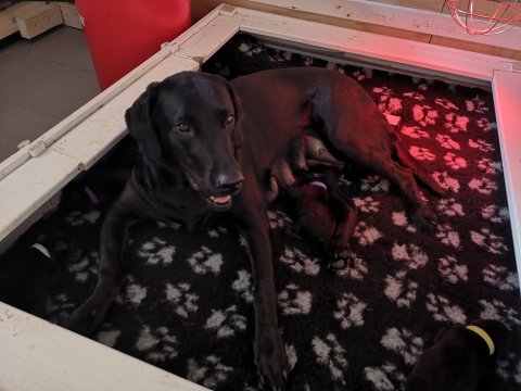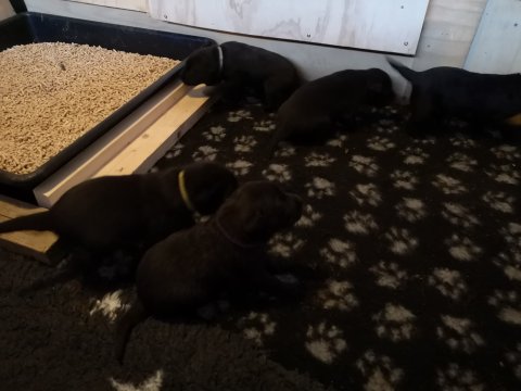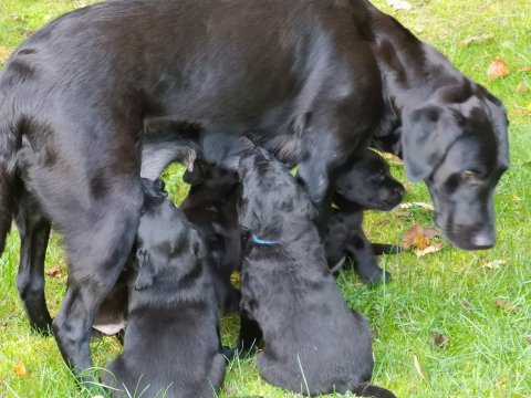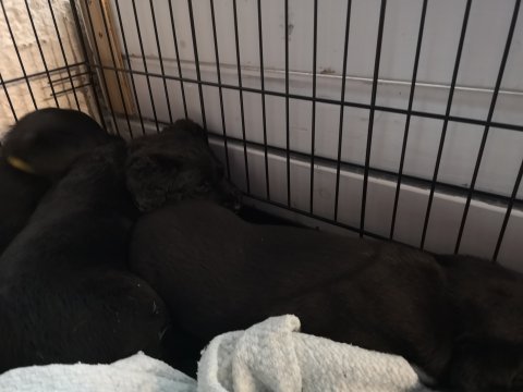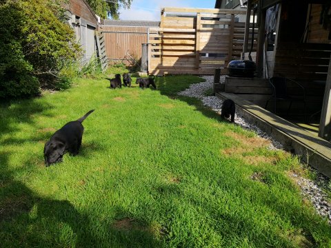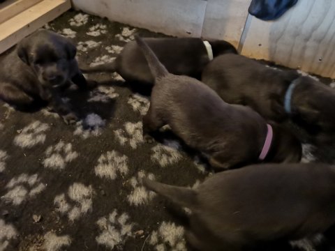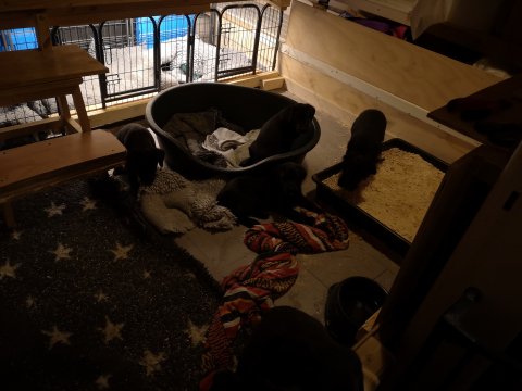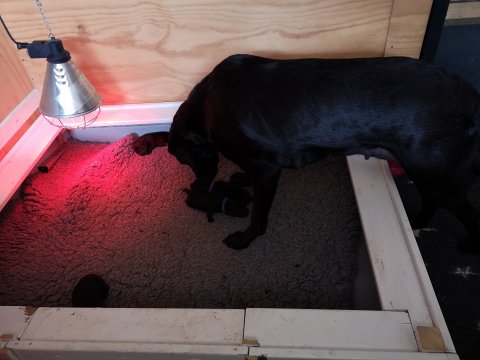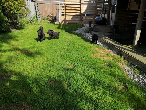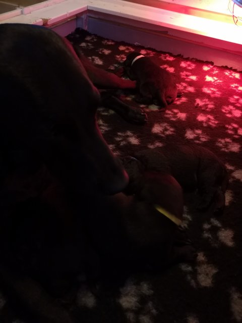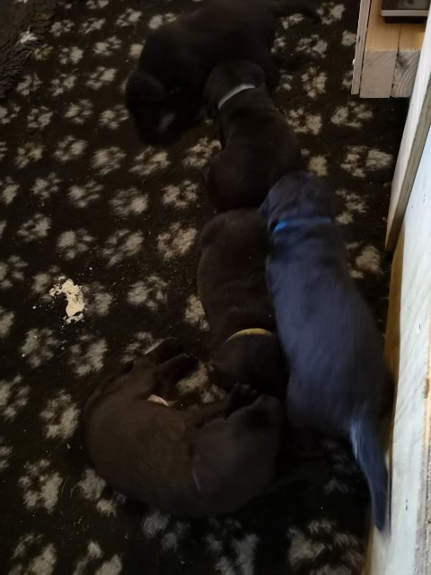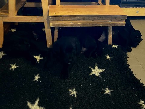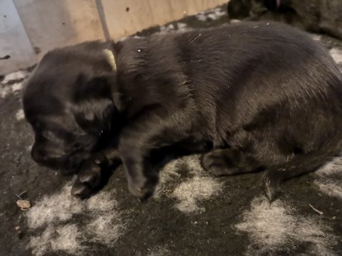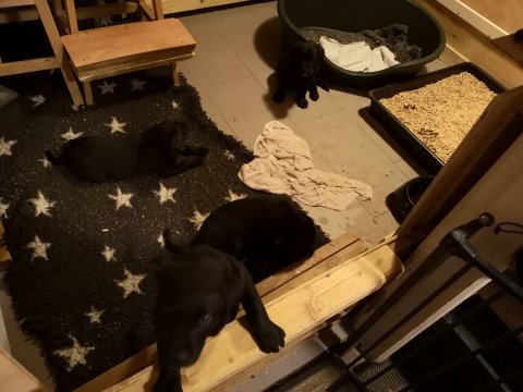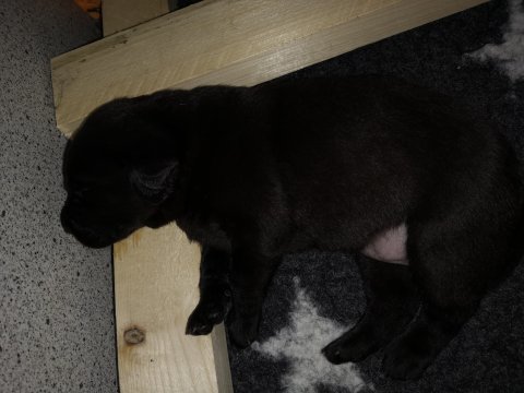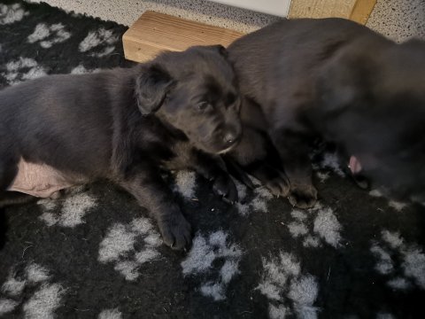 Amy har født 5 store sorte hvalpe, 1 tæve og 4 hanner.