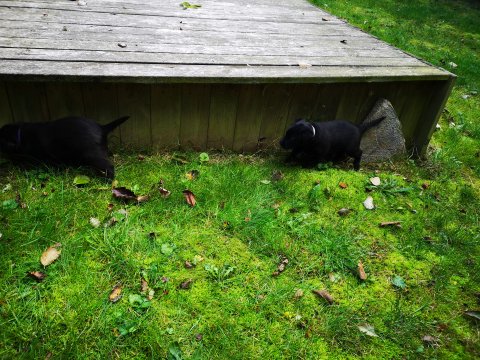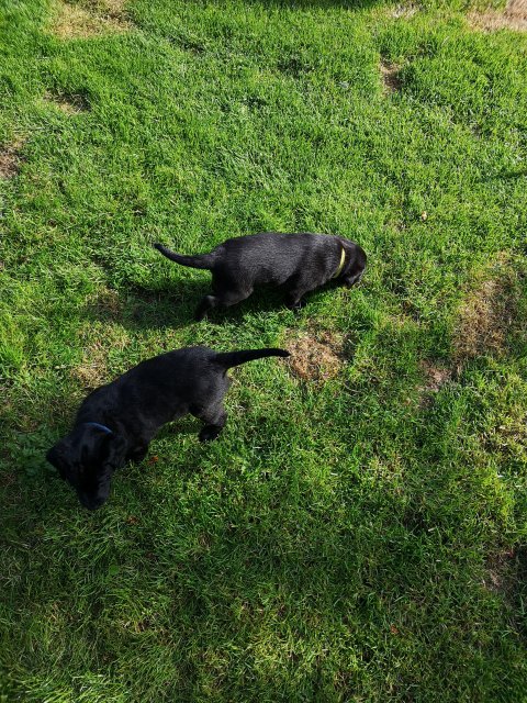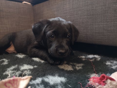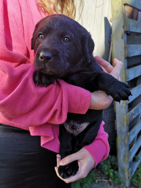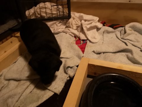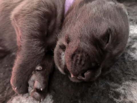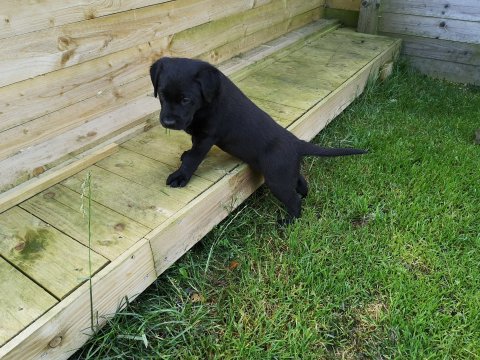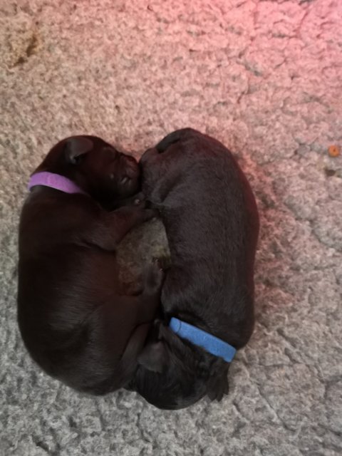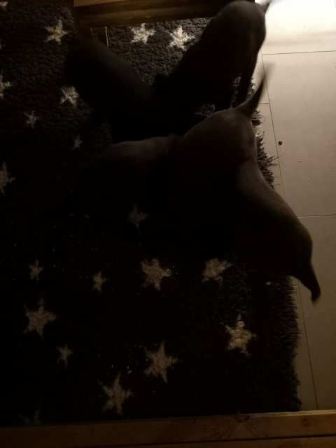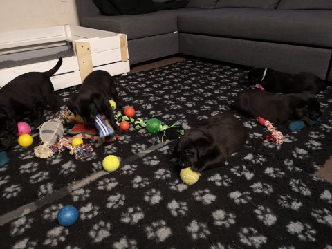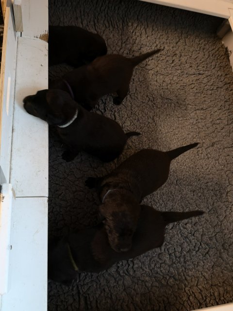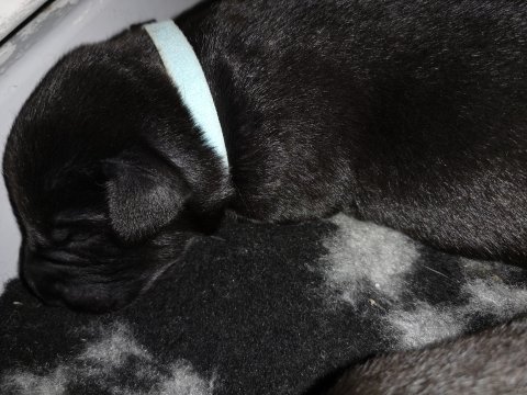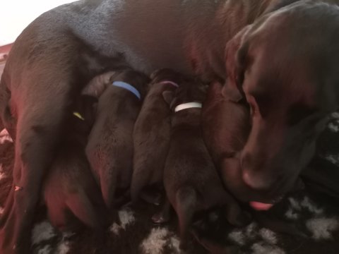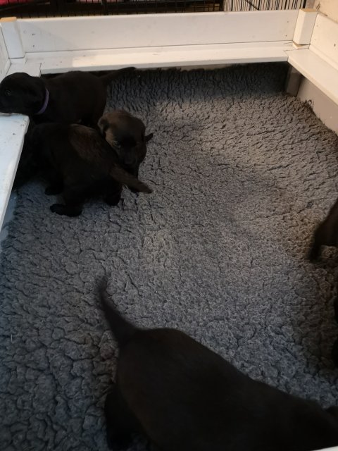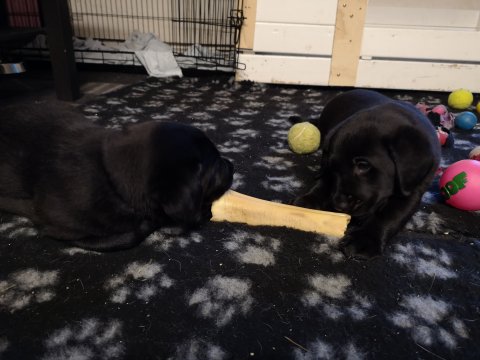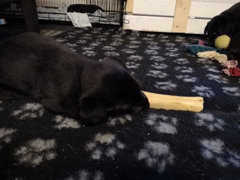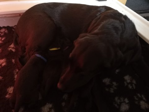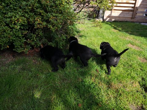 Amy har født 5 store sorte hvalpe, 1 tæve og 4 hanner.