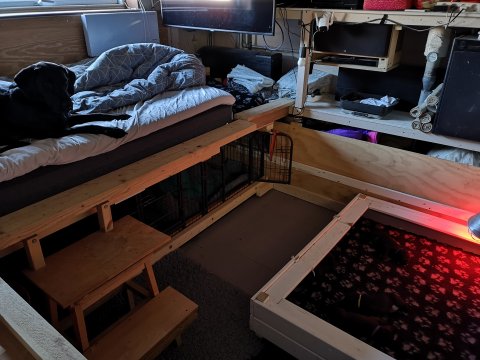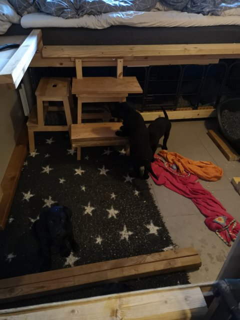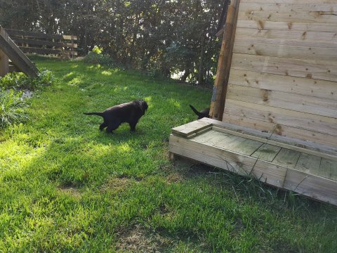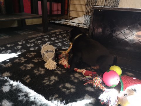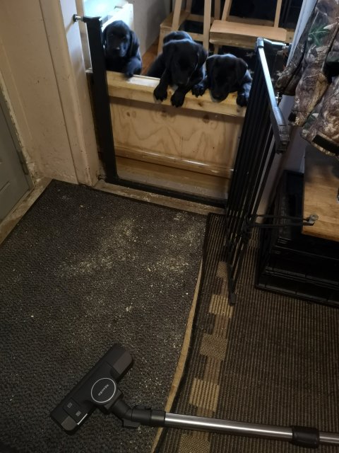 Hvalpene har fået lidt mere plads, de kan nu gå og se lidt.