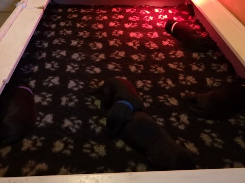 I denne uge er der sket meget med hvalpene, de er flyttet ud af hvalpekasse og fået hele rummet at bevæge sig rundt i.De har alle fået øjne og bevæger sig rundt i rummet, næsten som rigtige hunde. De har også opdaget de andre, så de er begyndt at "slåse" med hinanden og med deres mor. Her sidste på ugen er de også begyndt få opblødt hvalpemad, nået de meget hurtig fandt ud af smager godt, men de er stadig tilhænger af Amy´s mælkebar