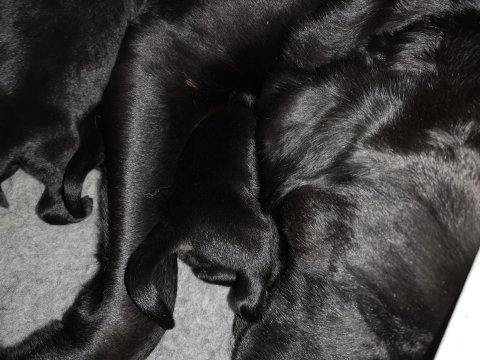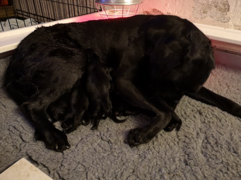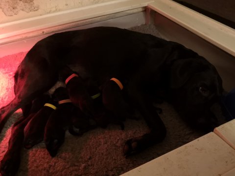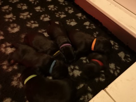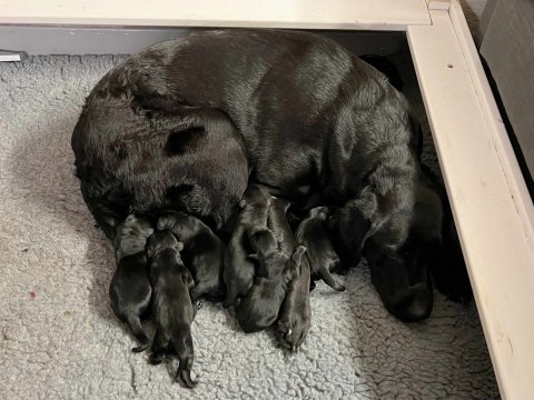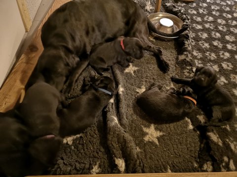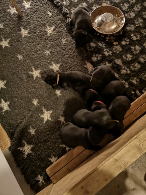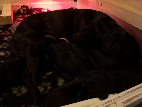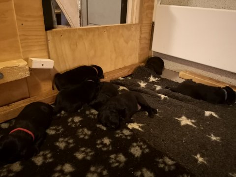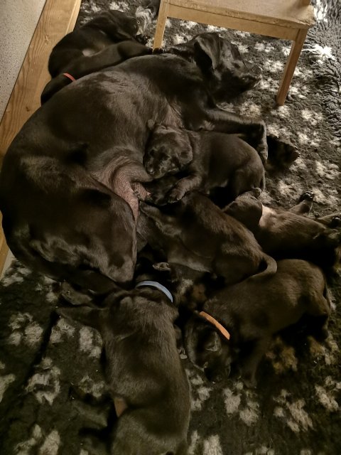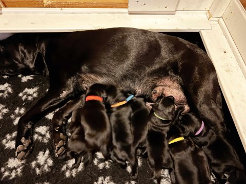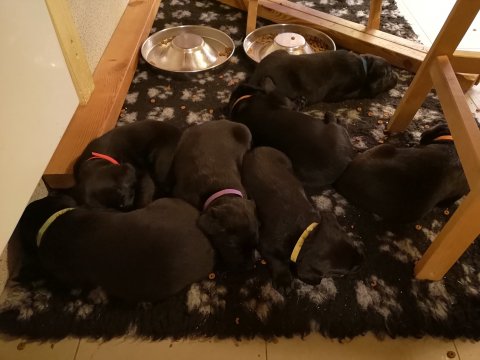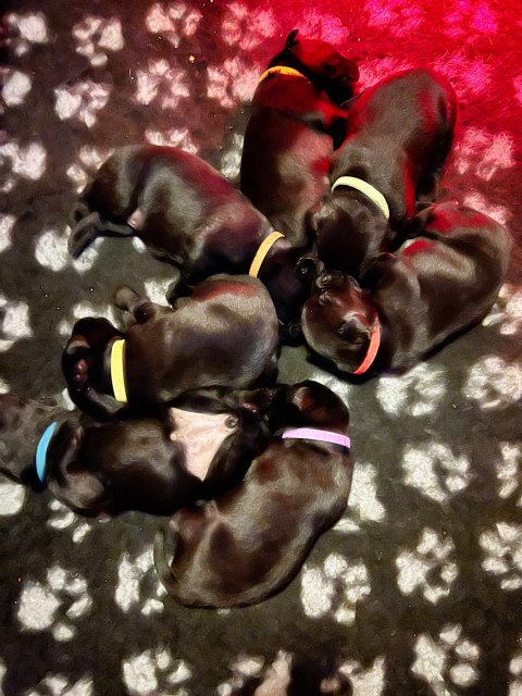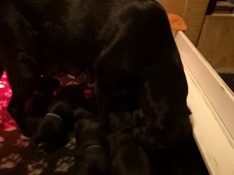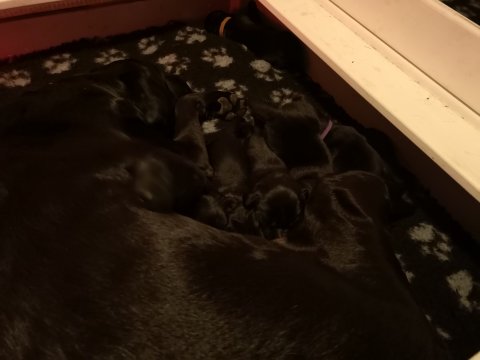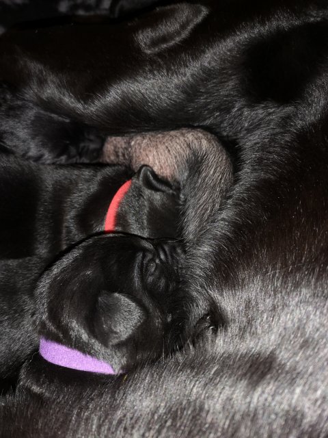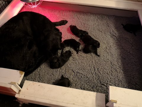 Team Meinert`s Violetta Francesca og Studebaker Bonneville har fået 7 store sorte hvalpe, 5 tæver og 2 hanner.