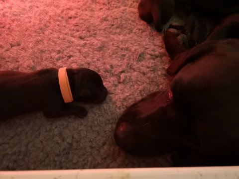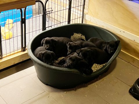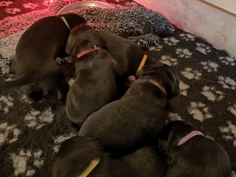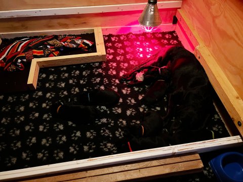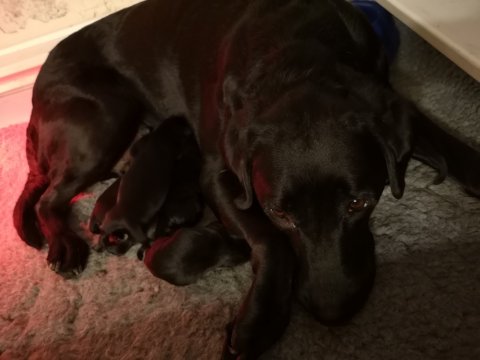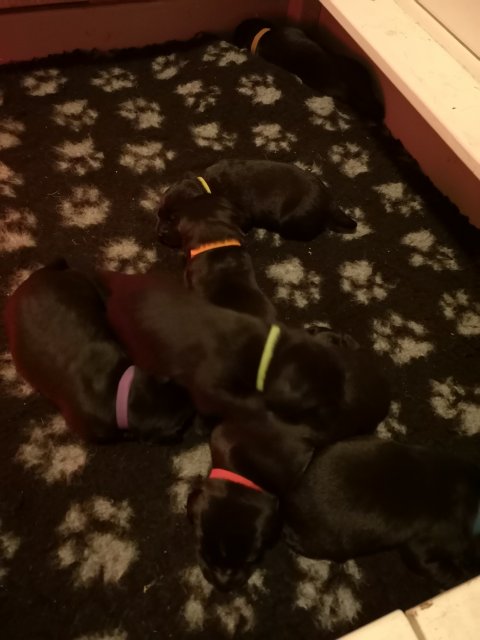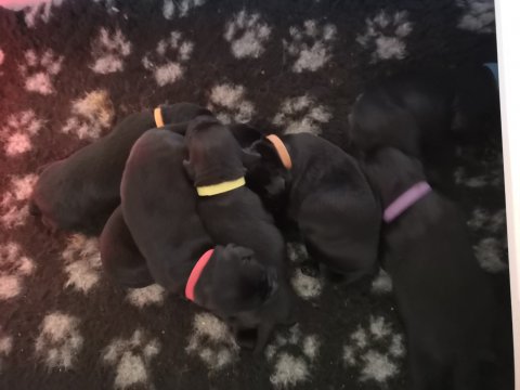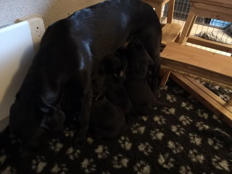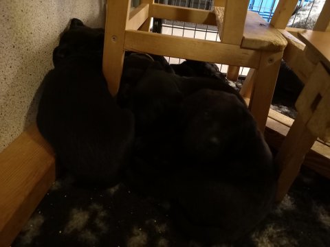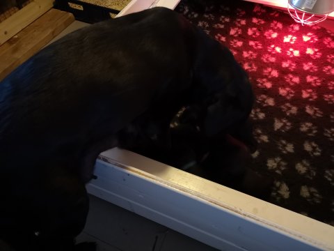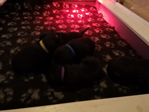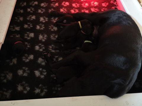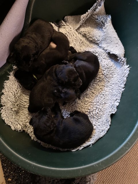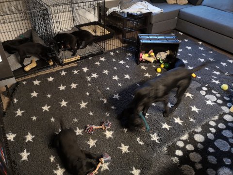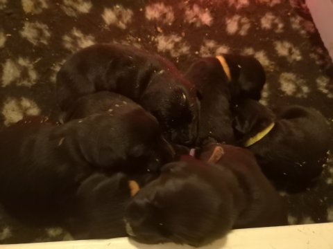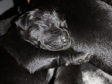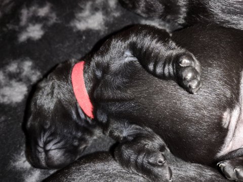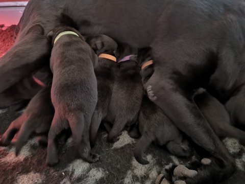 Team Meinert`s Violetta Francesca og Studebaker Bonneville har fået 7 store sorte hvalpe, 5 tæver og 2 hanner.