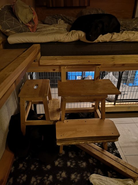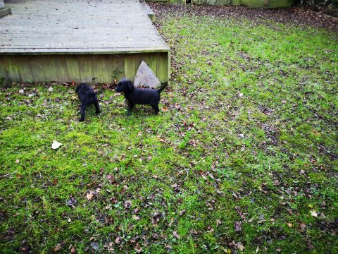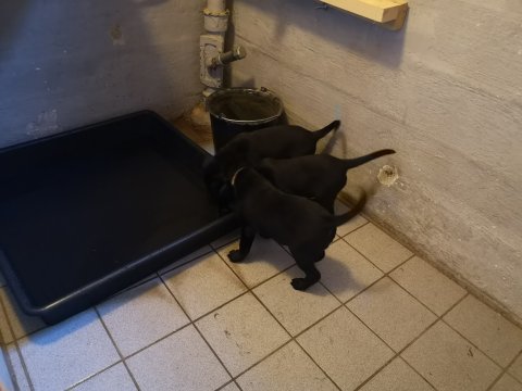 De er begyndt at bruge "hunde WCét" til det store.De er også klar over hvornår de skal have hundemad og så sidder de klar ved lågen. De drikker vand og så er de stadig glad for Nata´s mælkebar.