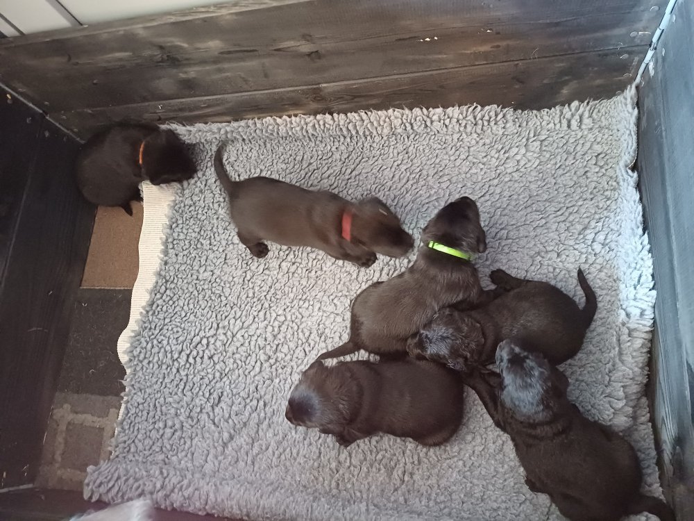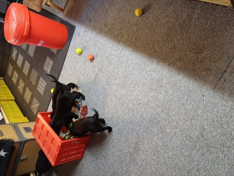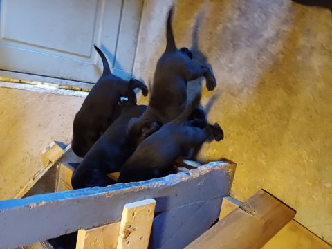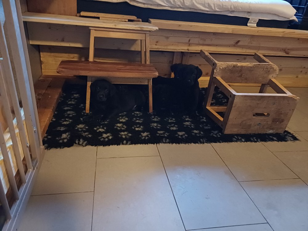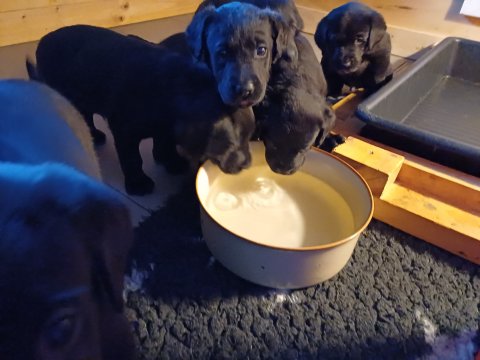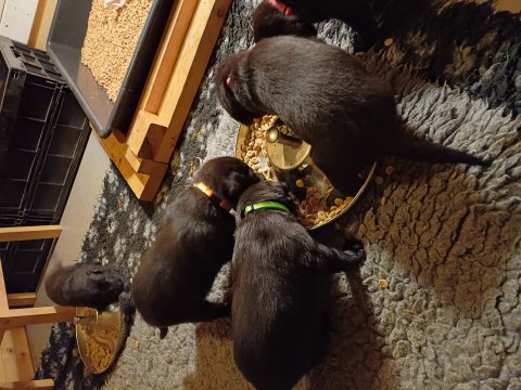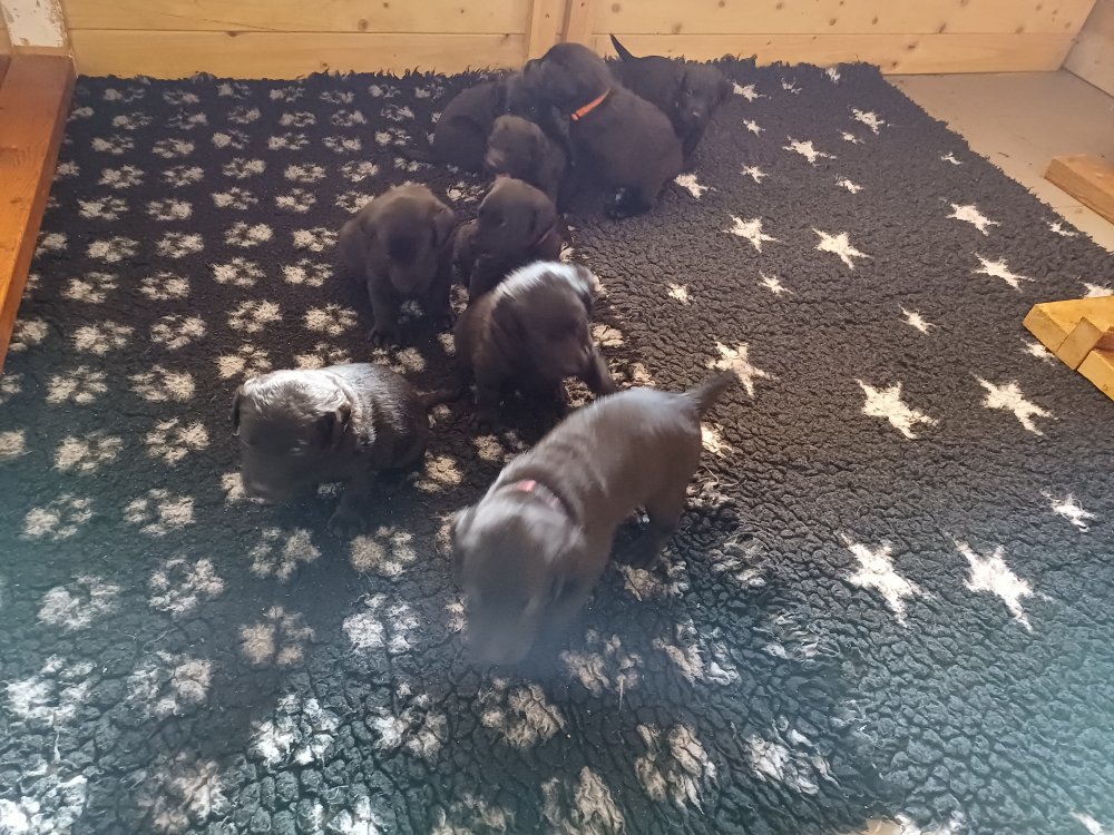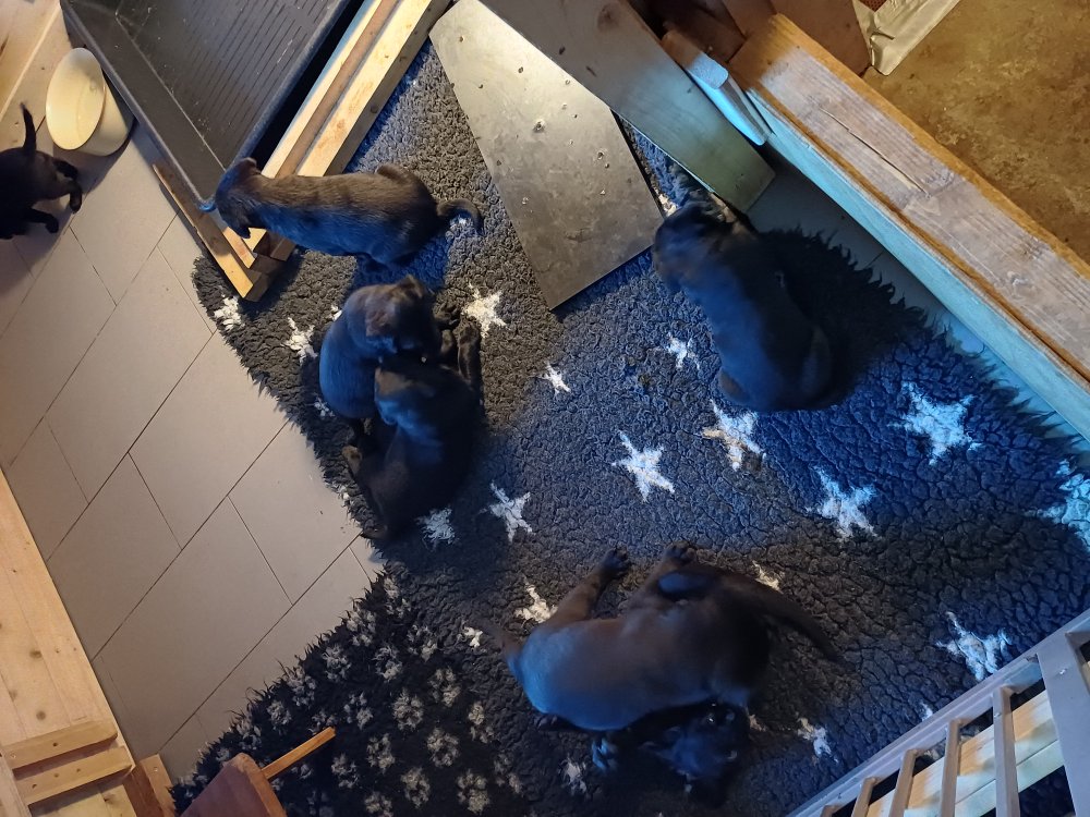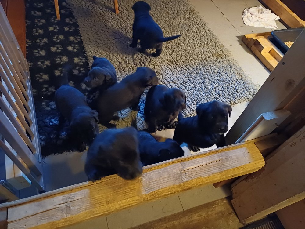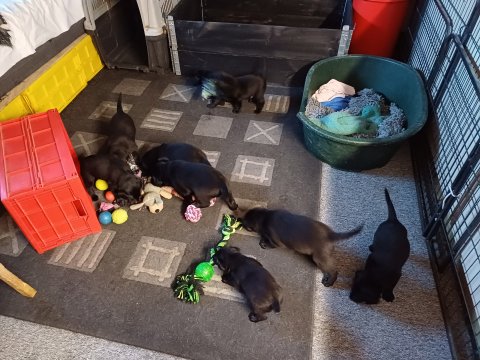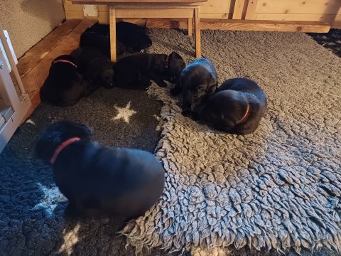 Der sker mere og mere i hvalpekassen hver dag, hvalpene bliver mere opmærksom på hvad der sker omkring dem. Når vi kommer ned til døren i rummet, er de begyndt at komme hen til lågen for at snakke med os. De har været lidt i "hvalpebørnehaven" og der går de op opdagelser, der bliver også prøvet kræfter med hinanden, så nogle gange kan man høre nogle hyl, men general er de rigtig søde. I hvalperummet er de så småt begyndt at bruge "hunde WCét" til det store. De får rigtig hundefod og de er helt klar over hvornår de skal have mad, de kommer når der bliver fløjtet, så er de klar: