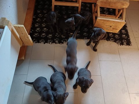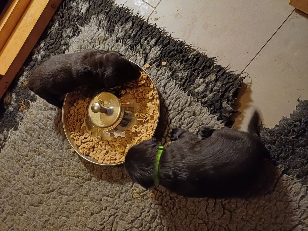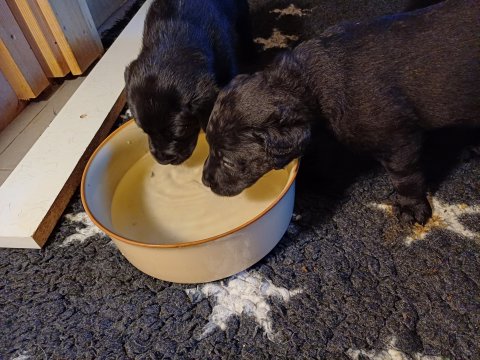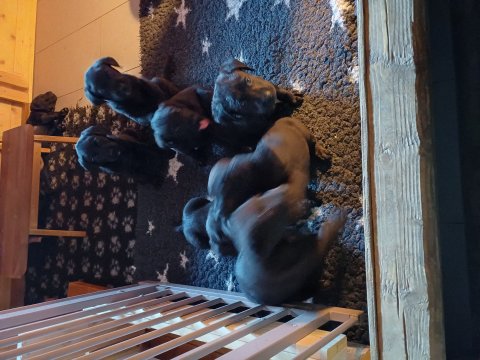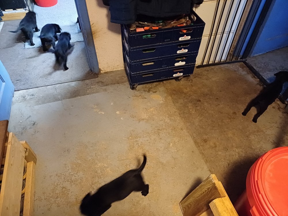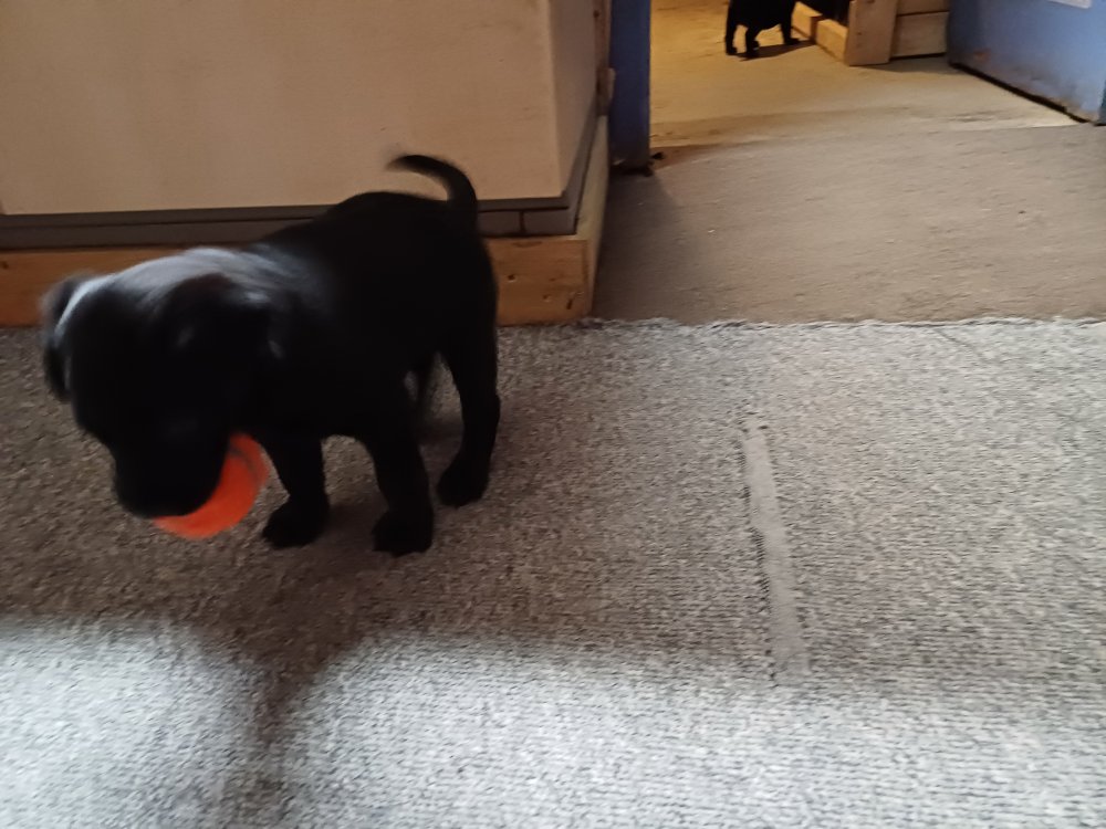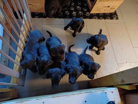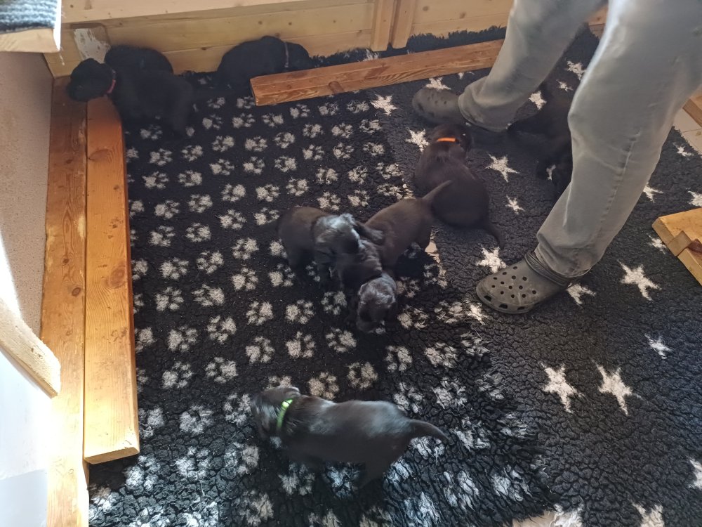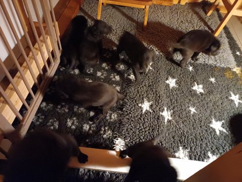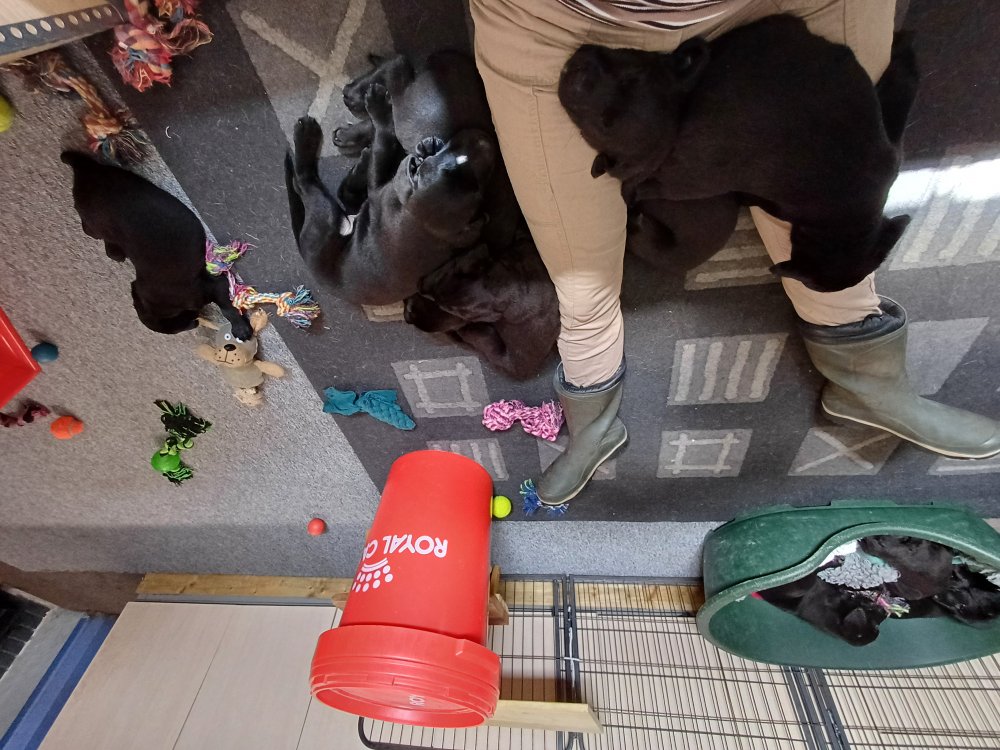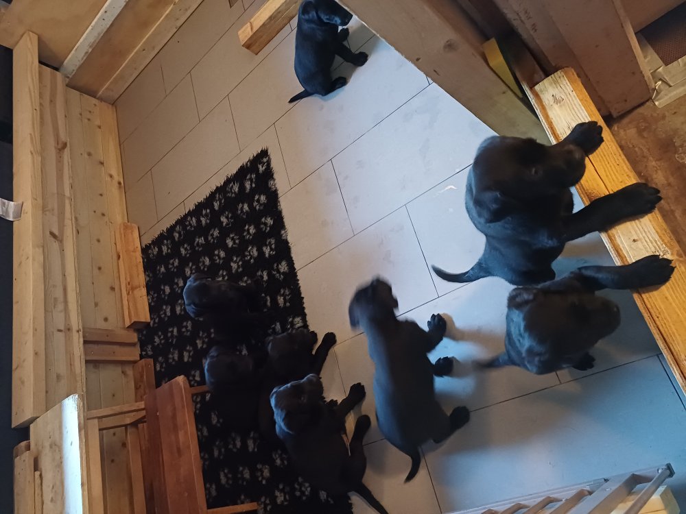 Der sker mere og mere i hvalpekassen hver dag, hvalpene bliver mere opmærksom på hvad der sker omkring dem. Når vi kommer ned til døren i rummet, er de begyndt at komme hen til lågen for at snakke med os. De har været lidt i "hvalpebørnehaven" og der går de op opdagelser, der bliver også prøvet kræfter med hinanden, så nogle gange kan man høre nogle hyl, men general er de rigtig søde. I hvalperummet er de så småt begyndt at bruge "hunde WCét" til det store. De får rigtig hundefod og de er helt klar over hvornår de skal have mad, de kommer når der bliver fløjtet, så er de klar: