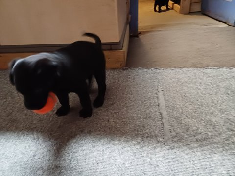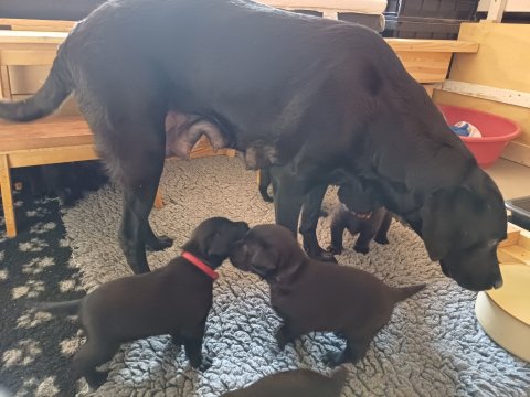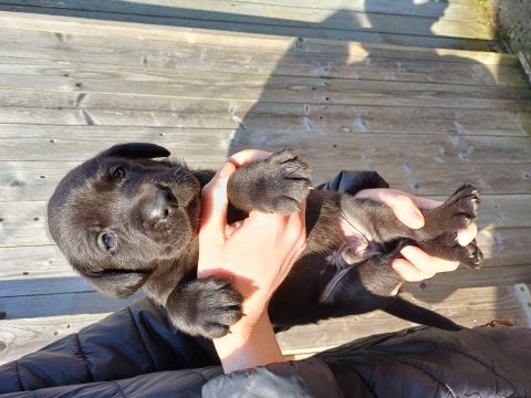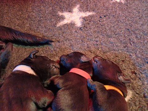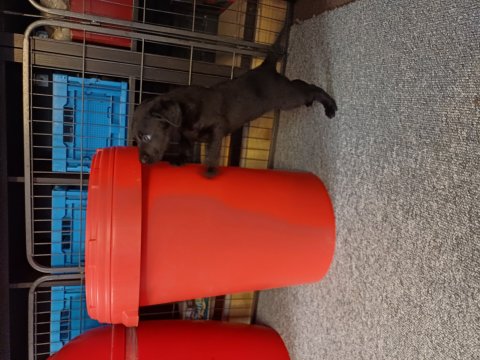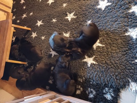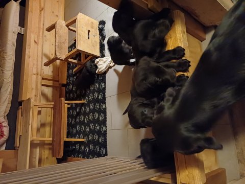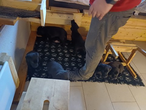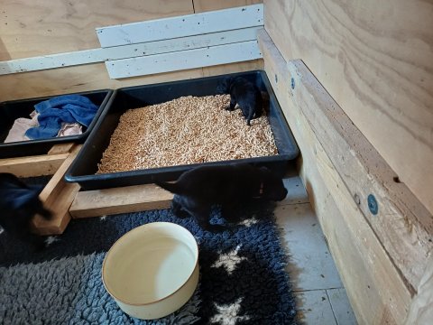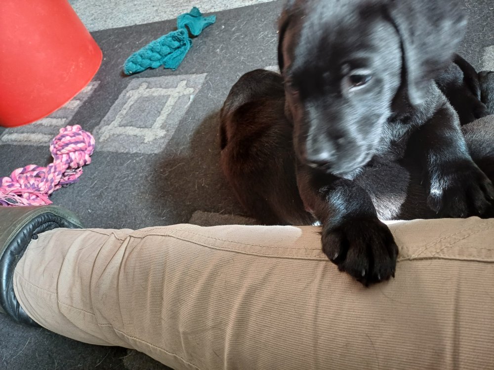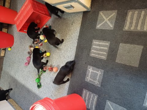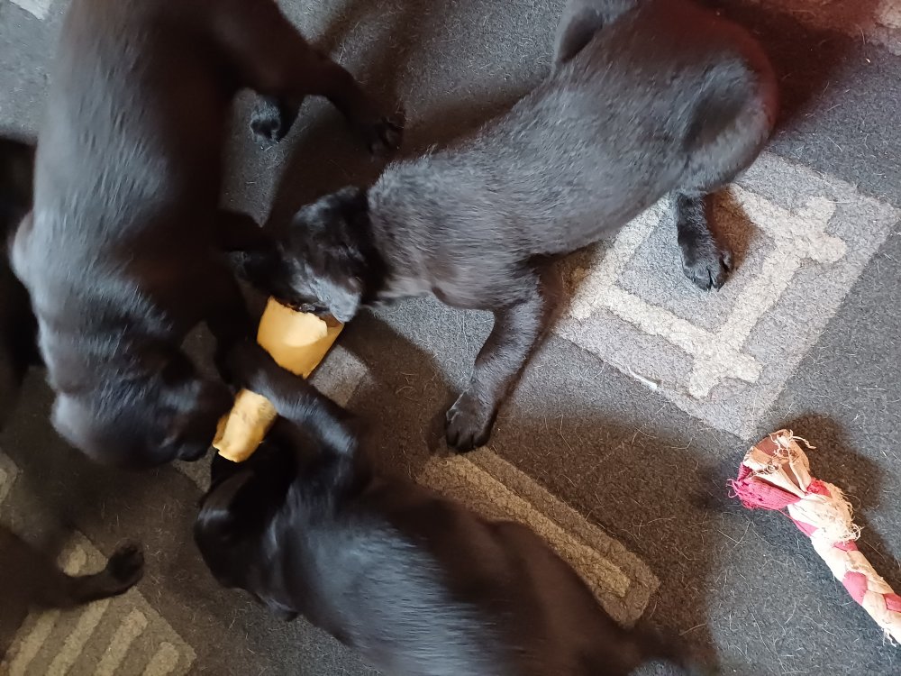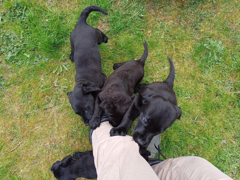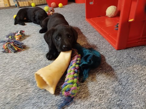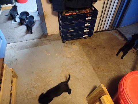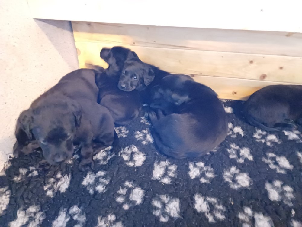 Der sker mere og mere i hvalpekassen hver dag, hvalpene bliver mere opmærksom på hvad der sker omkring dem. Når vi kommer ned til døren i rummet, er de begyndt at komme hen til lågen for at snakke med os. De har været lidt i "hvalpebørnehaven" og der går de op opdagelser, der bliver også prøvet kræfter med hinanden, så nogle gange kan man høre nogle hyl, men general er de rigtig søde. I hvalperummet er de så småt begyndt at bruge "hunde WCét" til det store. De får rigtig hundefod og de er helt klar over hvornår de skal have mad, de kommer når der bliver fløjtet, så er de klar: