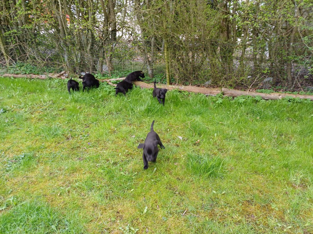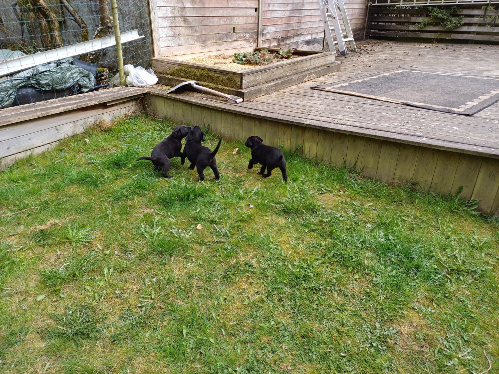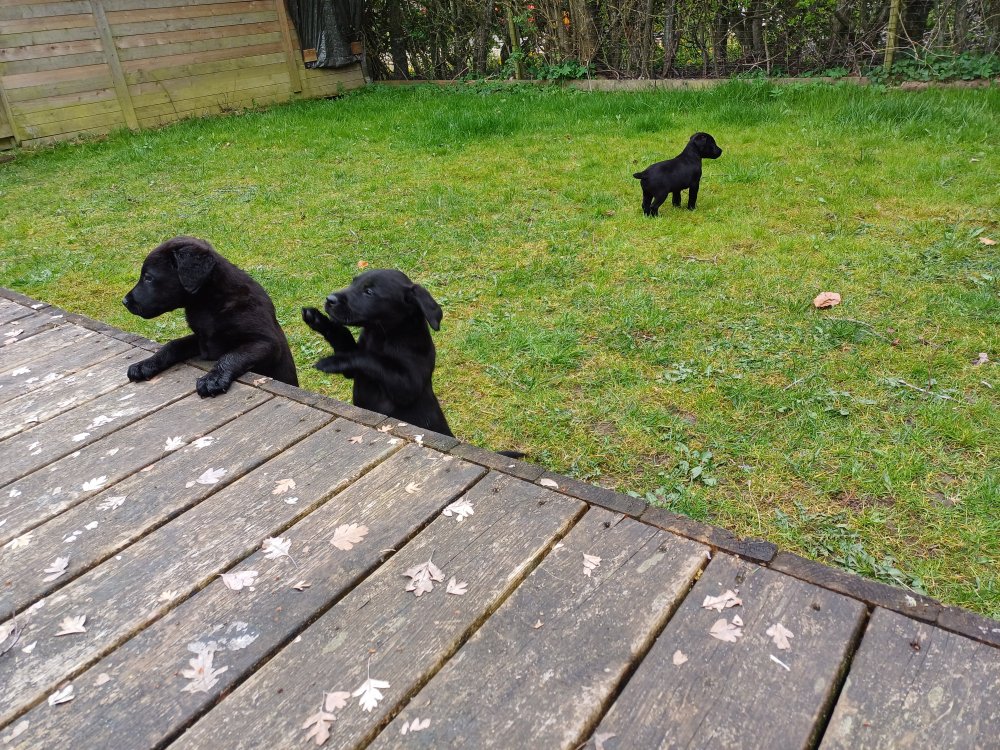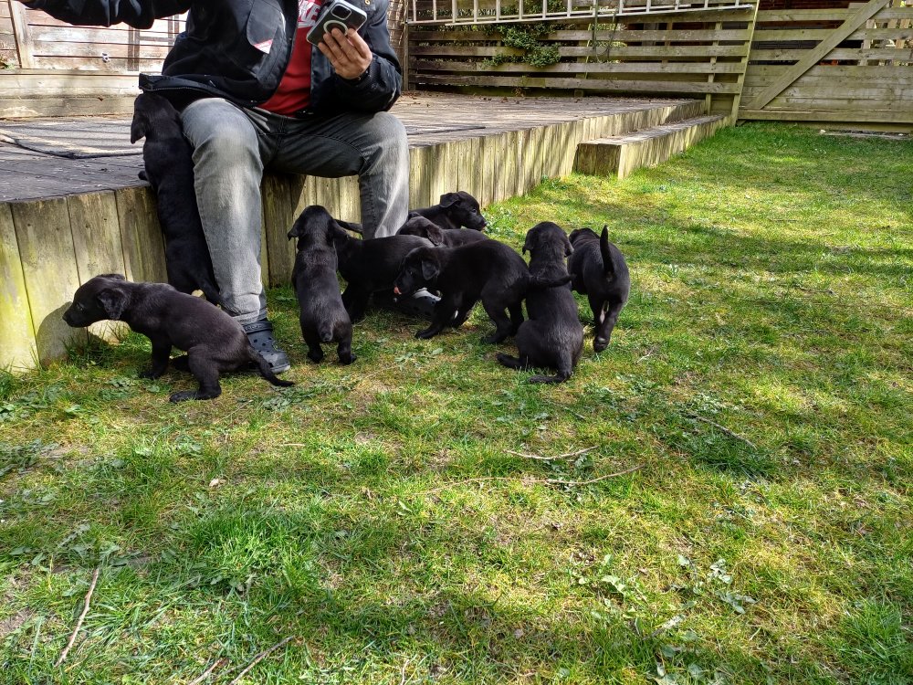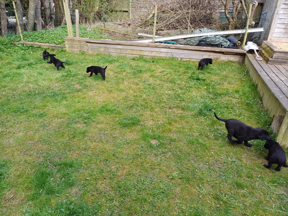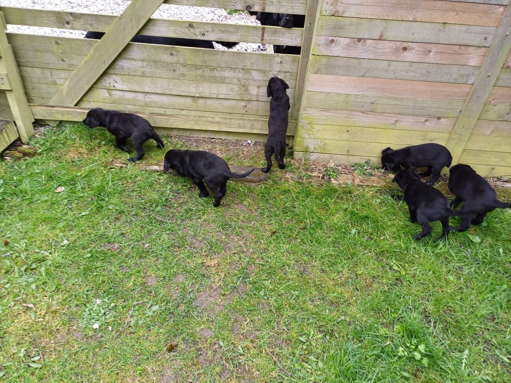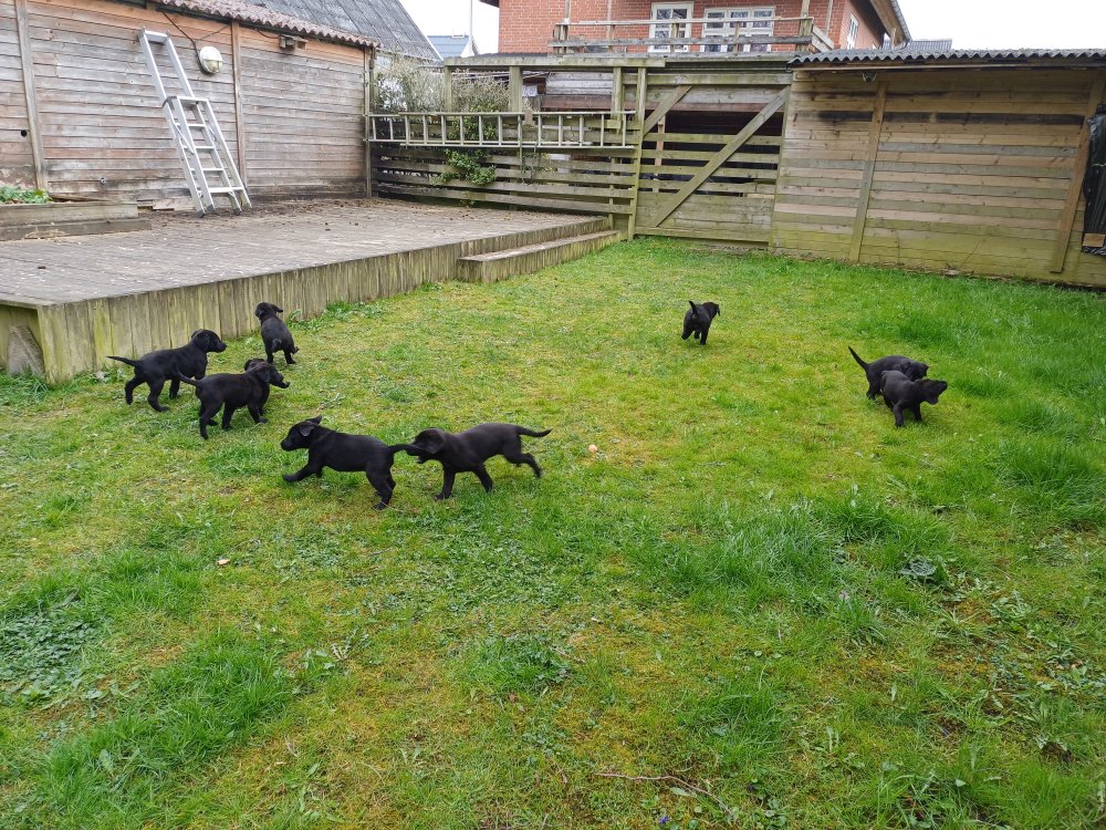 Hvalpene har næsten hverdag været udenfor deres hvalperum enten i "hvalpe børnehaven" eller udenfor når vejret har været til det. De bliver mere og mere modige, alt bliver undersøgt og de finder hurtig på noget nyt i forhold til dagen før. De løber frem og tilbage, prøver kræfter med sig selv og hinanden og bevæger sig længere væk fra os når vi fløjter/kalder kommer de rigtig glade hen til os igen.