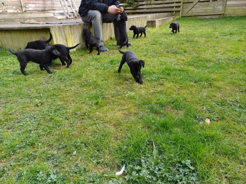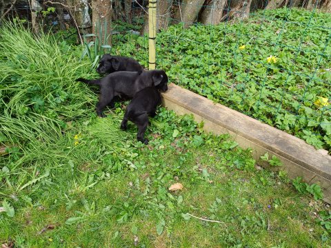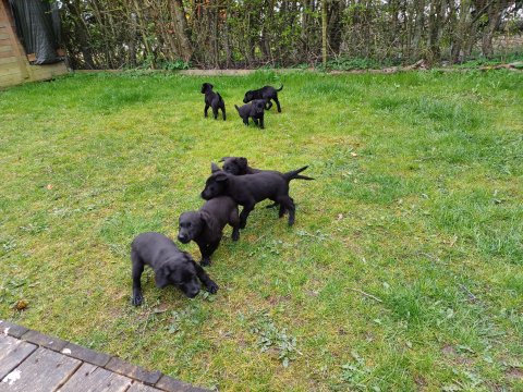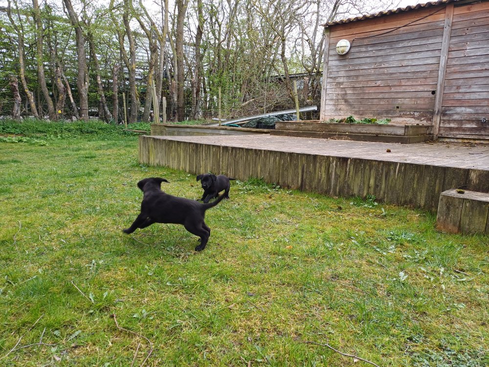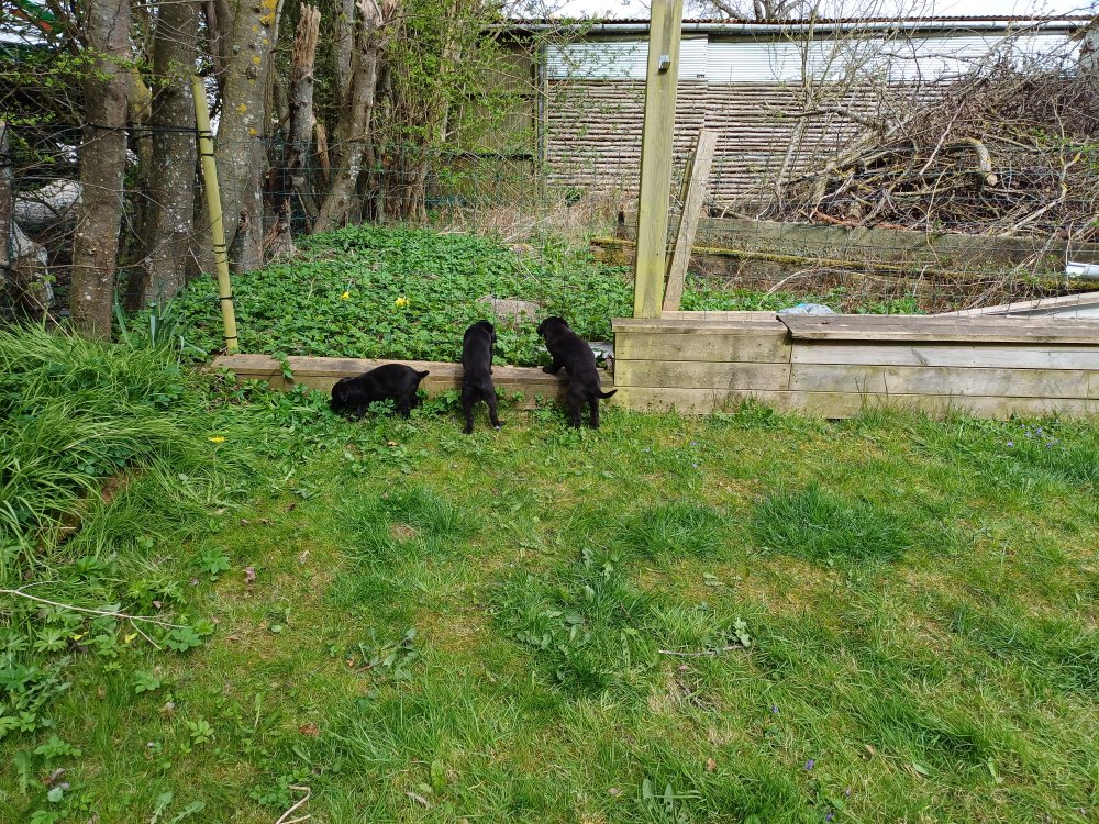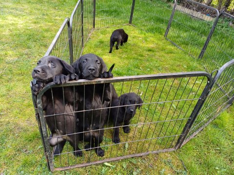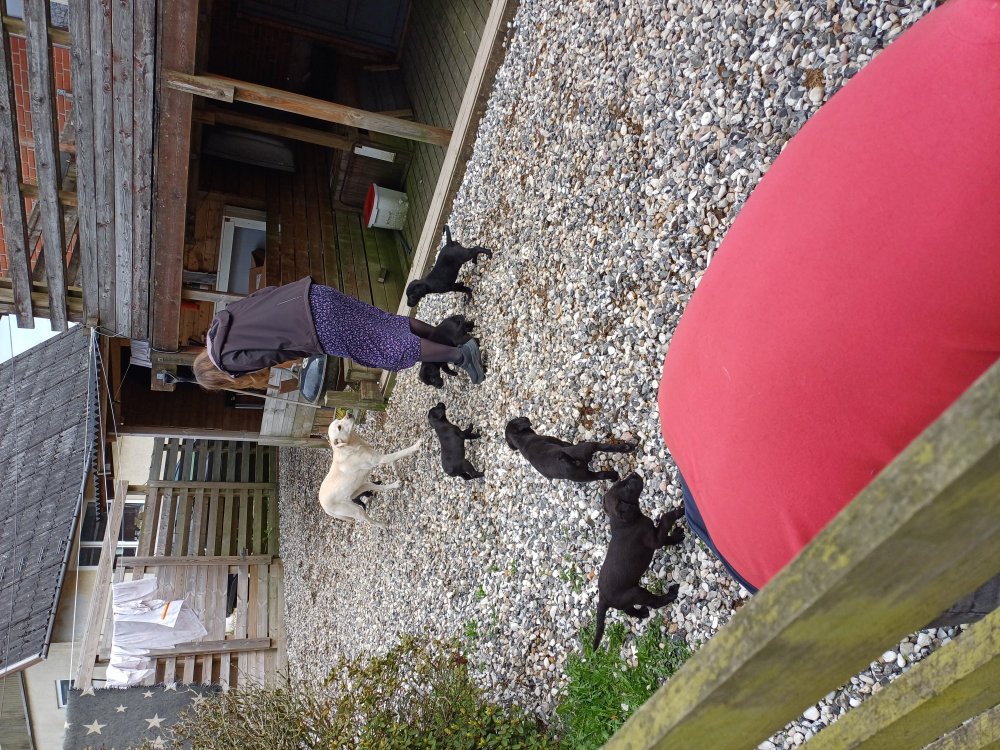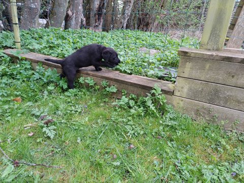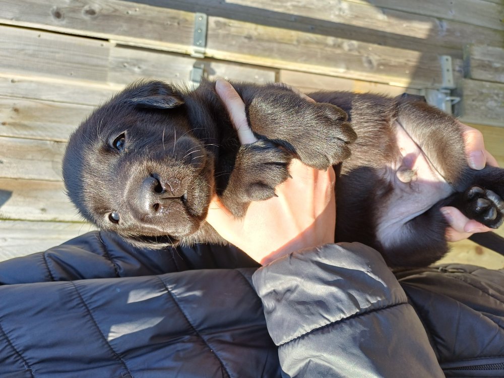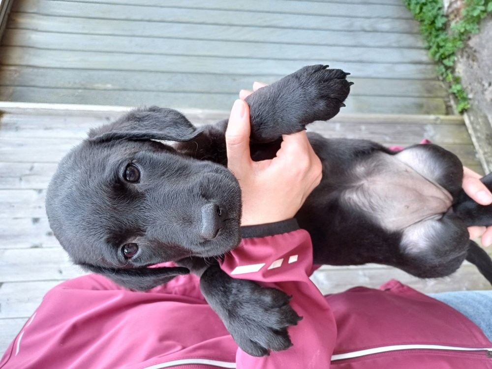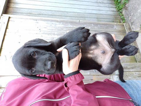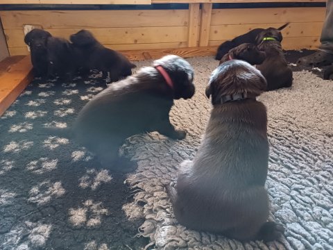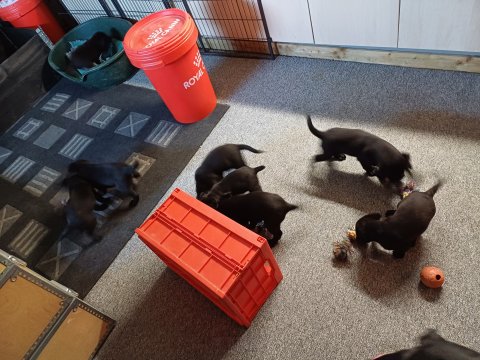 Hvalpene har næsten hverdag været udenfor deres hvalperum enten i "hvalpe børnehaven" eller udenfor når vejret har været til det. De bliver mere og mere modige, alt bliver undersøgt og de finder hurtig på noget nyt i forhold til dagen før. De løber frem og tilbage, prøver kræfter med sig selv og hinanden og bevæger sig længere væk fra os når vi fløjter/kalder kommer de rigtig glade hen til os igen.