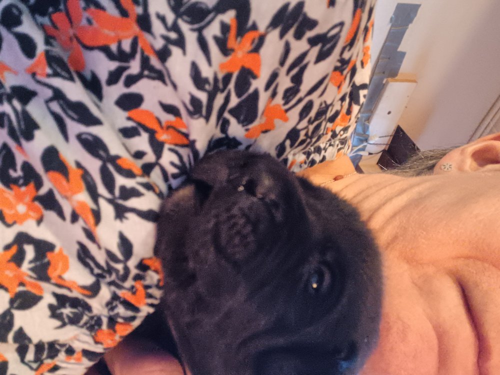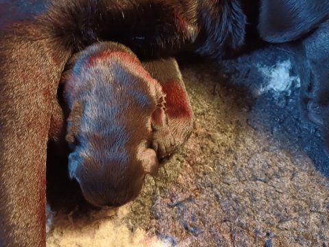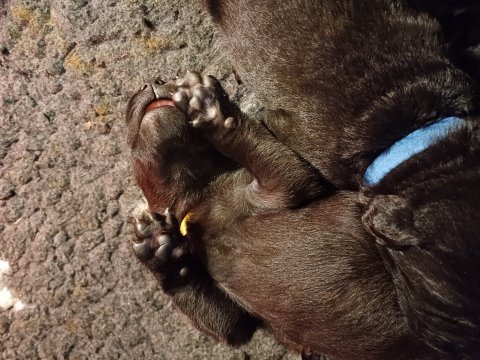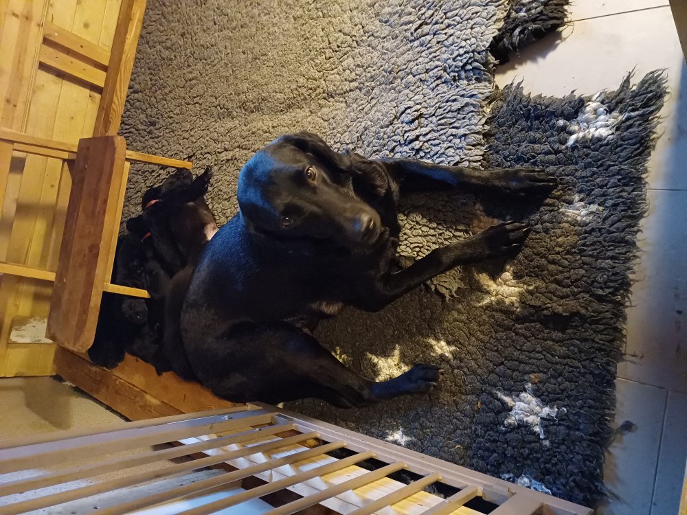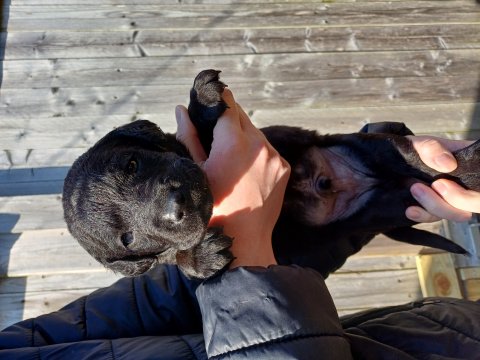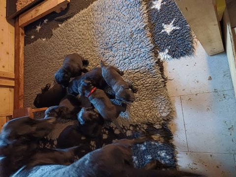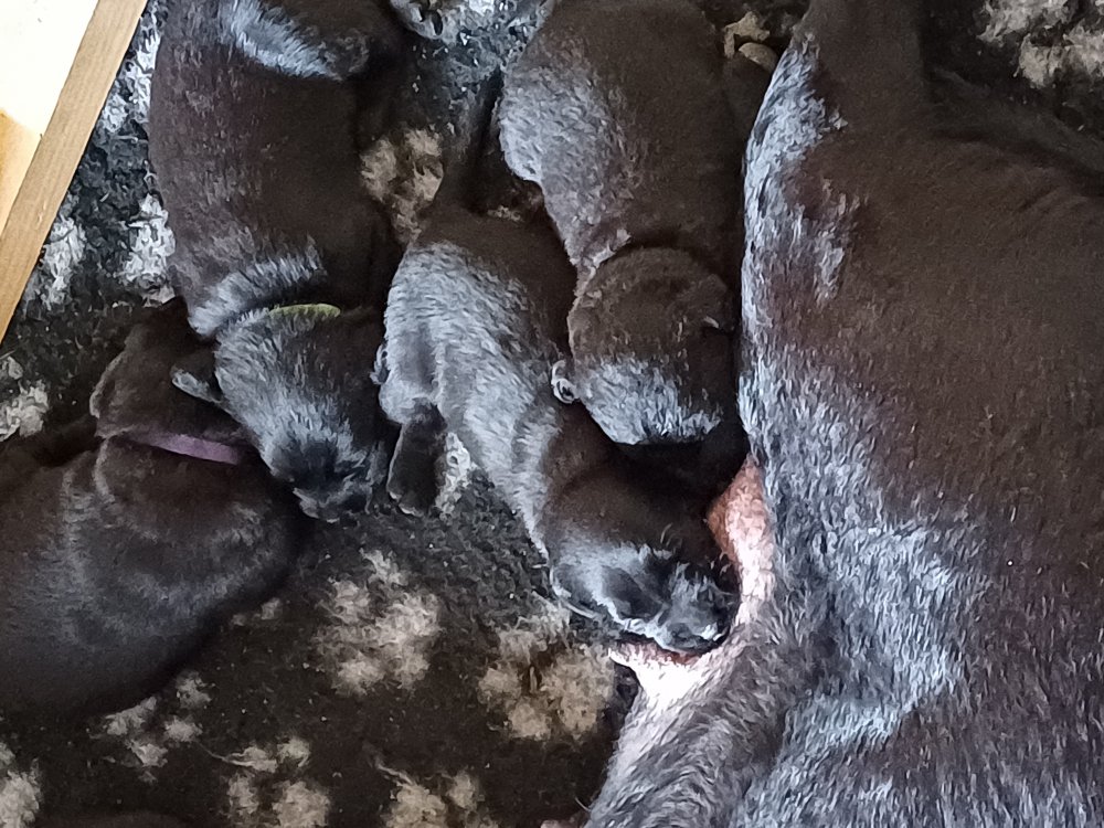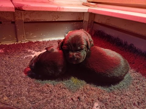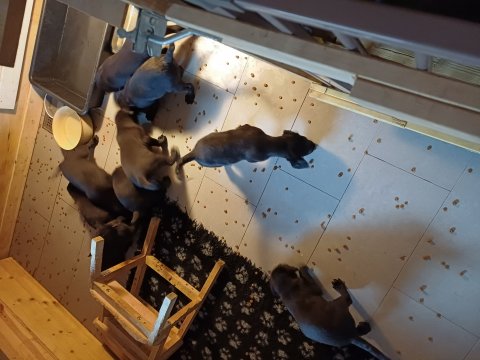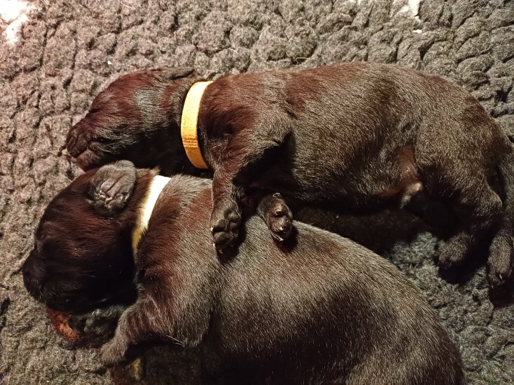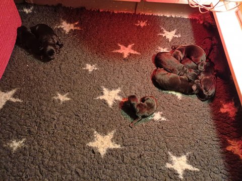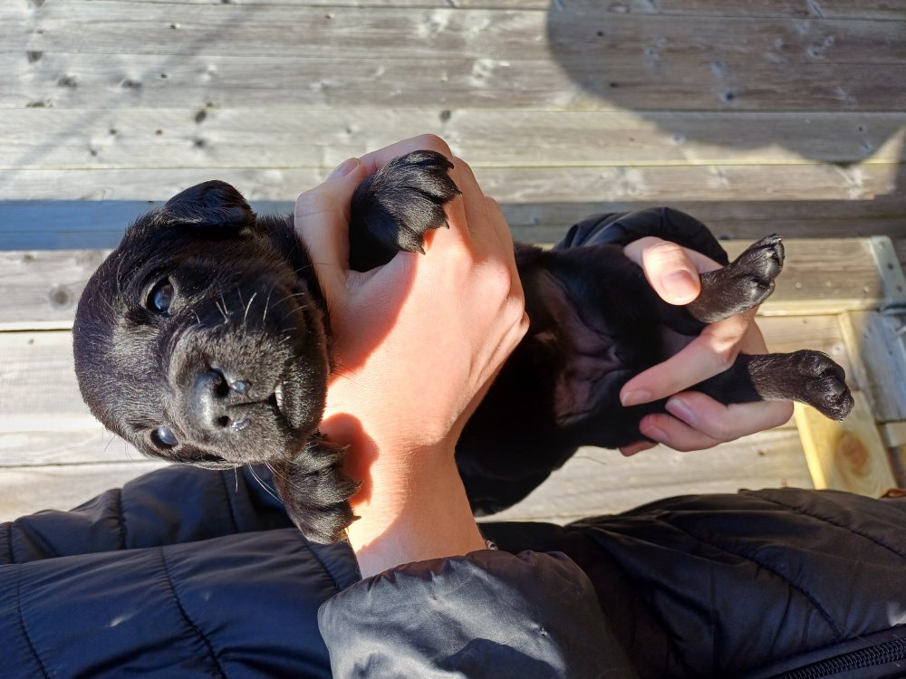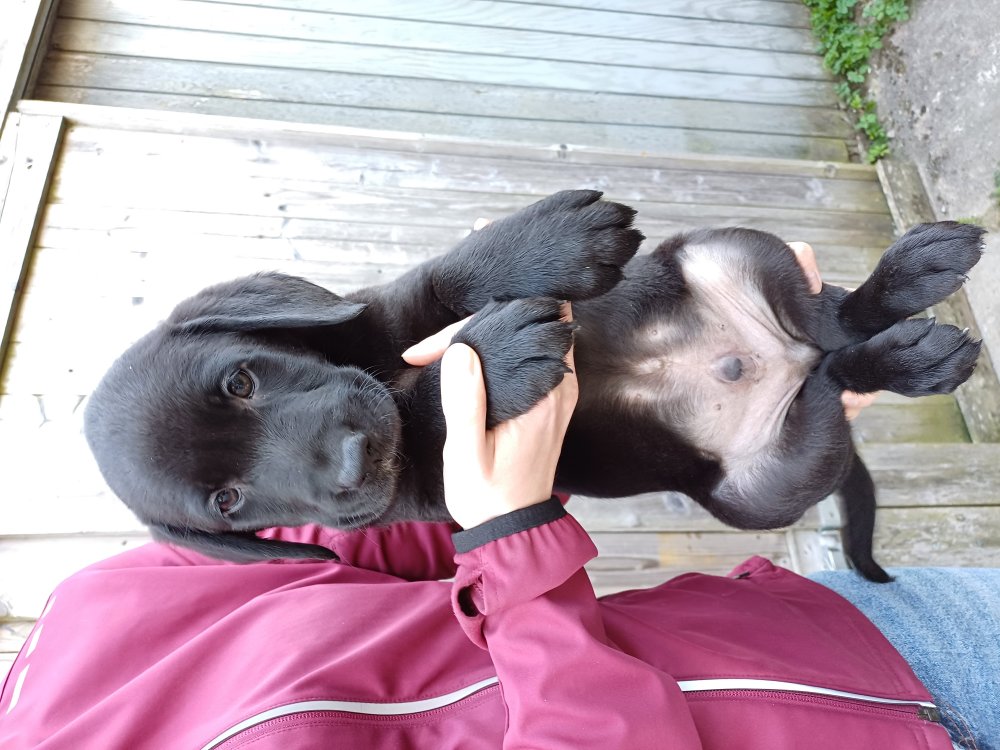 De har fået mere plads, hvalpekassen er kommet ud. Hvalpene er begyndt at bevæge sig lidt mere i en blanding mellem at krybe og forsøge på at bruge benene til at gå. Det er sjovt at se dem prøve at komme rundt i hvalpekassen. Vi er begyndt at kunne ane små sprækker ved øjnene, så det bliver så spændende at se de små øjne når de kommer frem.