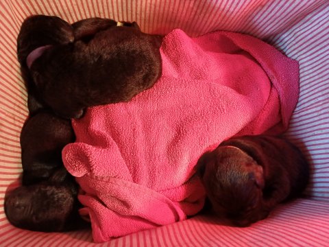 De har fundet rytmen i hvalpekasse, Amy er er rigtig god hundemor der pusser og nusser omrking hendes hvalpe. Hvalpene kommer med en hel masse knirkelyde og bruger tiden på at spise, sove, spise, sove osv.