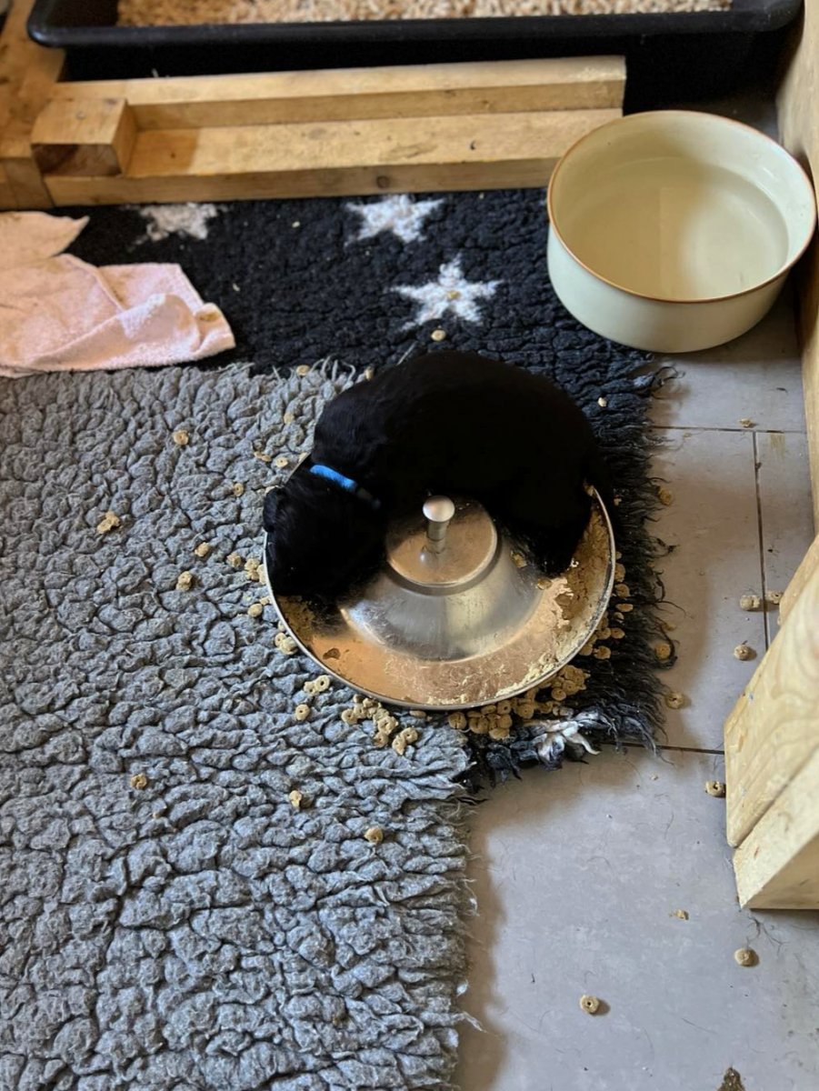 Efter de har fået det første måltid, med rigtig hvalpefoder. Man kan godt blive træt.
