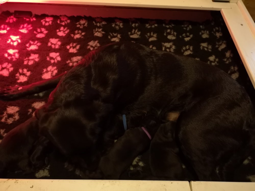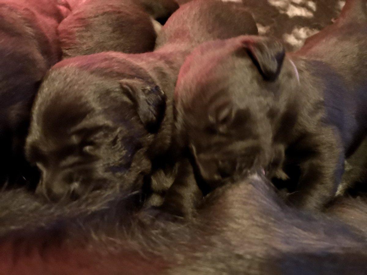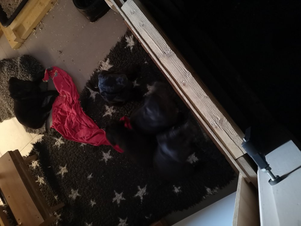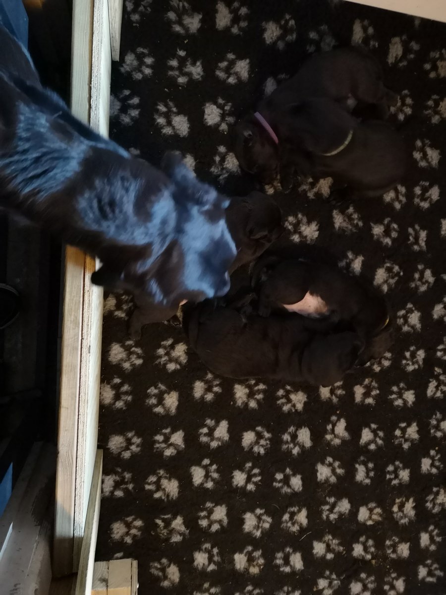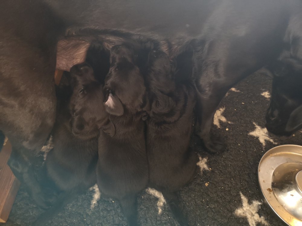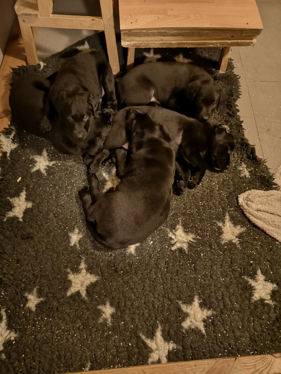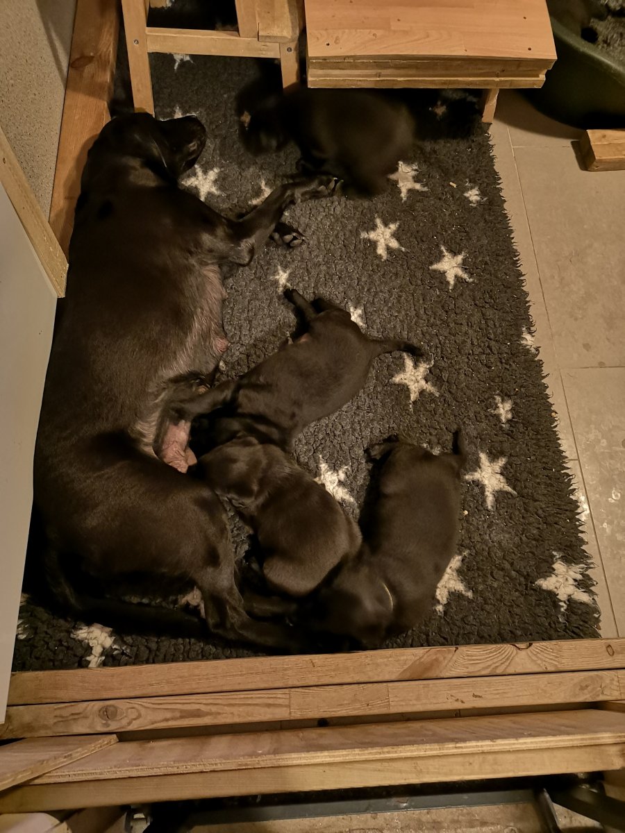 Amy har født 5 store sorte hvalpe, 1 tæve og 4 hanner.