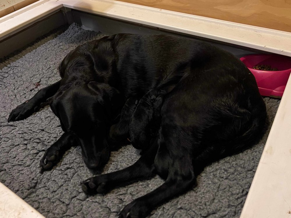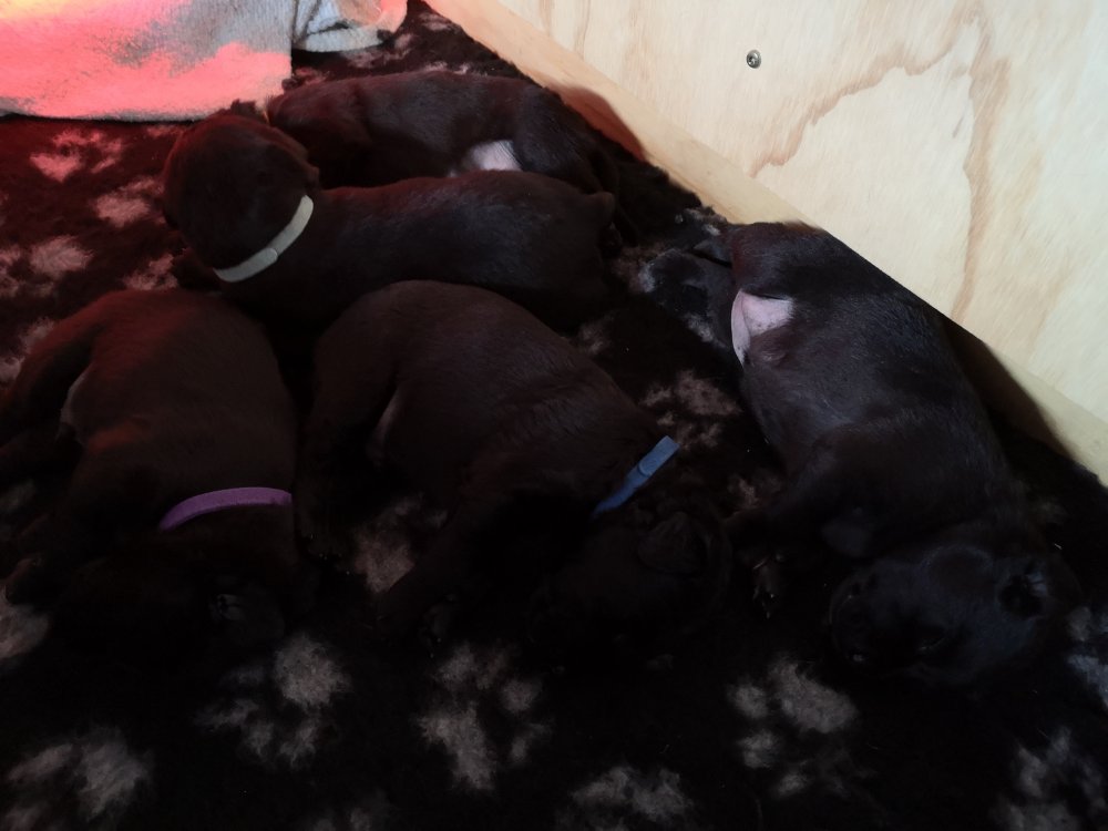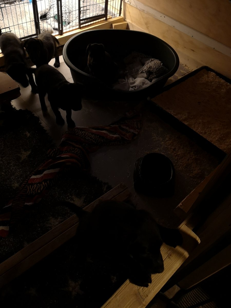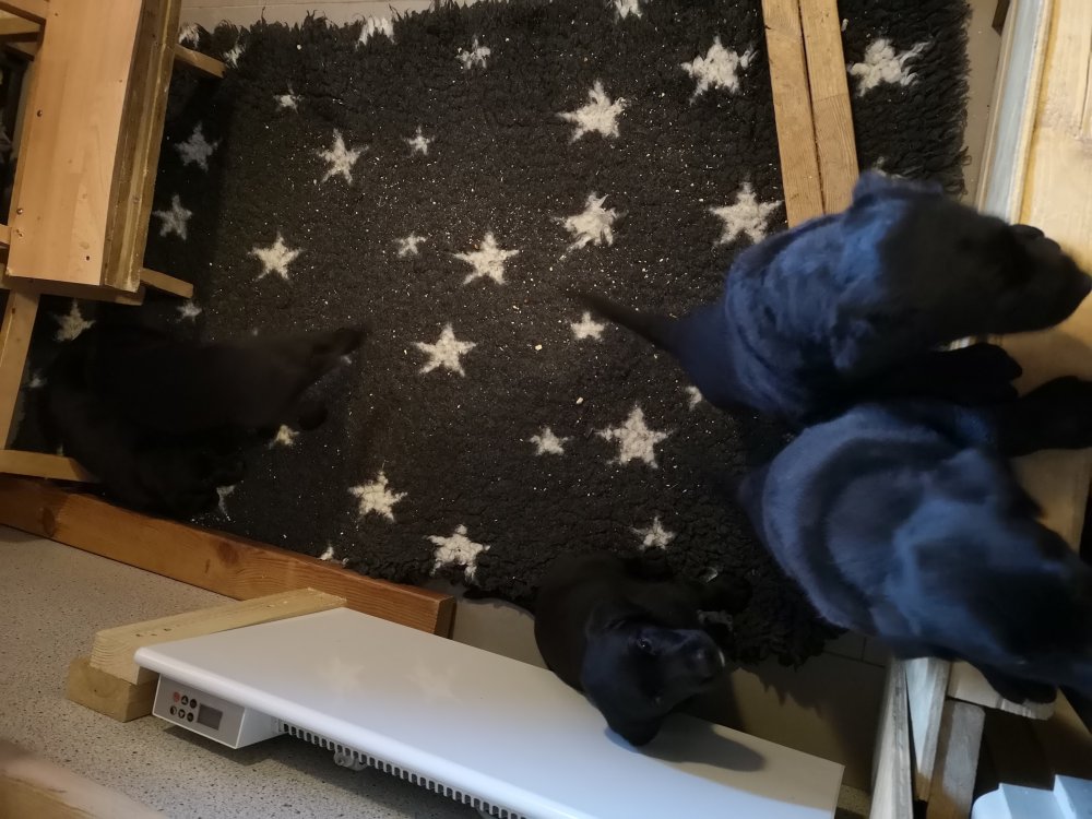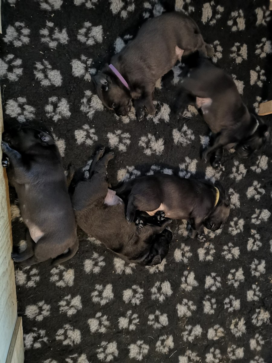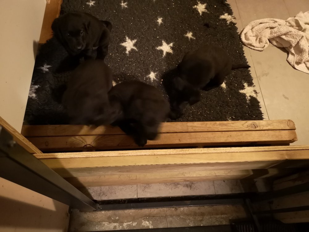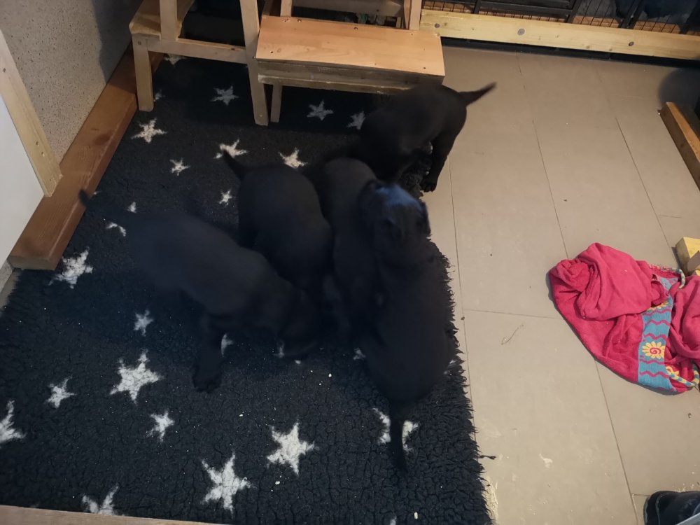 Amy har født 5 store sorte hvalpe, 1 tæve og 4 hanner.