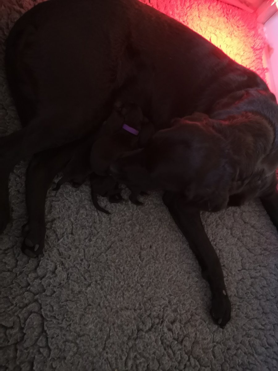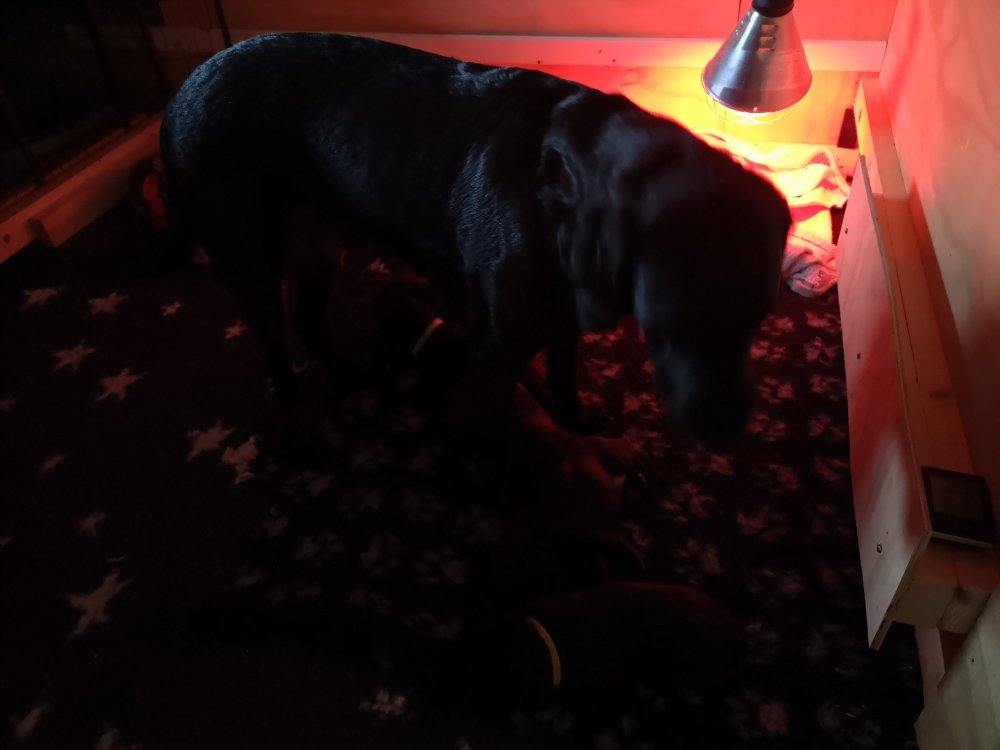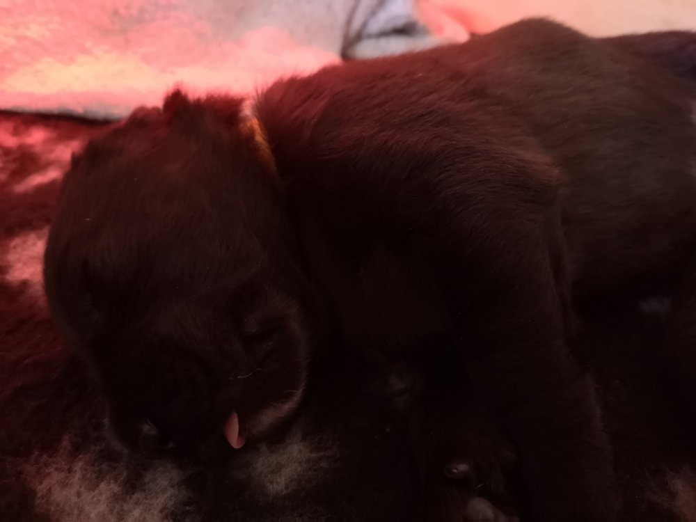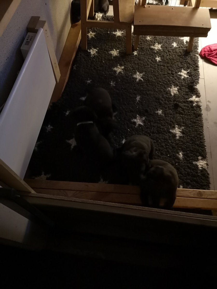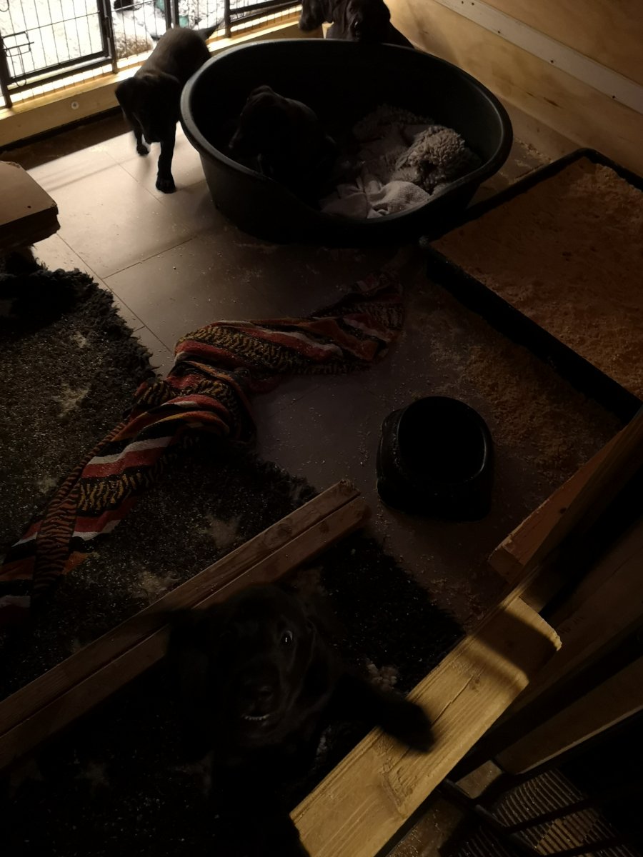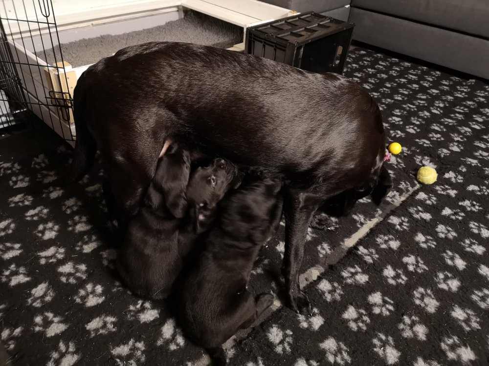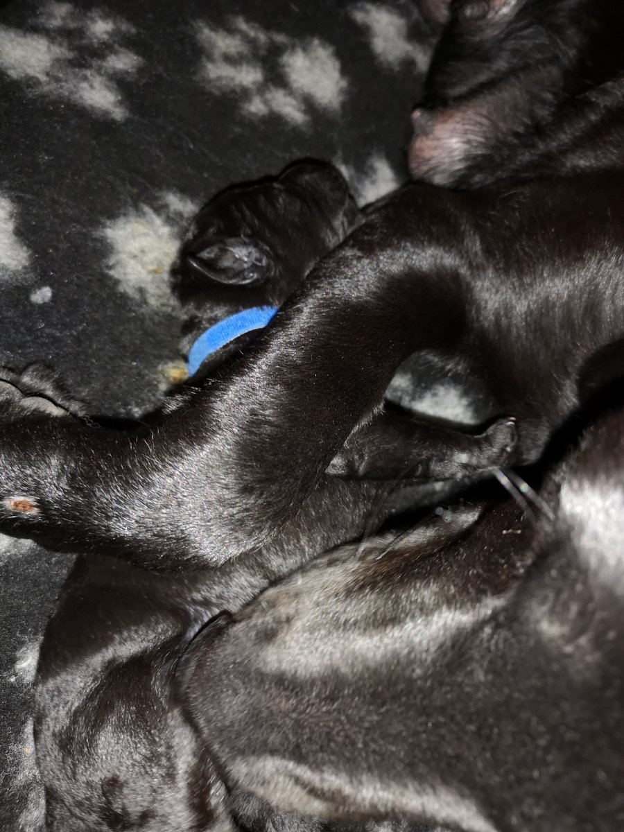 Amy har født 5 store sorte hvalpe, 1 tæve og 4 hanner.