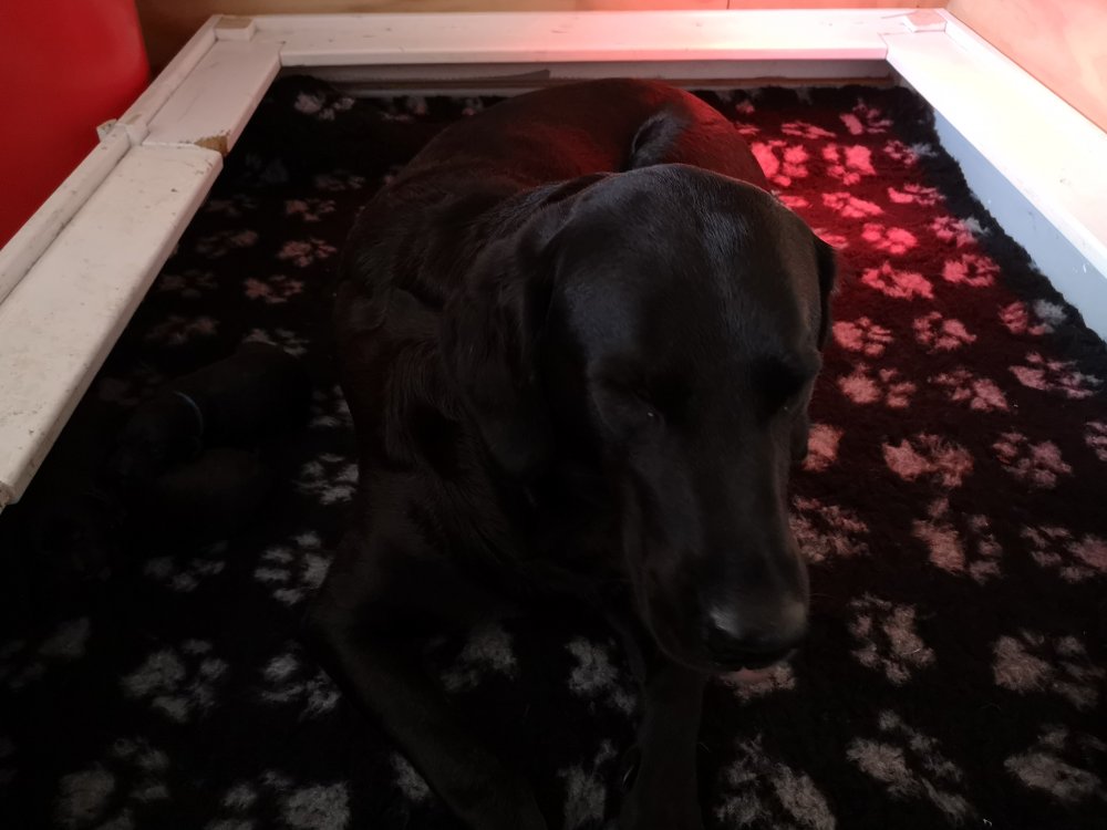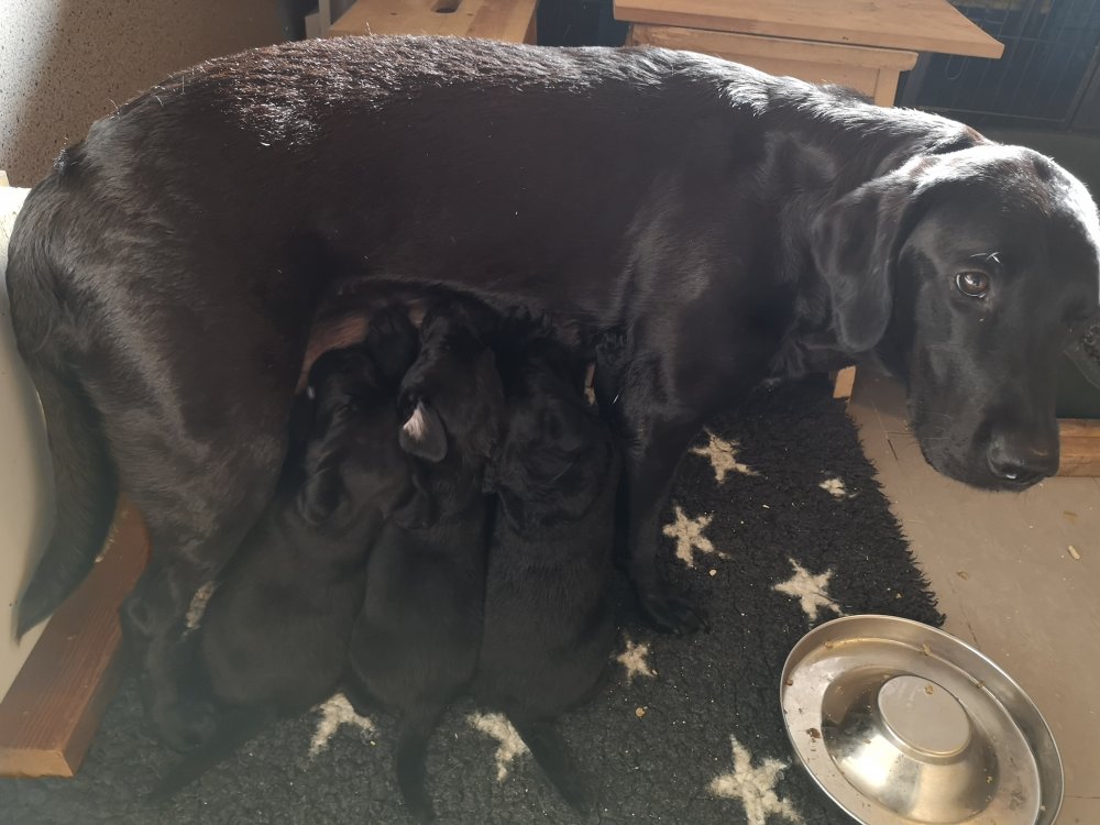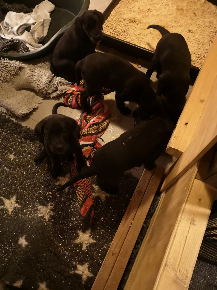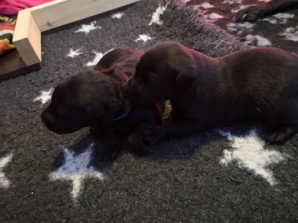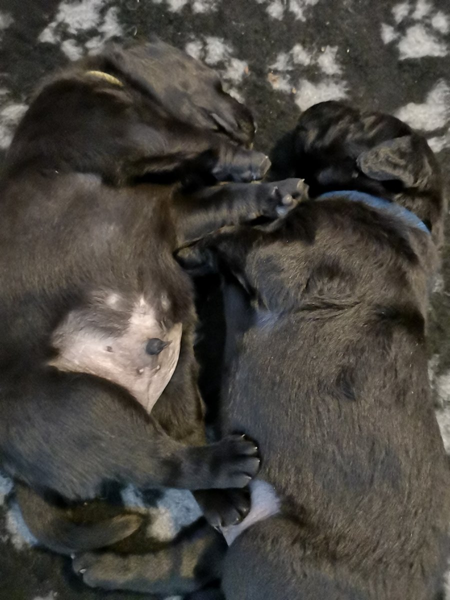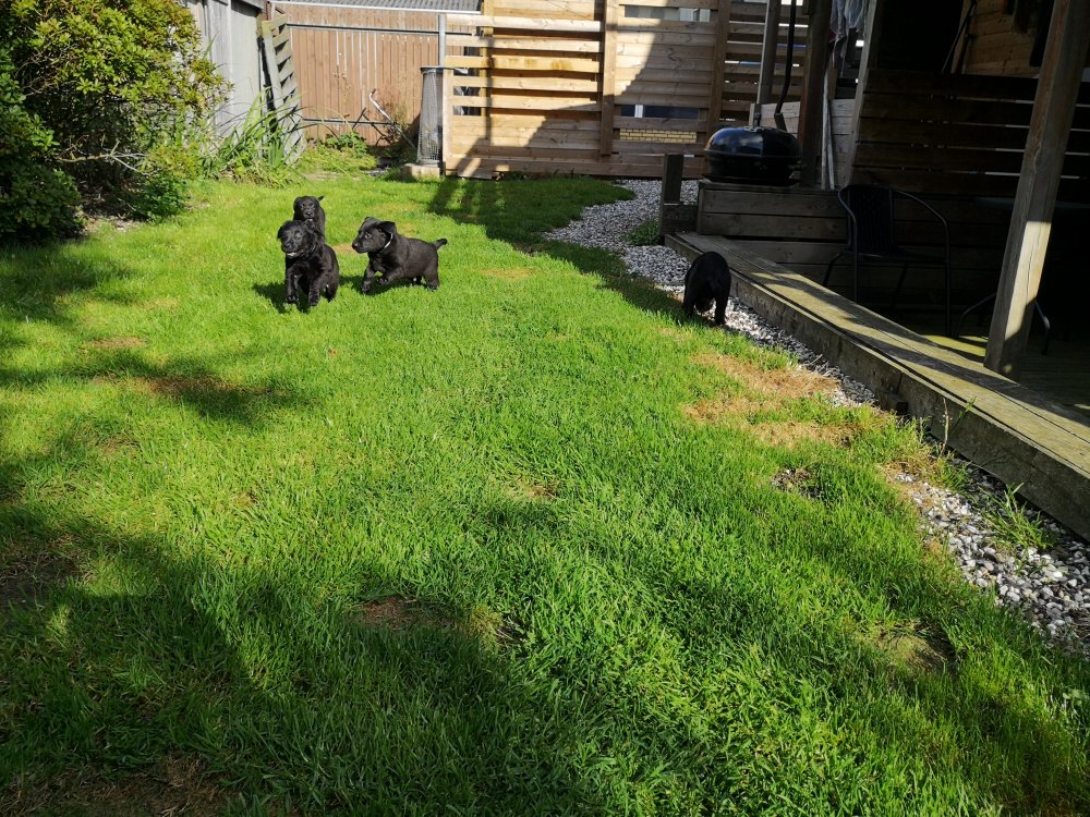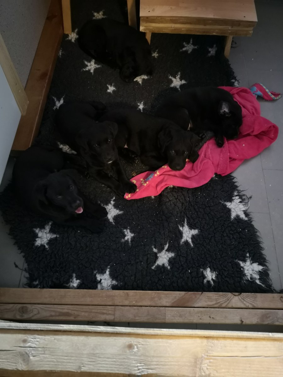 Amy har født 5 store sorte hvalpe, 1 tæve og 4 hanner.