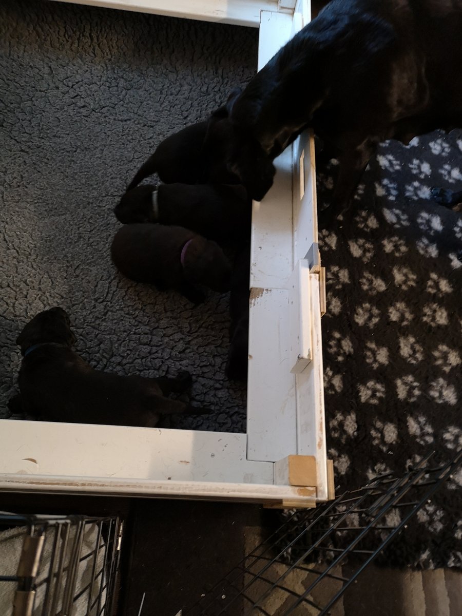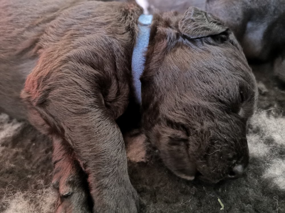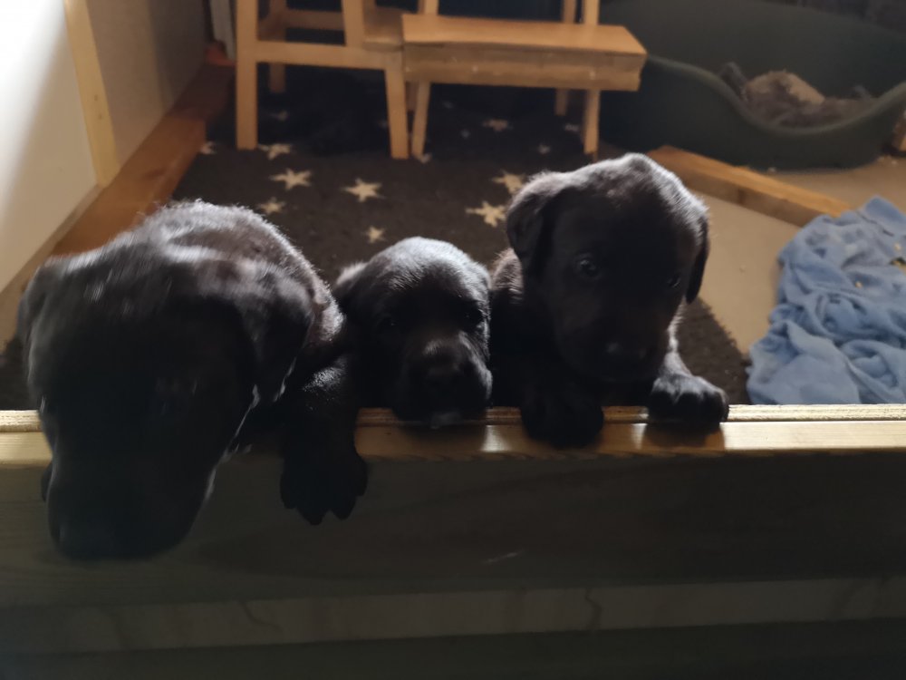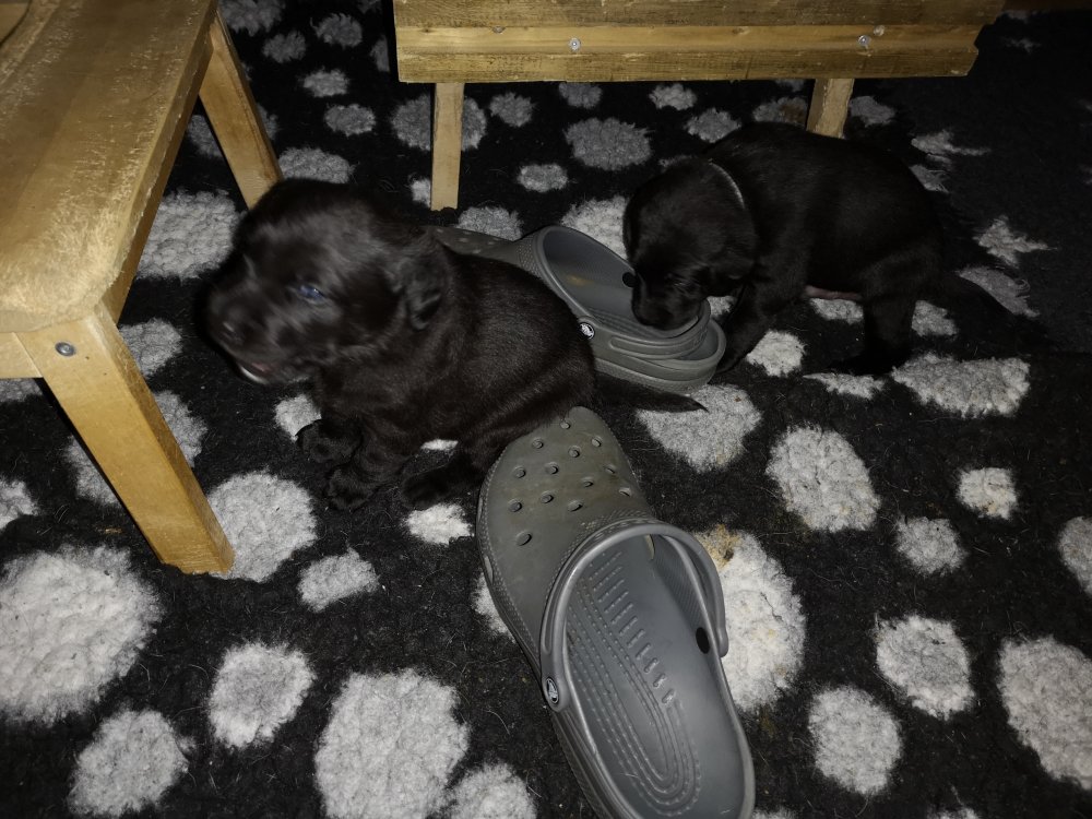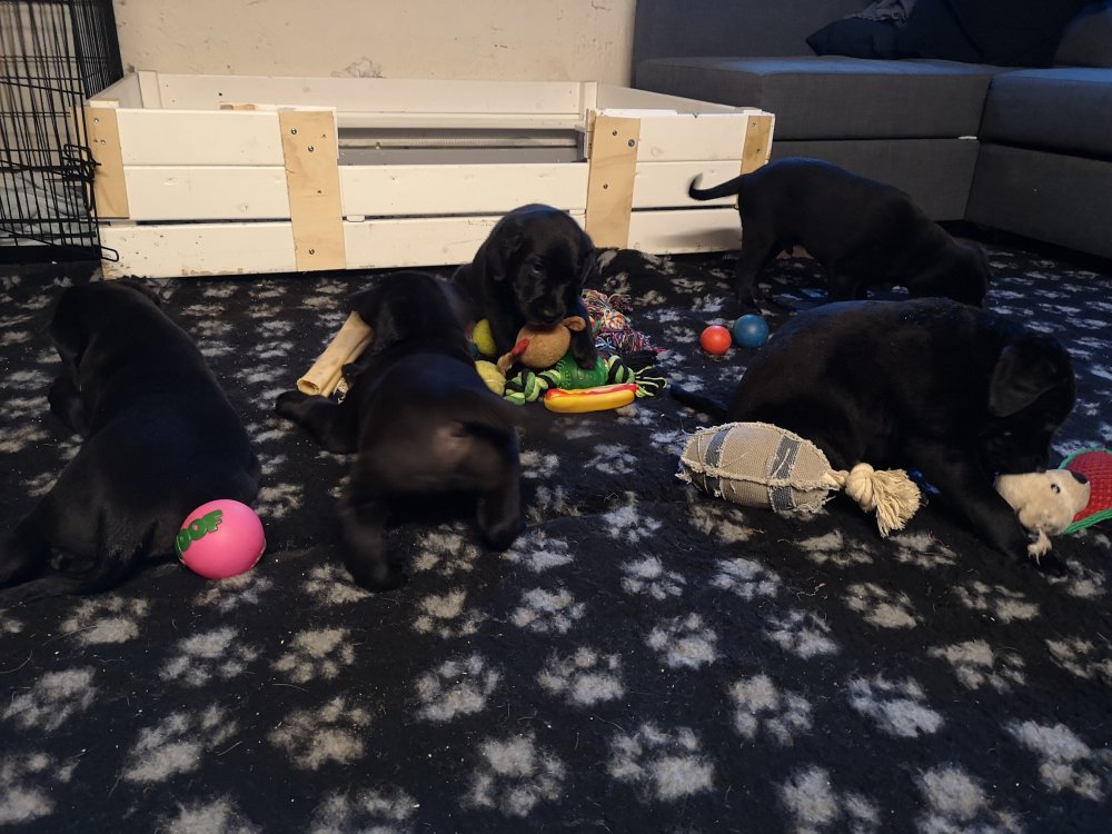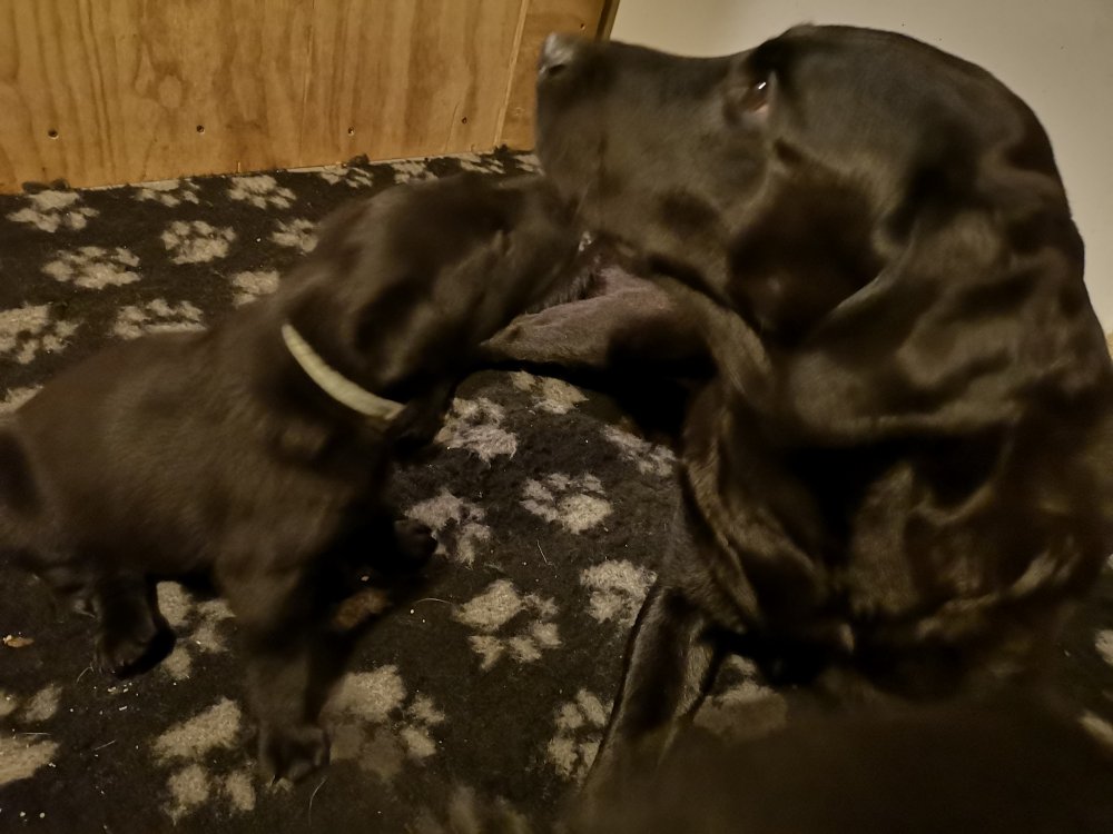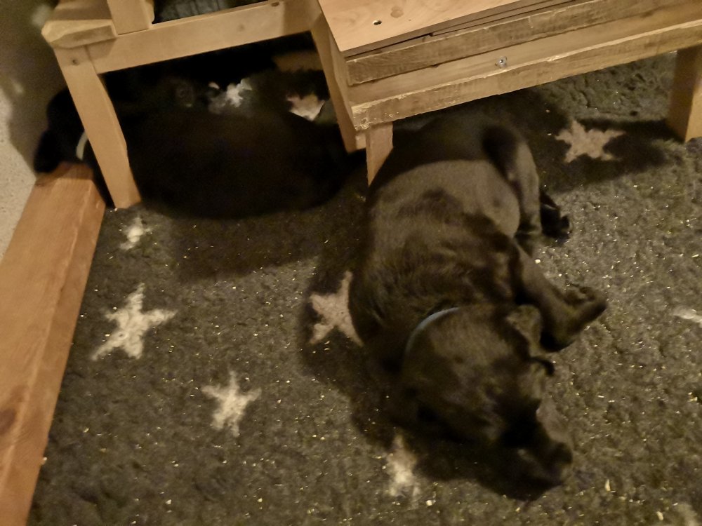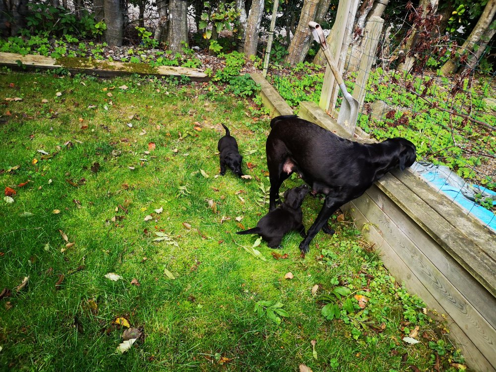 Amy har født 5 store sorte hvalpe, 1 tæve og 4 hanner.