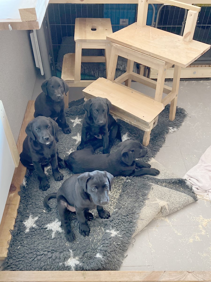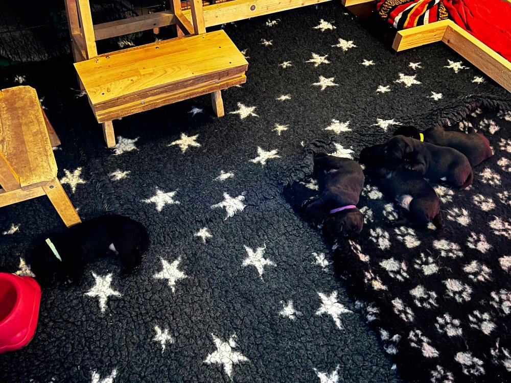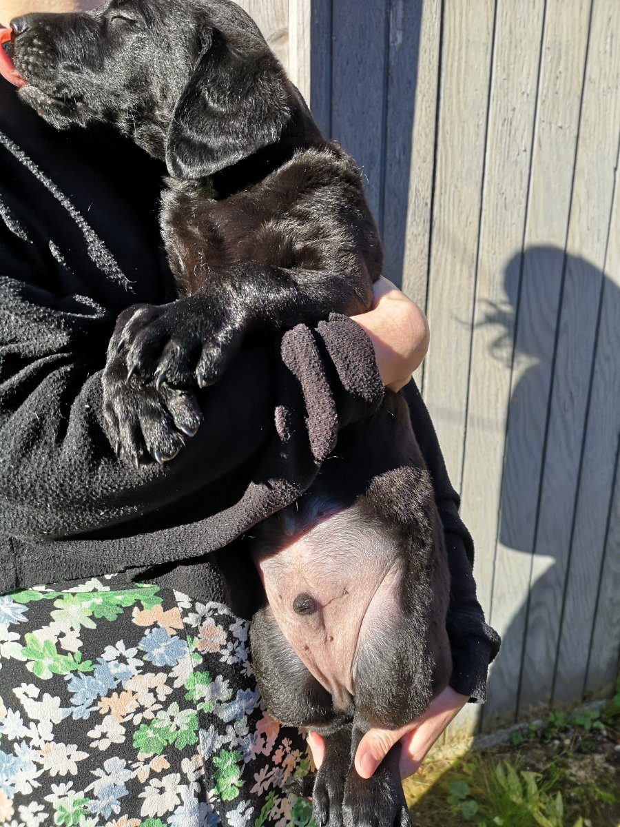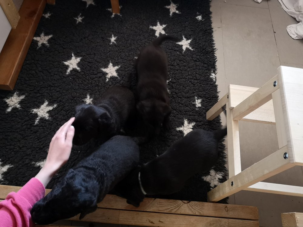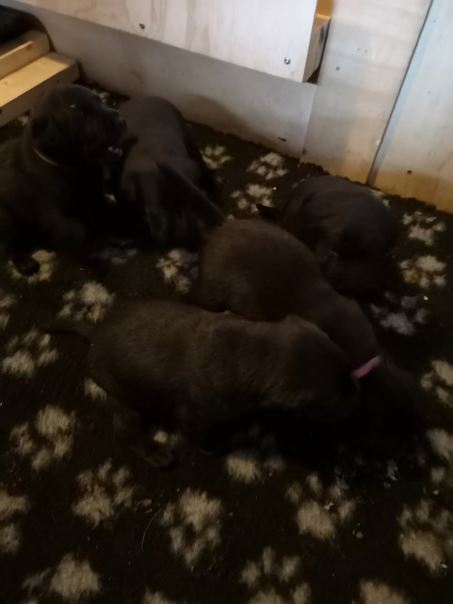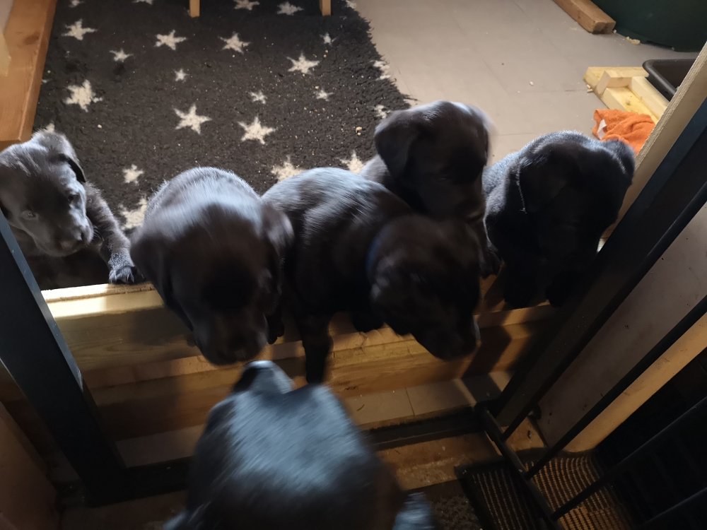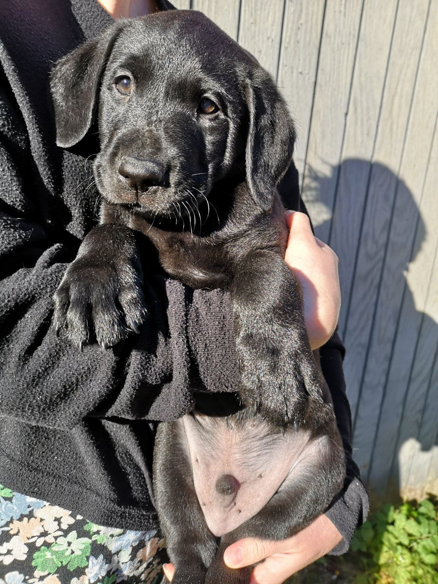 Amy har født 5 store sorte hvalpe, 1 tæve og 4 hanner.