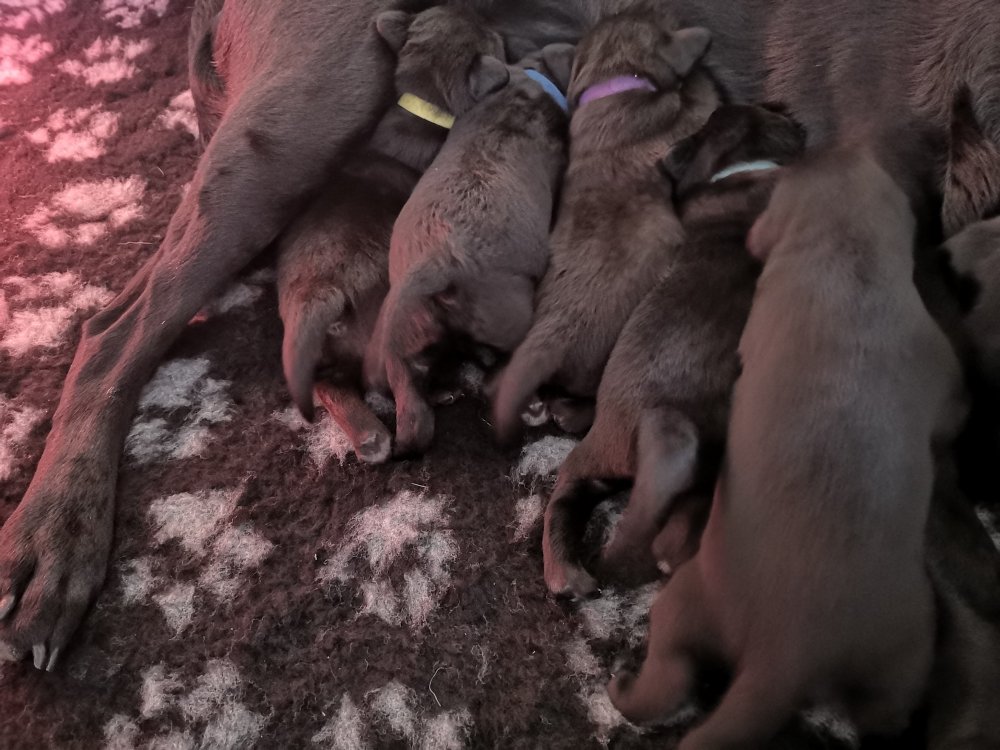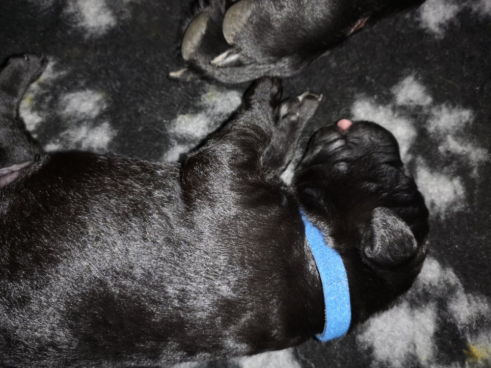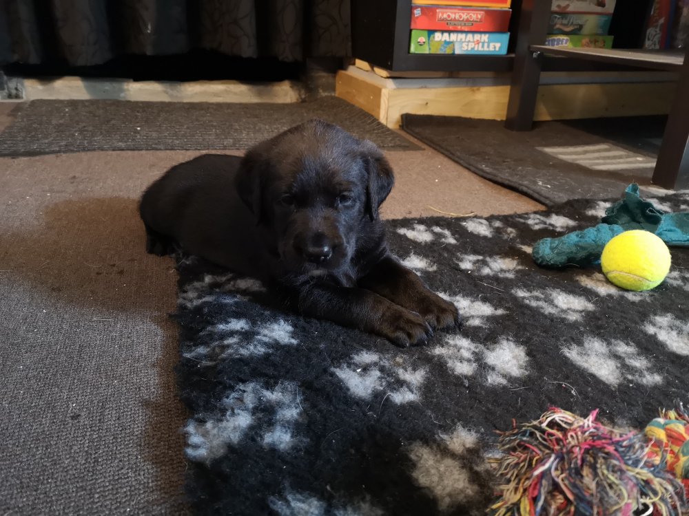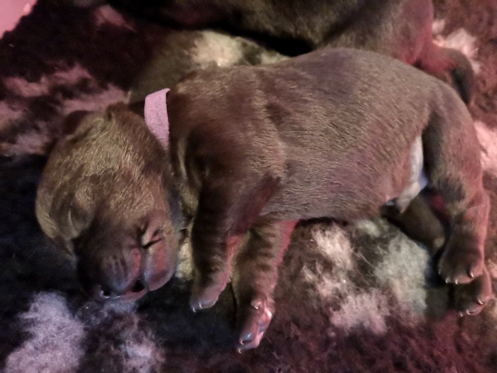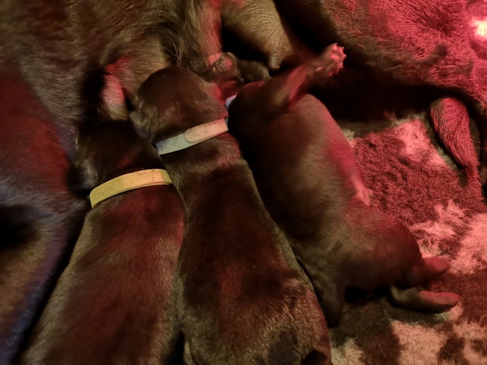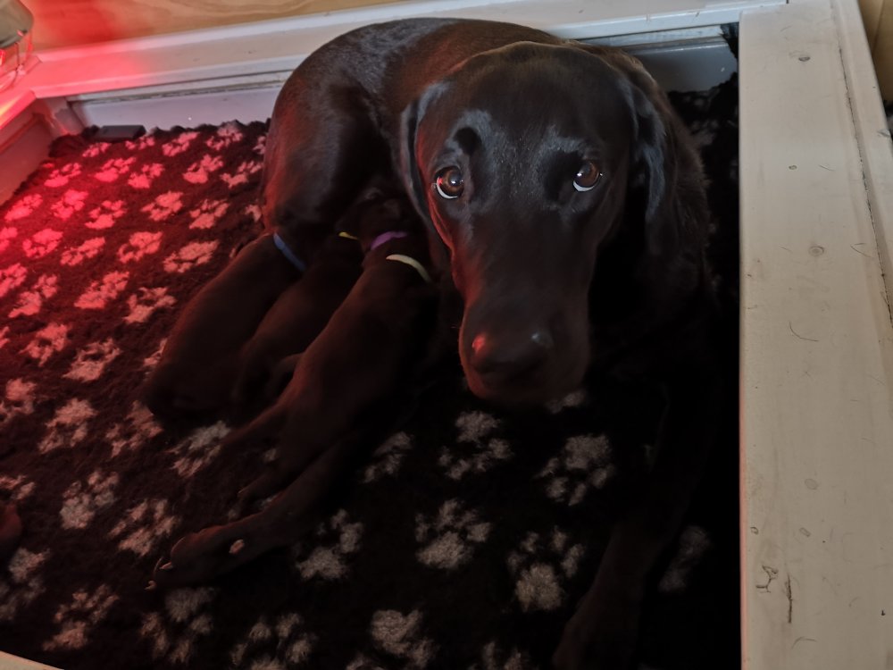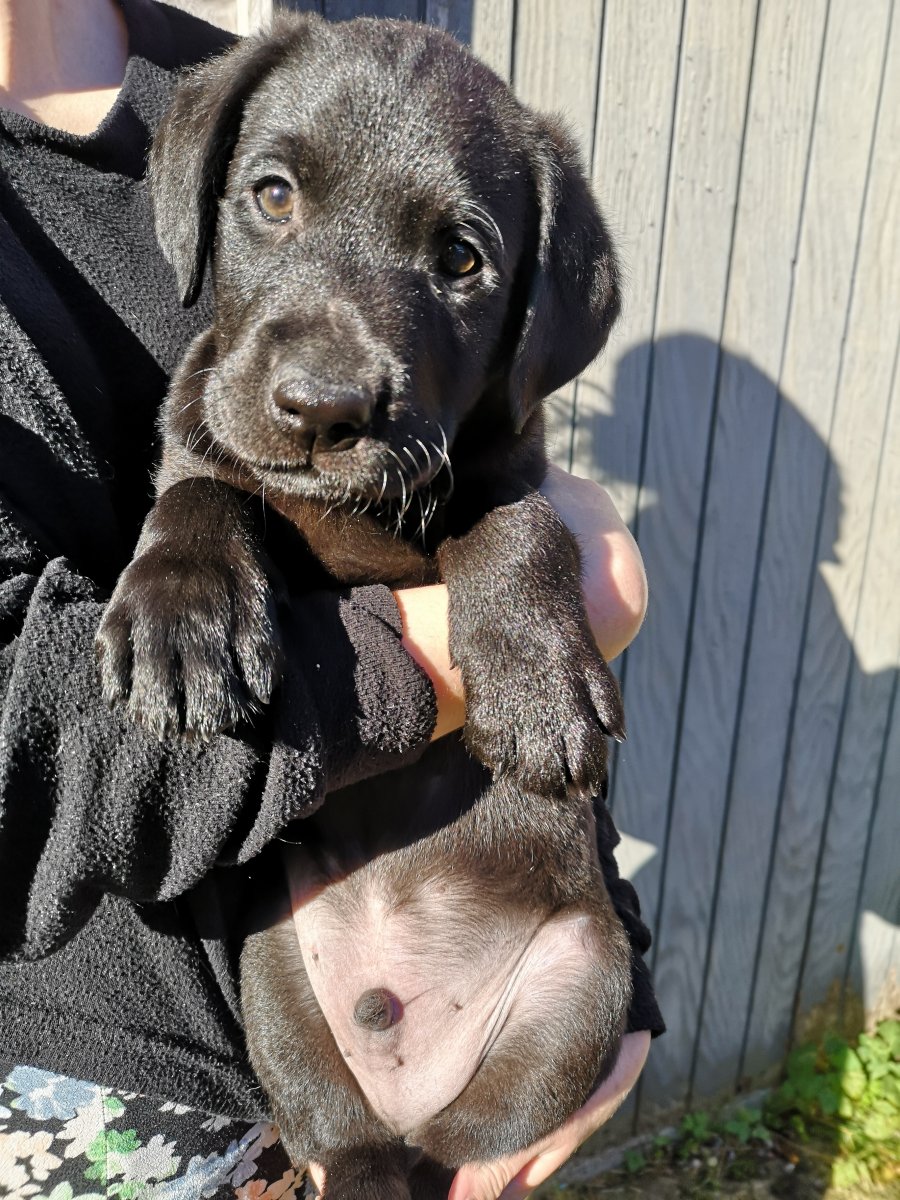 Amy har født 5 store sorte hvalpe, 1 tæve og 4 hanner.