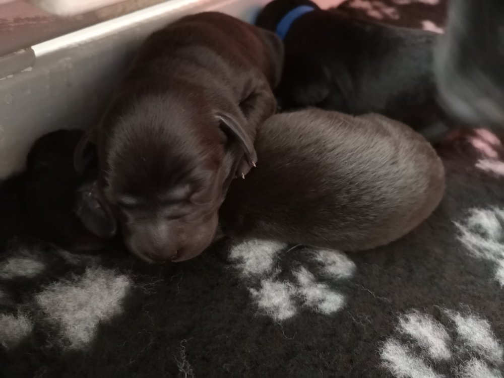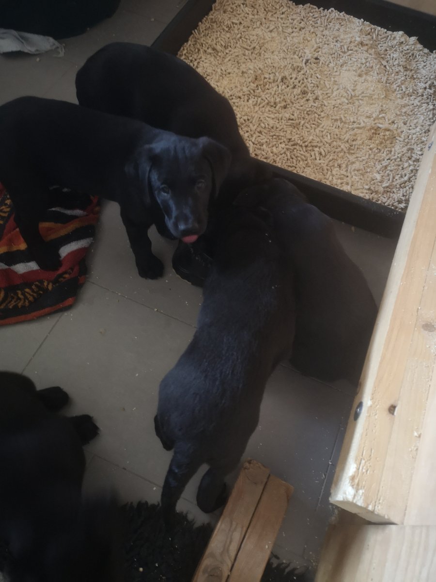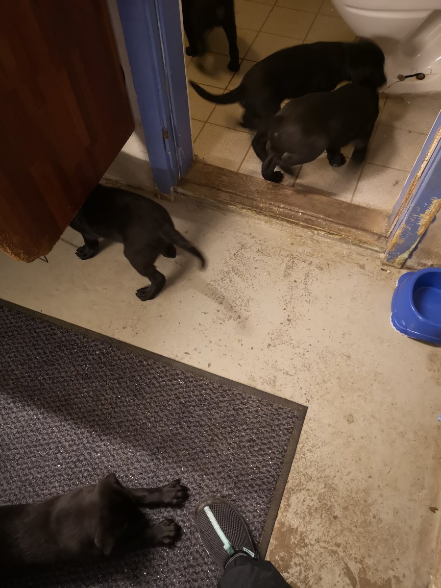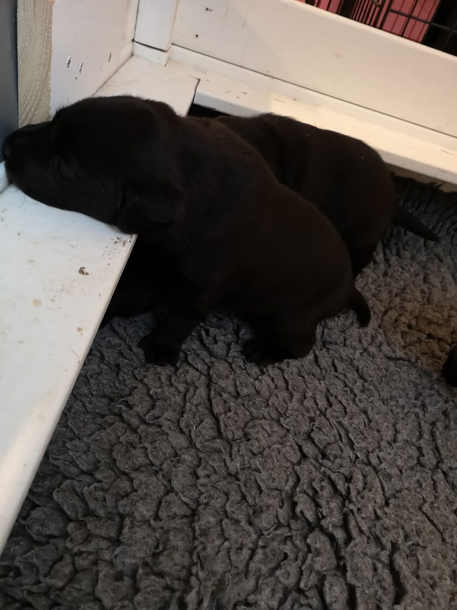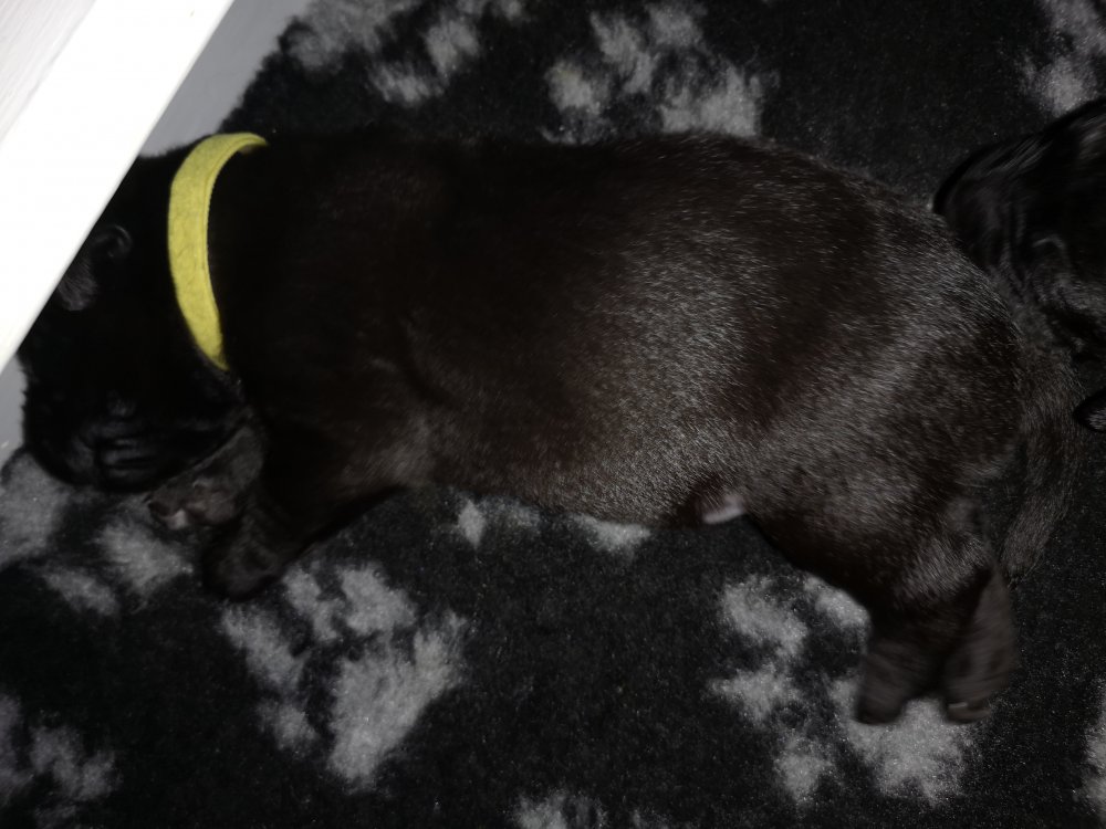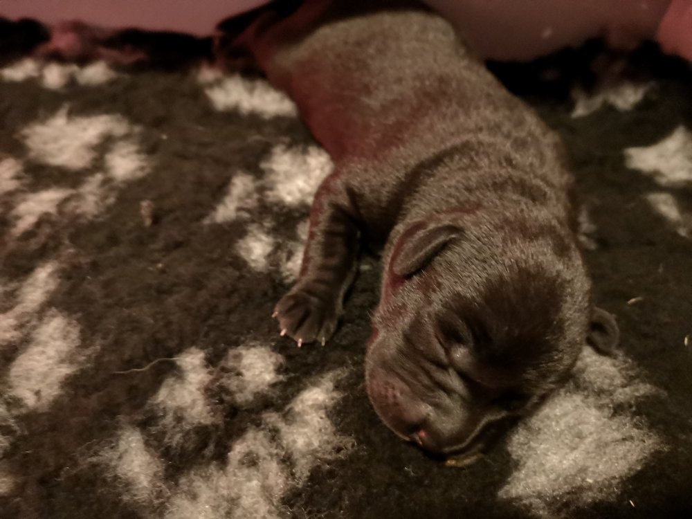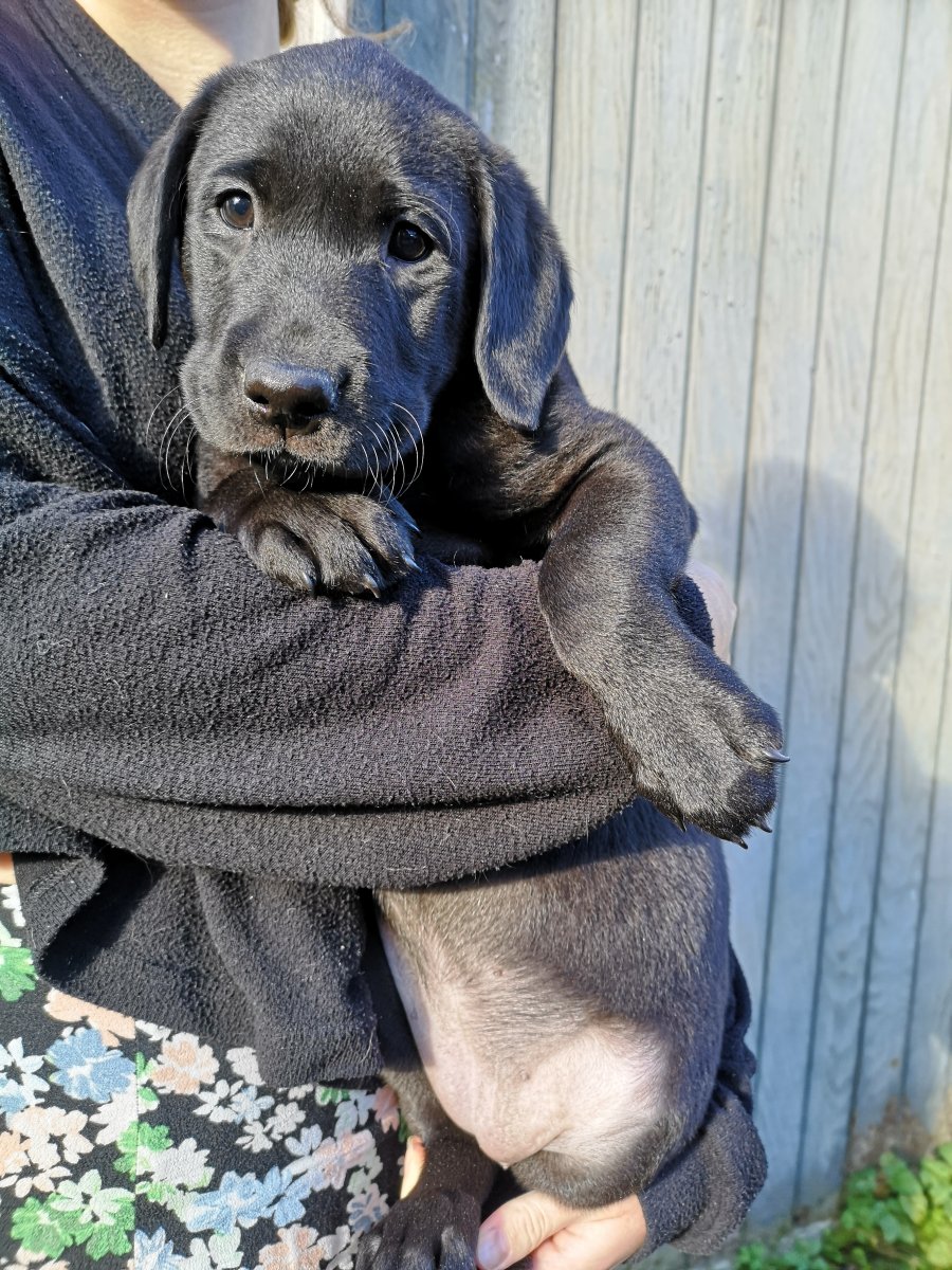 Amy har født 5 store sorte hvalpe, 1 tæve og 4 hanner.