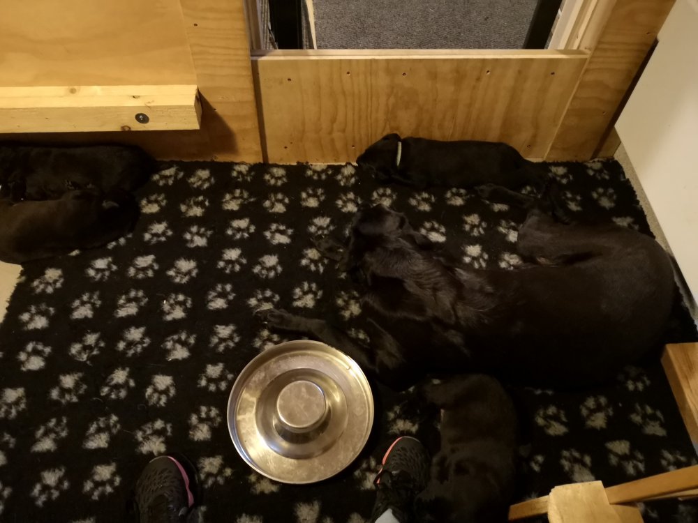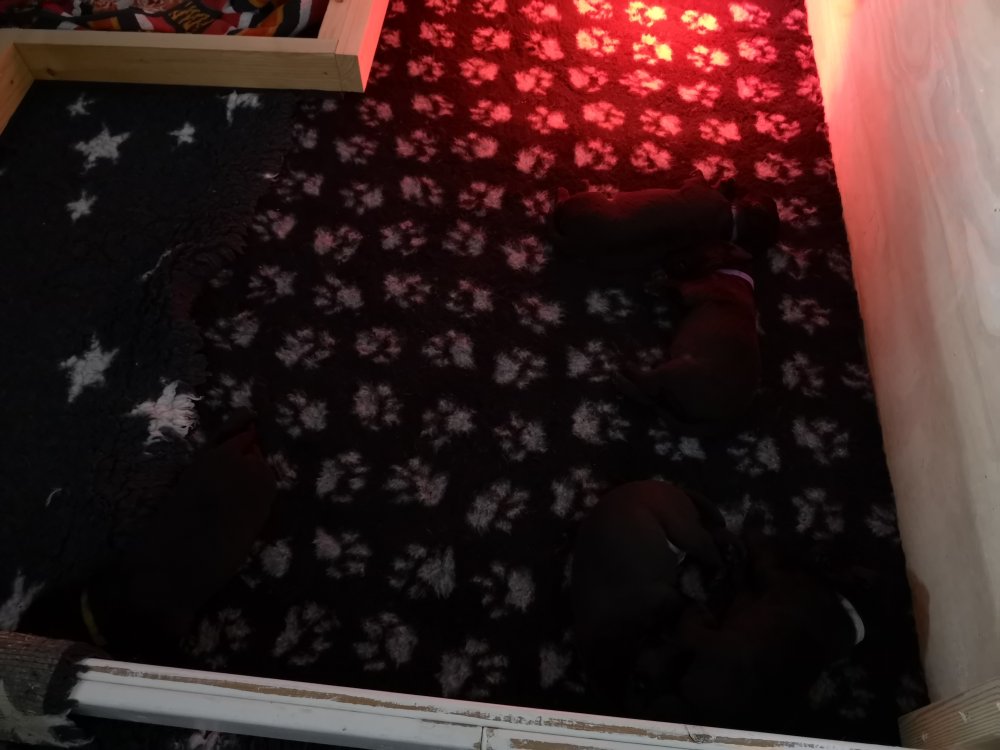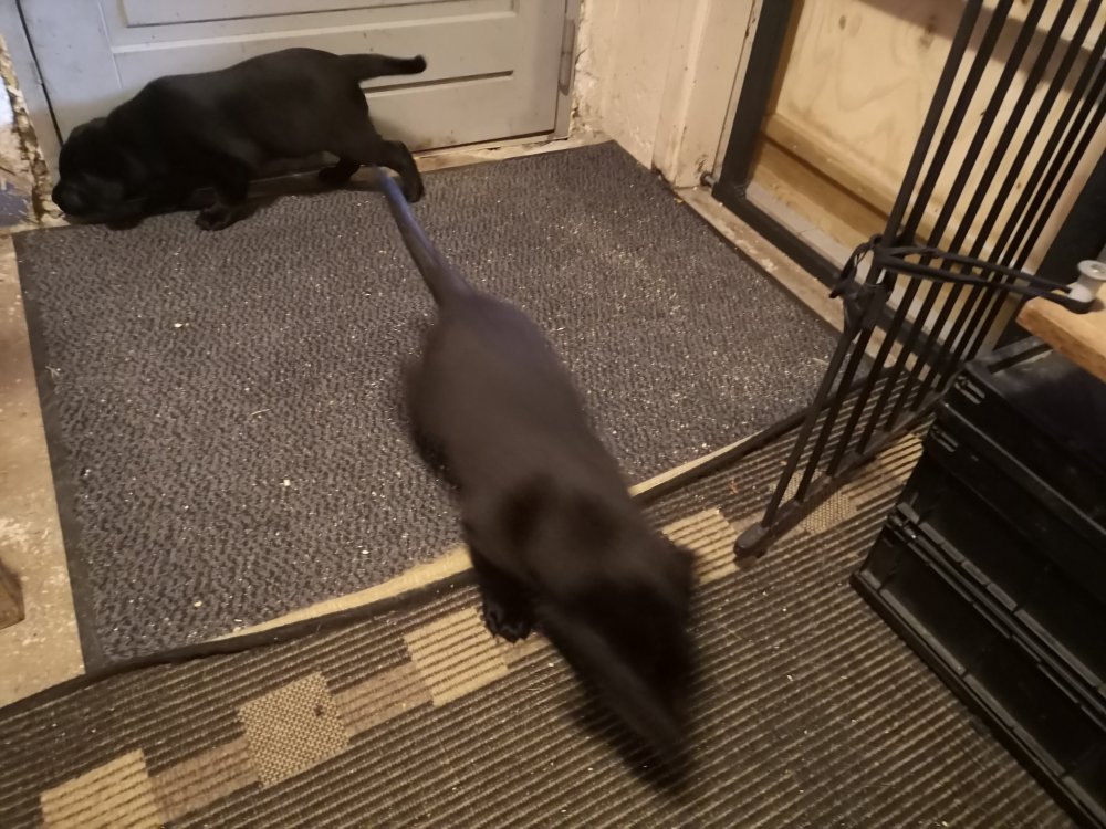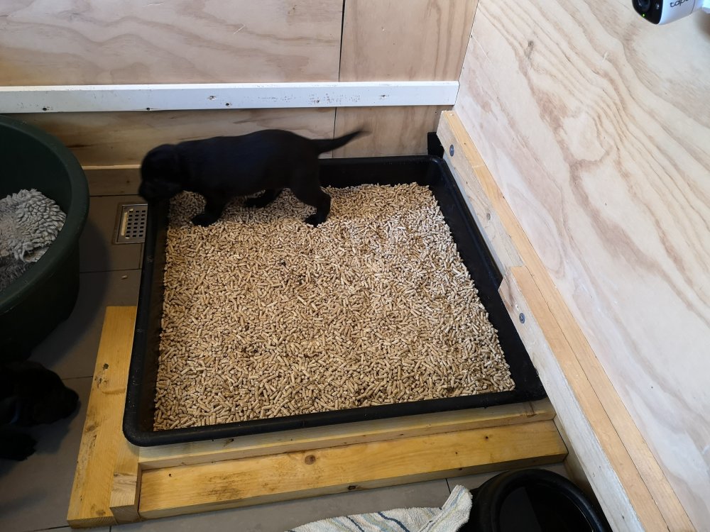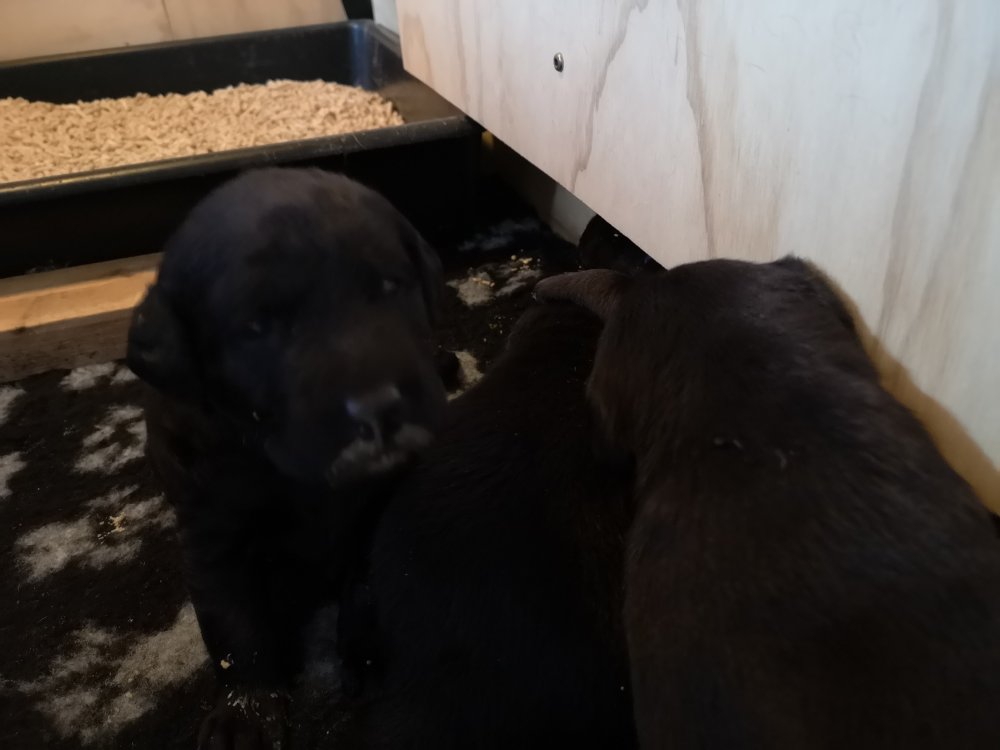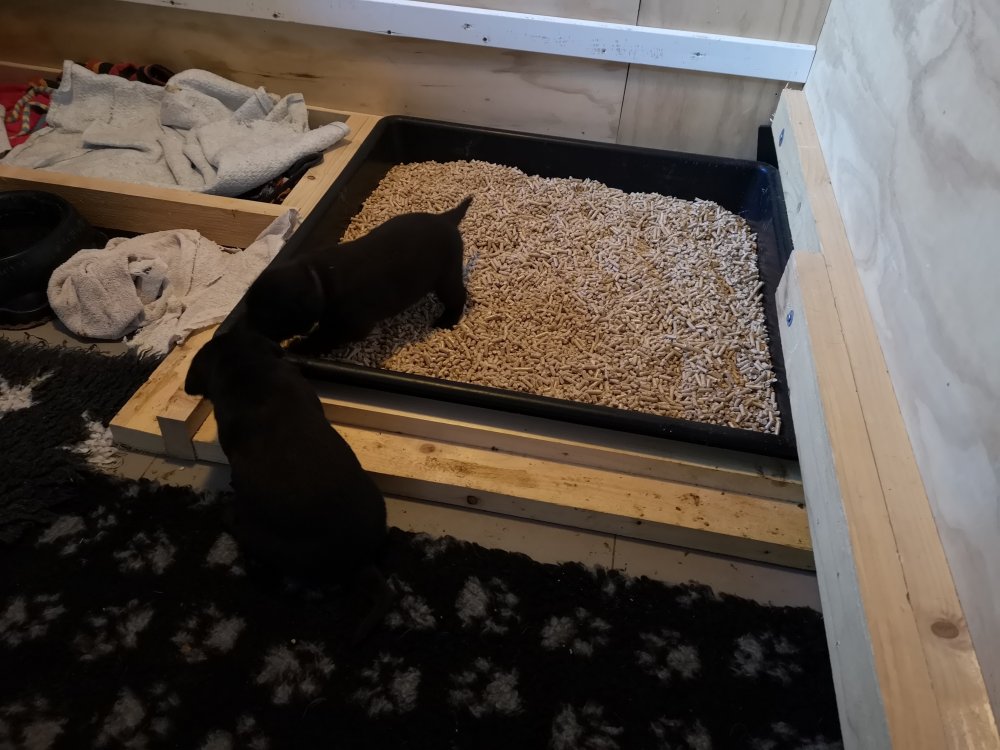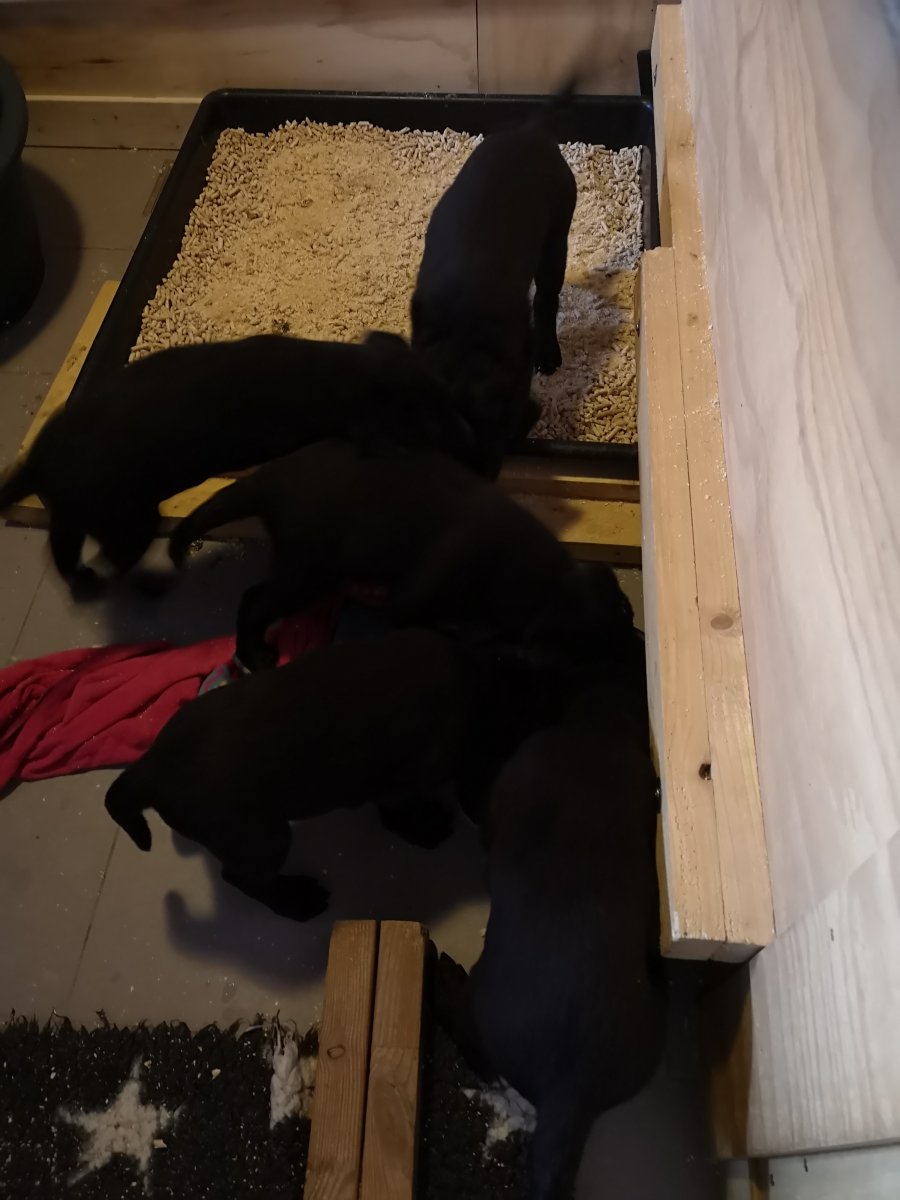 Hvalpene har fået lidt mere plads, de kan nu gå og se lidt.