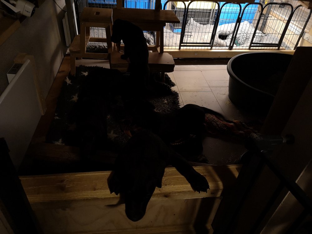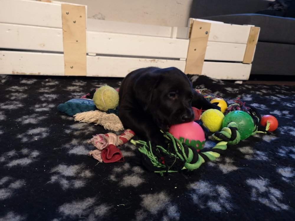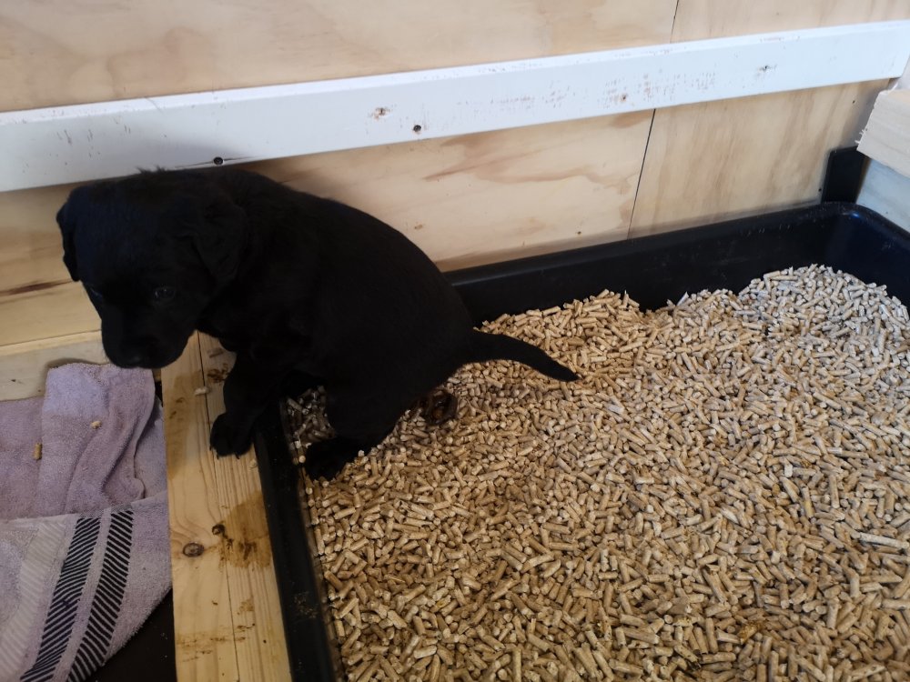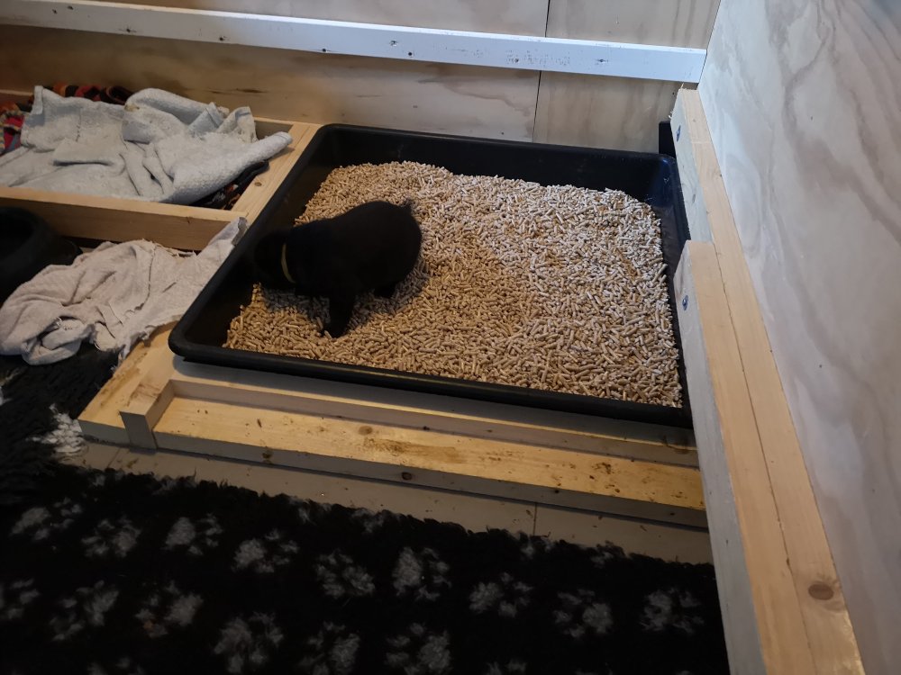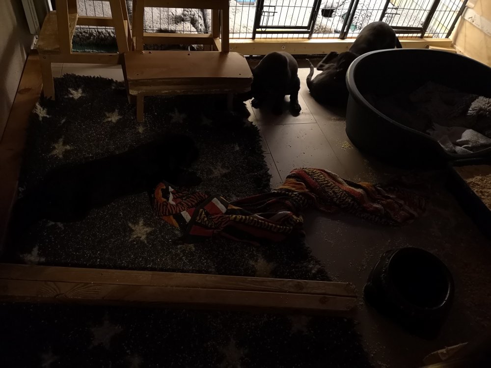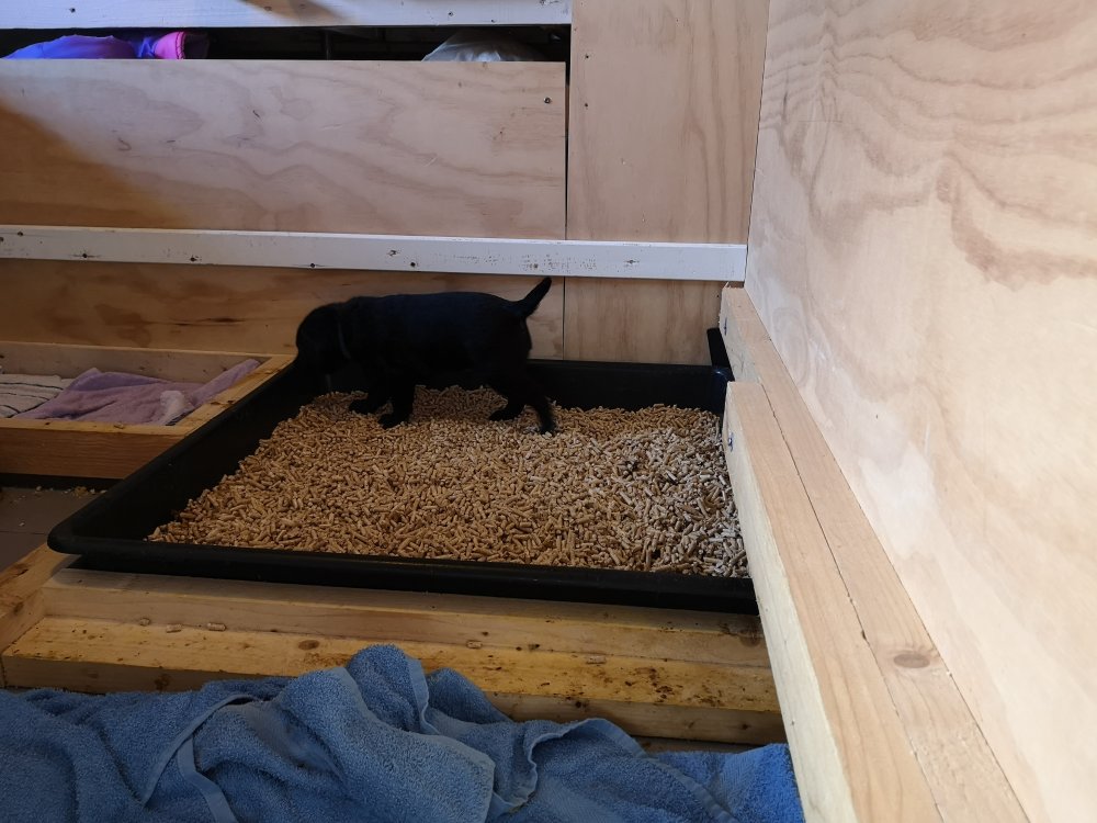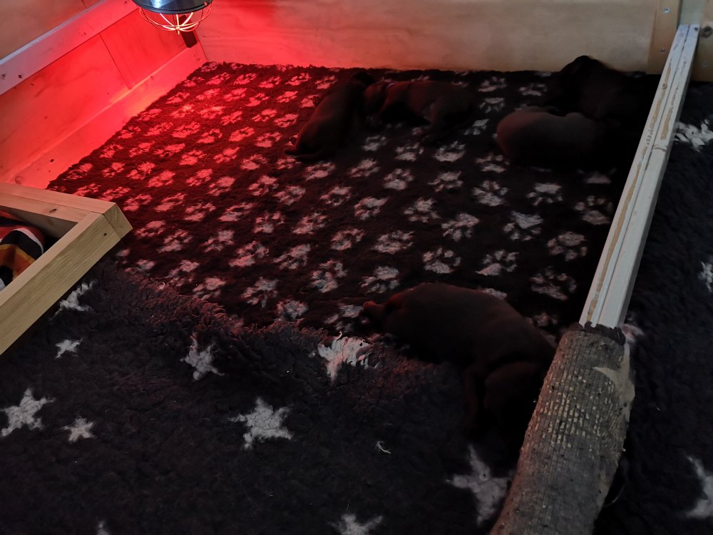 Hvalpene har fået lidt mere plads, de kan nu gå og se lidt.