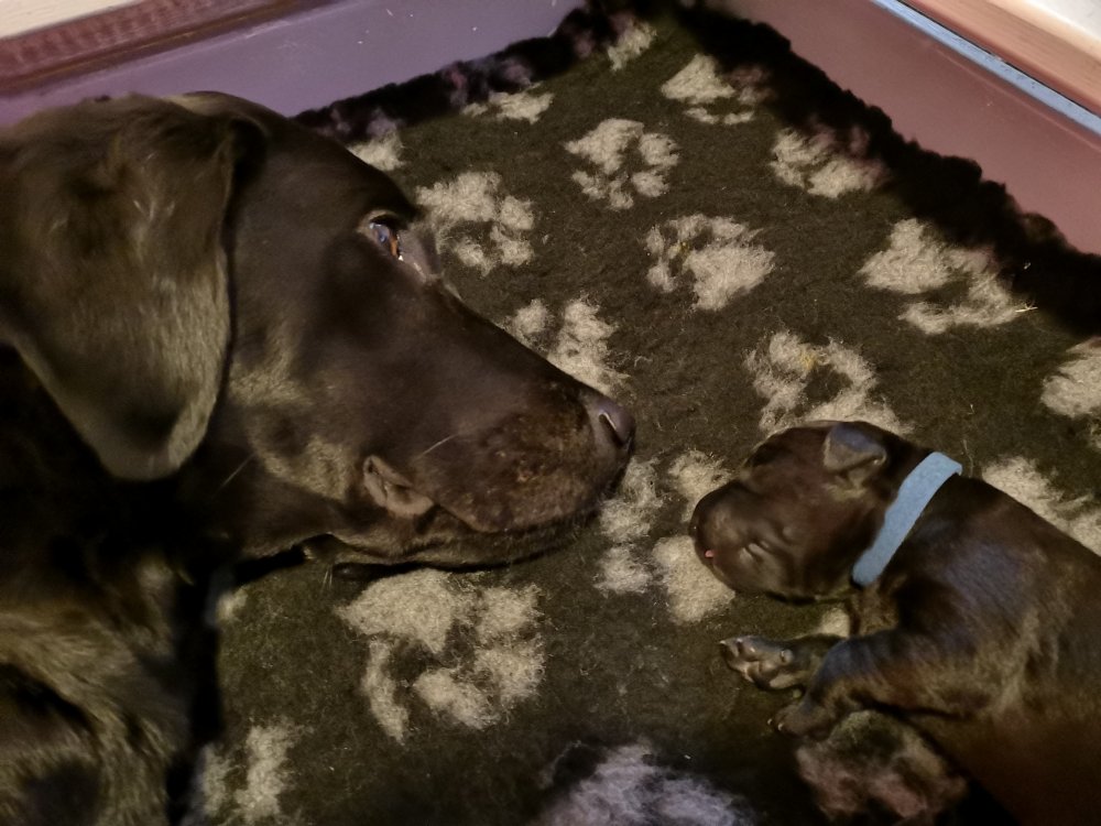 Både hvalpene og Amy har fundet en rytme med hensyn til livet i hvalpekassen,det meste af tiden går stadig med at sove og spise. Når hvalpene sover kommer Amy op til resten familie, men hun vil også rigtig gerne være sammen med hendes hvalpe.