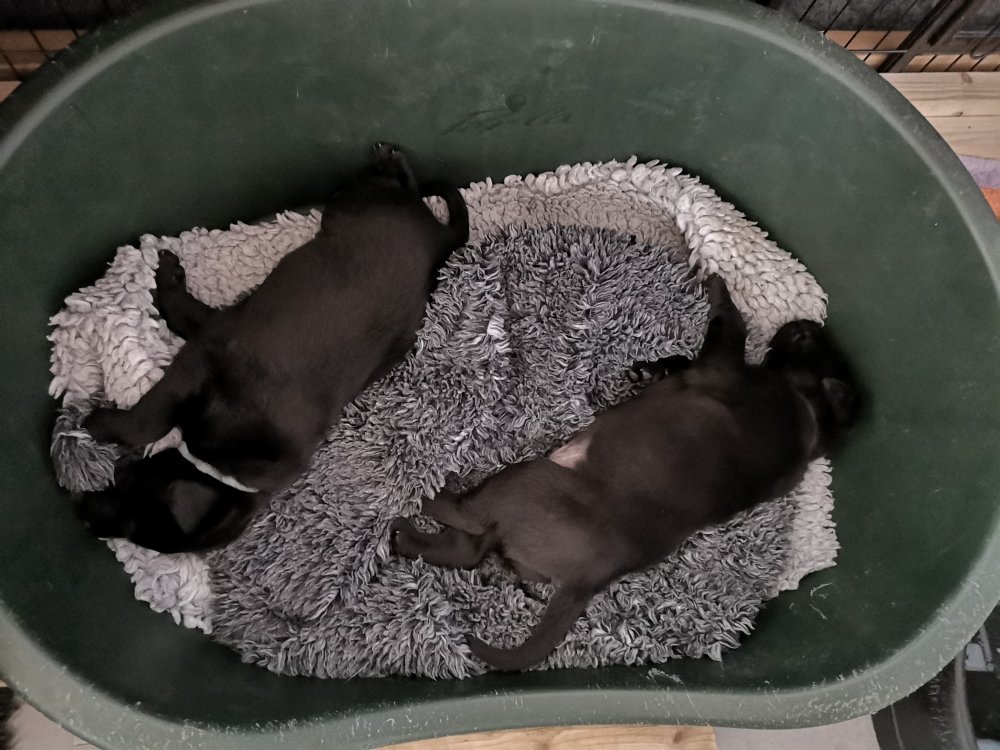 Hvalpene kommer med en hel masse knirkelyde og bruger tiden på at spise, sove, spise, sove osv. Amy er en rigtig god mor hun pudser og nusser omkring hendes hvalpe