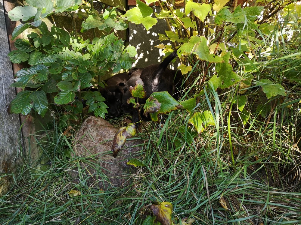 Amy er begyndt at komme med ud i haven med de andre hunde.