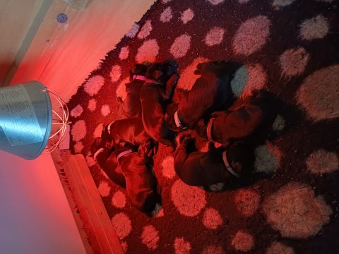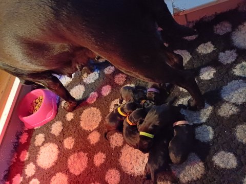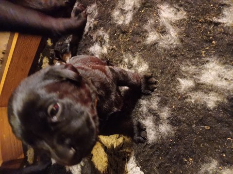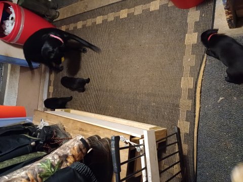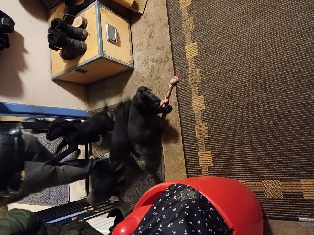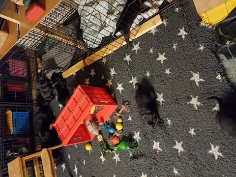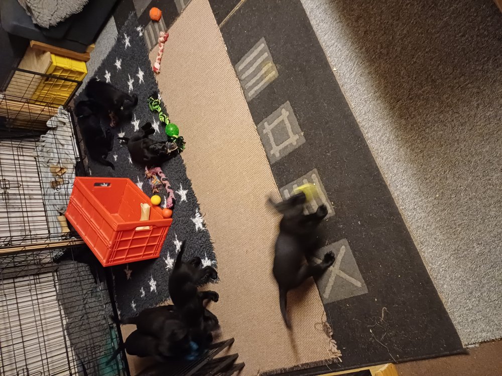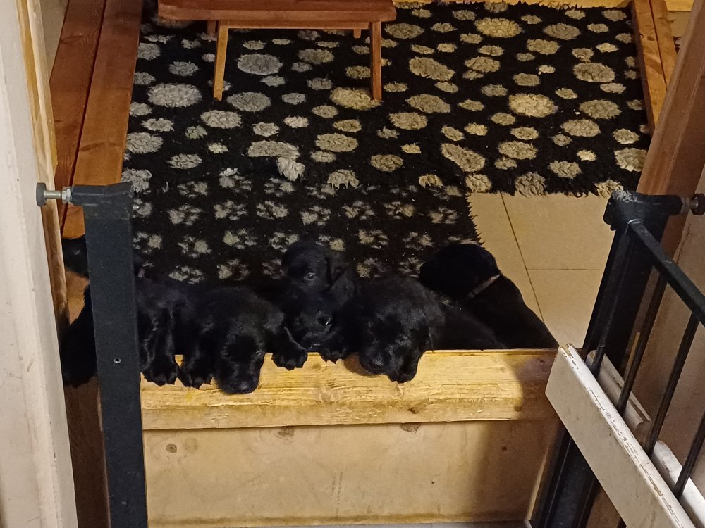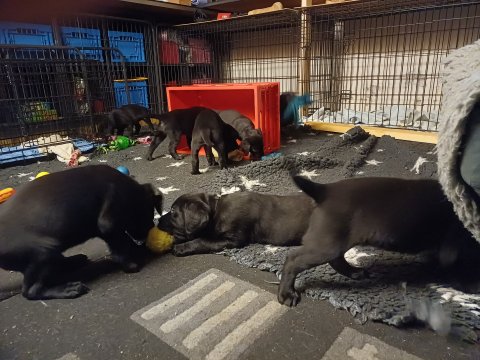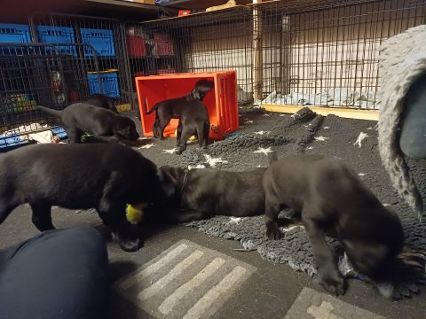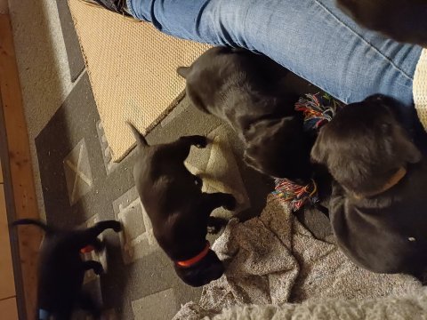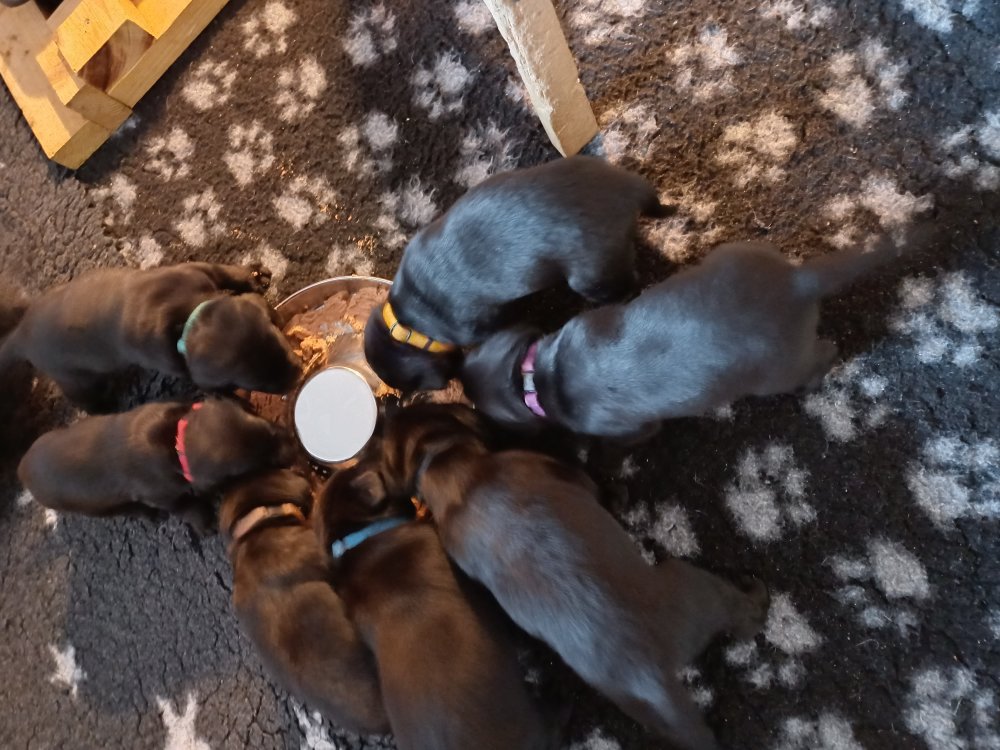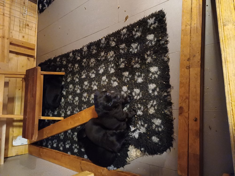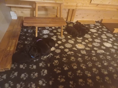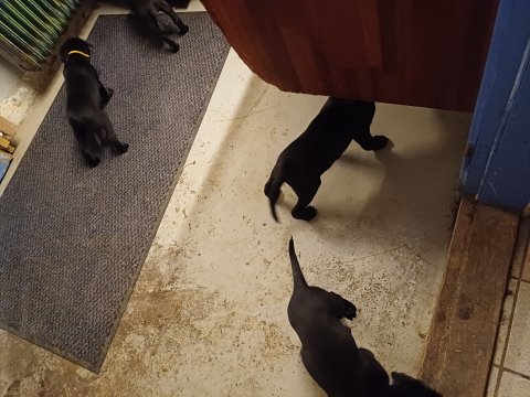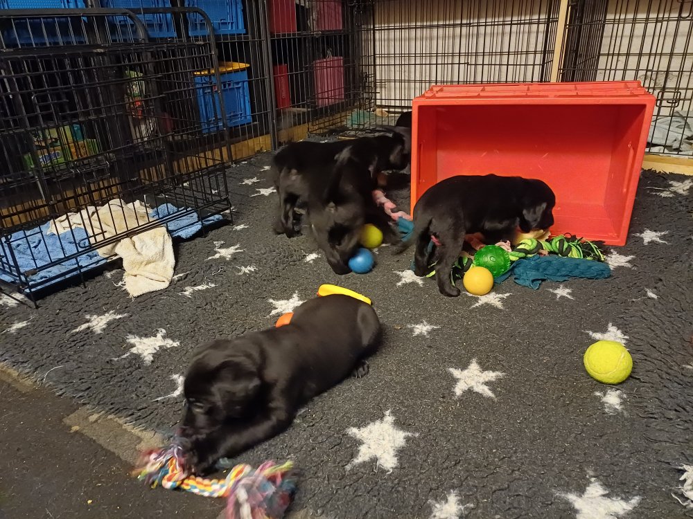 Der er kommet mere liv i hvalperummet, hvalpene har nu hel rummet og hvalpetoilette er kommet ind. De er ved at finde deres egen lyd, så vi kan ofte høre små bjæf. Når de er vågne, bliver der tumlet og prøvet kræfter med hinanden. Vi kan også se at de små hvalpetænder er ved at komme frem, så alt skal undersøges og når de er i hvalpe børnehaven går de på opdagelse, lige nu er det kun i kort tid, så komme de hen til os også lægger sig til at sove.De får nu fast føde opblødt i vand, og de er ved at lærer at de ikke må gå i maden. De elsker at få mælk hos deres Nata og når de har fået mælk, kan de godt ligge og hygge lege med Nata.