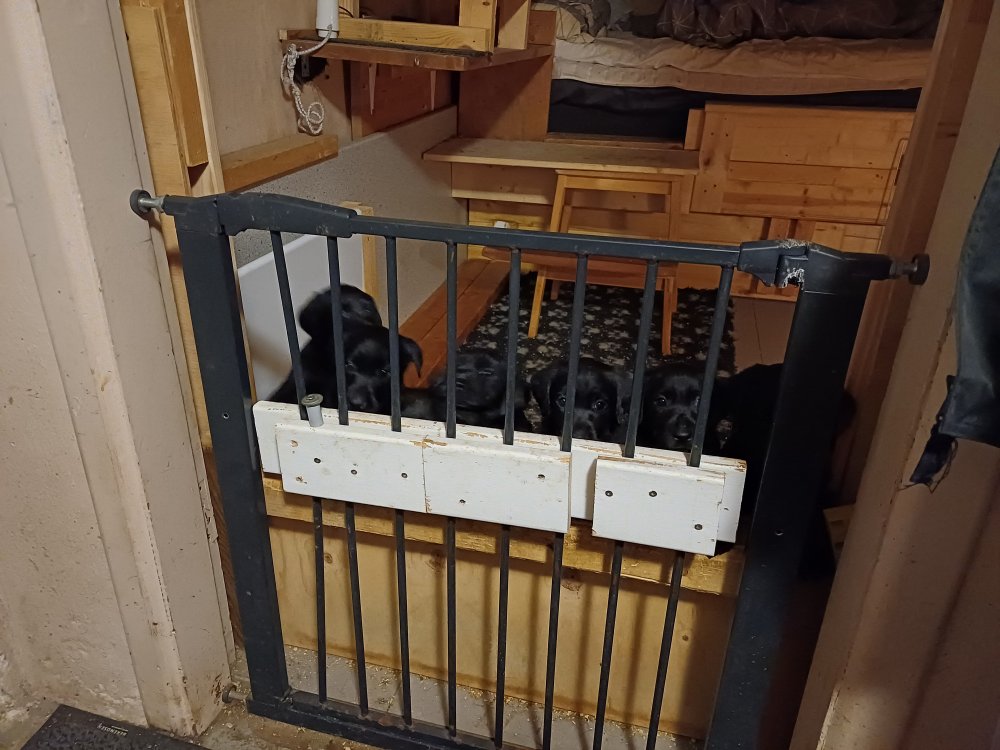 Der er ikke så meget ro i hvalperummet mere hvalpene er blevet mere aktive og nysgerrige, de kigger op når vi kommer forbi rummet. Hvis de andre hunde kommer ned eller vi sætter os ved lågen så er de hurtigt henne ved lågen for at snakke med os. Ved spisetid for de andre hunde i huset, er hvalpene ikke tvivl om at de også skal have mad og de gør lige opmærksom på at de også er klar til mad og mælk fra Nata. De har deres egne opdragelses metoder (hvilke vi nogen gang kan høre), der bliver kæmpet, leget og sovet, de er blevet godt til at bruge deres ”hunde-WC”. Hvalpene kan godt lide at komme ud i "hvalpebørnehaven" og det er ikke altid de synes at de er færdig med at lege, når vi sætter dem i rummet igen. Hvalpene er i denne uge blevet chippet, så snart er de uden halsbånd, da disse ikke holder