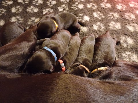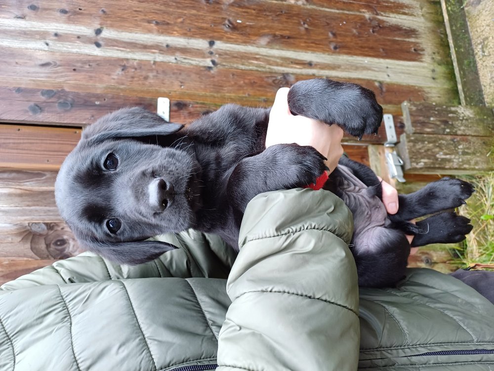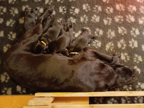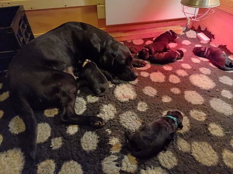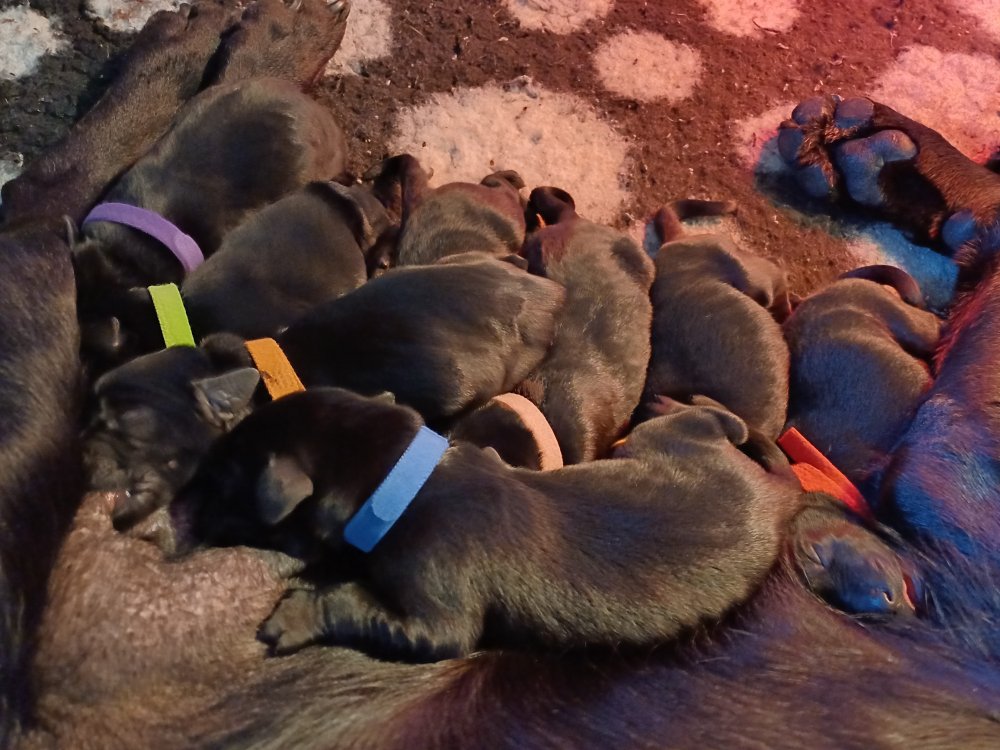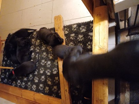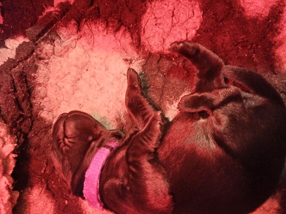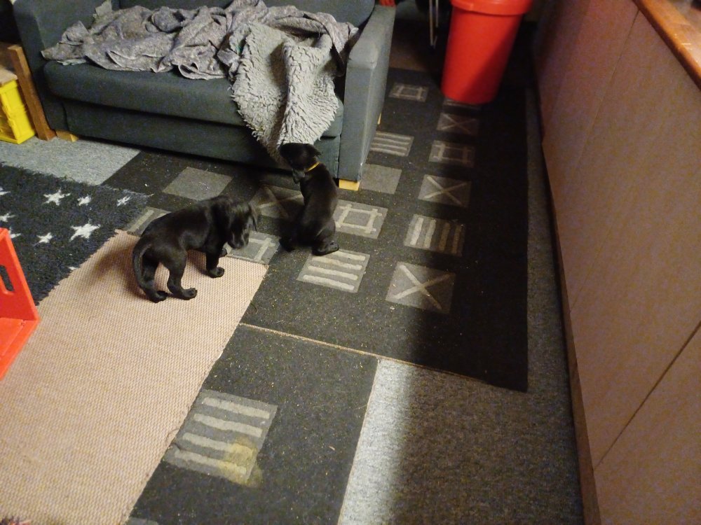 De er flyttet ud i en lidt større hvalpekasse, det giver mere plads til hvalpene og Nata. Hvalpene er begyndt at bevæge sig lidt mere i en blanding mellem at krybe og forsøge på at bruge benene til at gå. Det er sjovt at se dem prøve at komme rundt i hvalpekassen. Stadig væk går tiden med at spise og sove. Når hvalpene sover, kommer Nata op i stuen for at være lidt sammen med resten af familien hvilket hun nyder, men hun vil også rigtig gerne være sammen med hendes hvalpe. Vi er begyndt at kunne ane de små sprækker ved øjnene på hvalpene, se det bliver så spændende at se når de små øjne kommer frem.