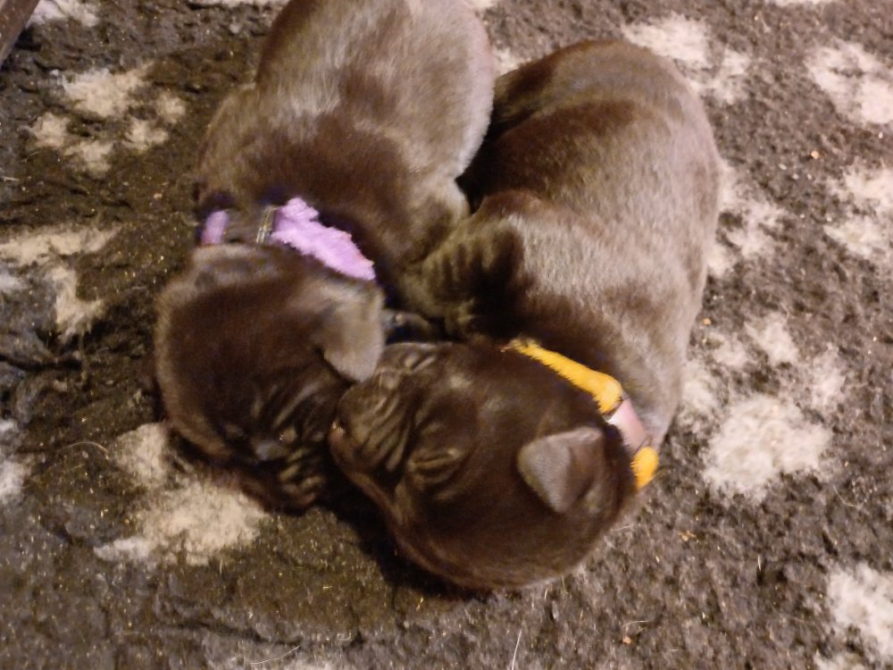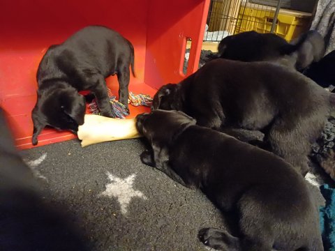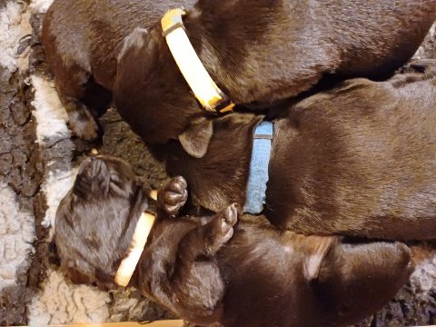 Hvalpene har ikke længere deres halsbånd på, da det ikke holder når leger med hinanden og nu er de chippet og fået navn i stedet for farver. Hvalpene bliver mere og mere modige og går på nye opdagelser og alt bliver undersøgt når de er i "hvalpebørnehaven". De finder hurtig på noget nyt i forhold til dagen før. De løber frem og tilbage, prøver kræfter med sig selv og hinanden. De elsker at tage deres legetøj i munden og komme hen og viser det. De er blevet svære at fotografer, for der hele tiden gang i dem. Hvalpene vil rigtig gerne snakkes med os når vi kommer ned til dem og de kommer ofte hen til lågen i hvalperummet og gør opmærksom på at de er i rummet. Det bedst de ved er at komme op, og så er de rigtig søde.
