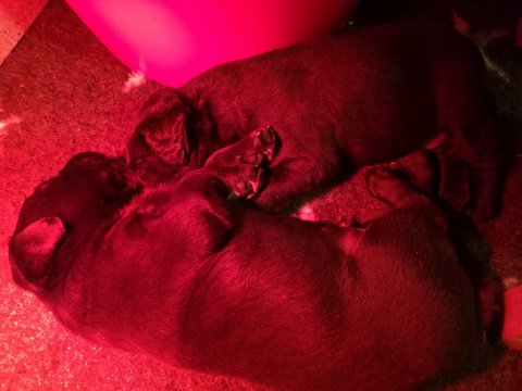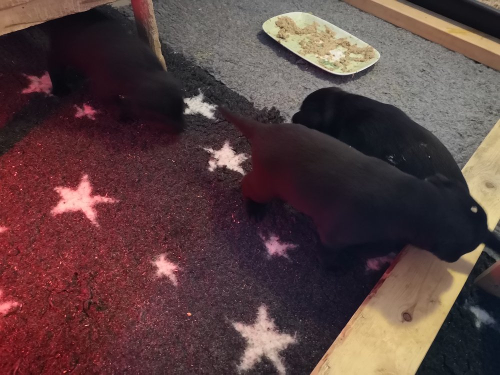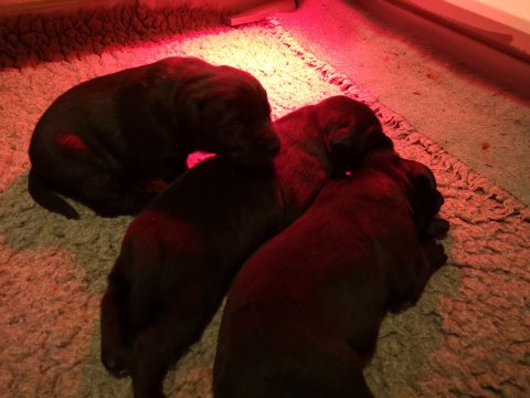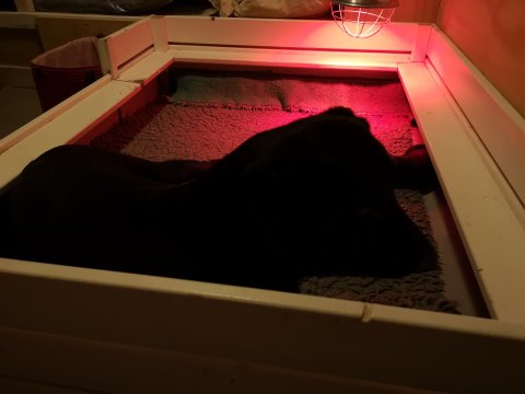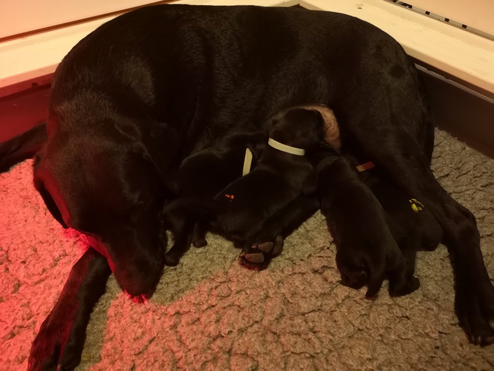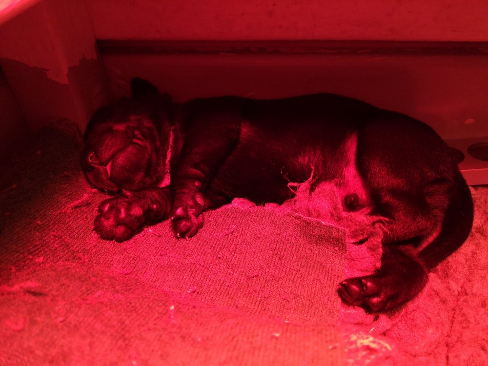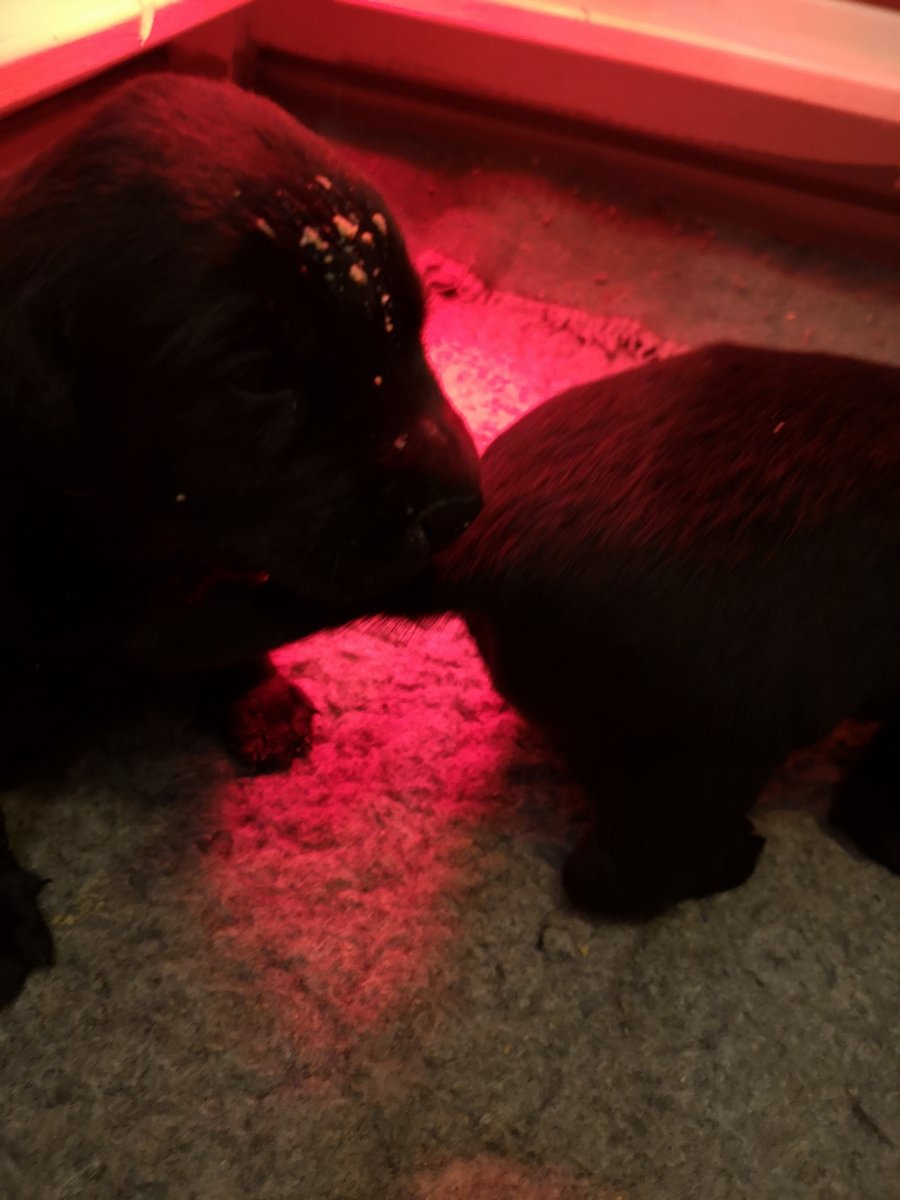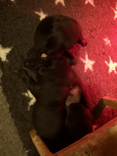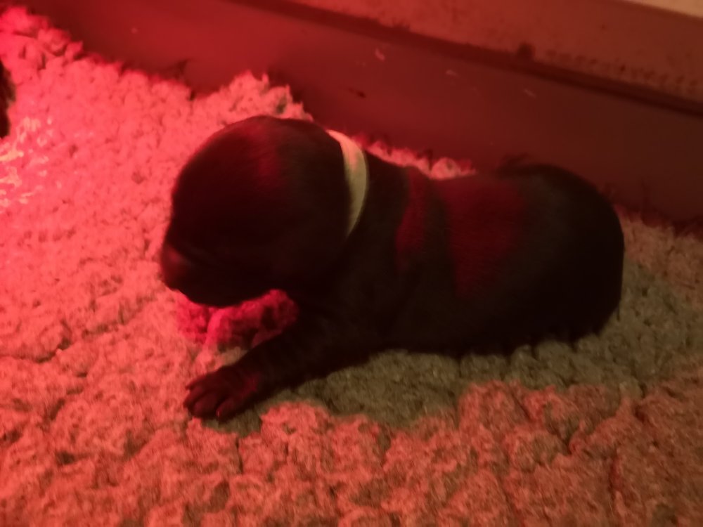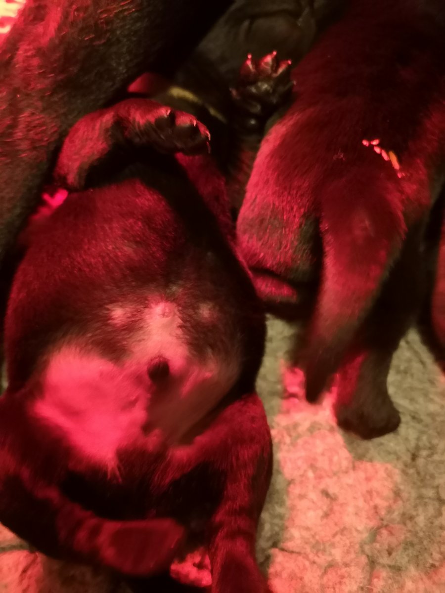Lidt billeder fra den første uge i hvalpekassen, det røde lys skyldes varmelampe.