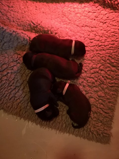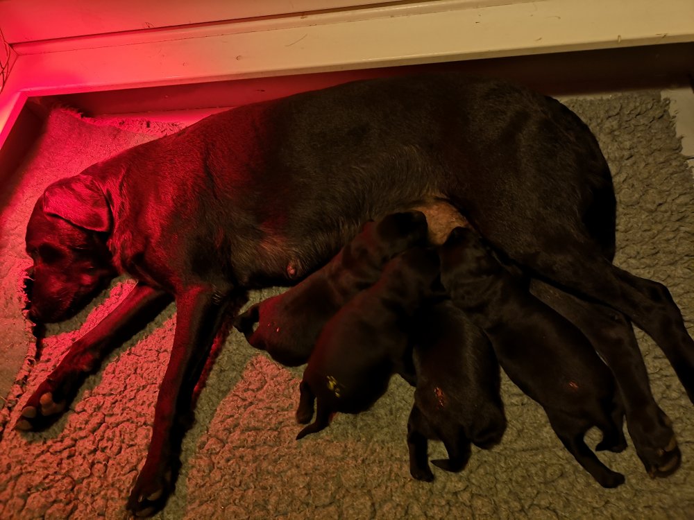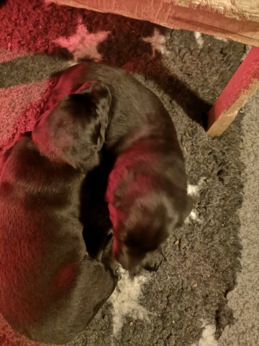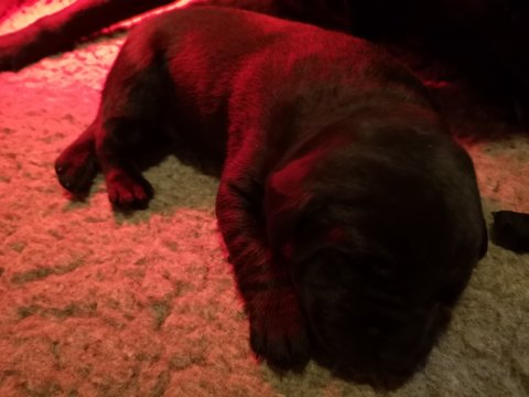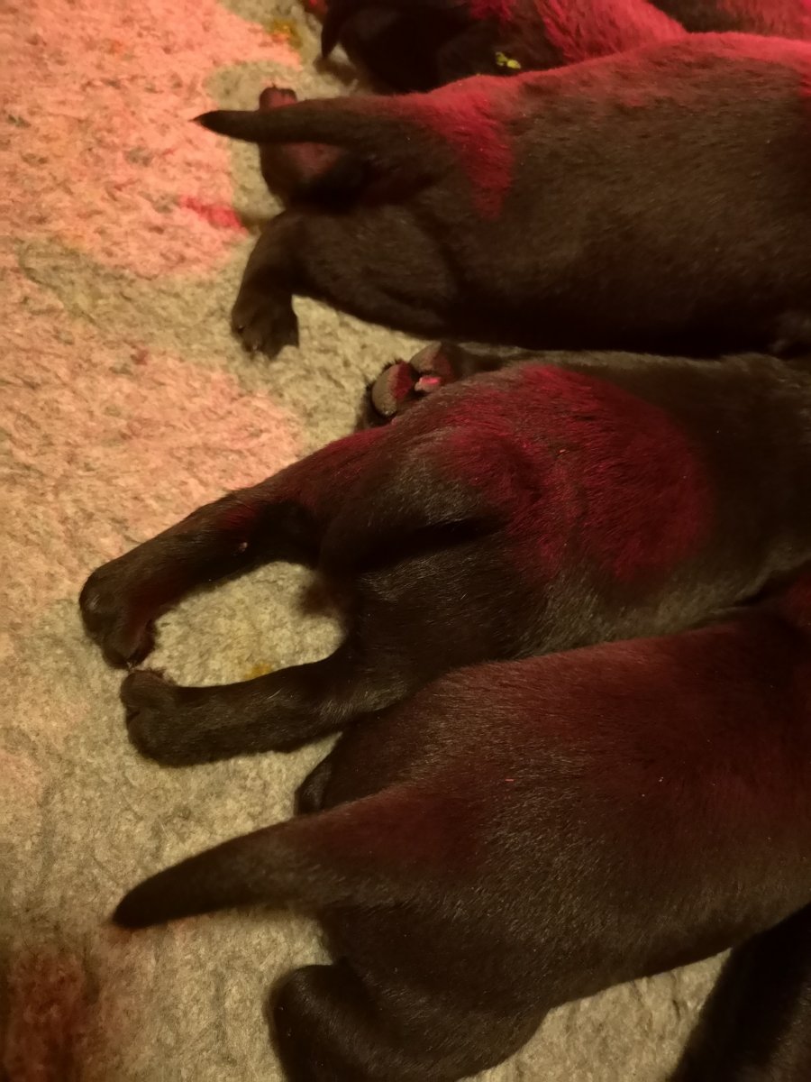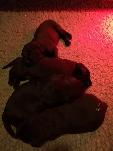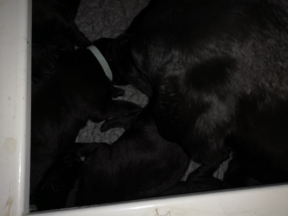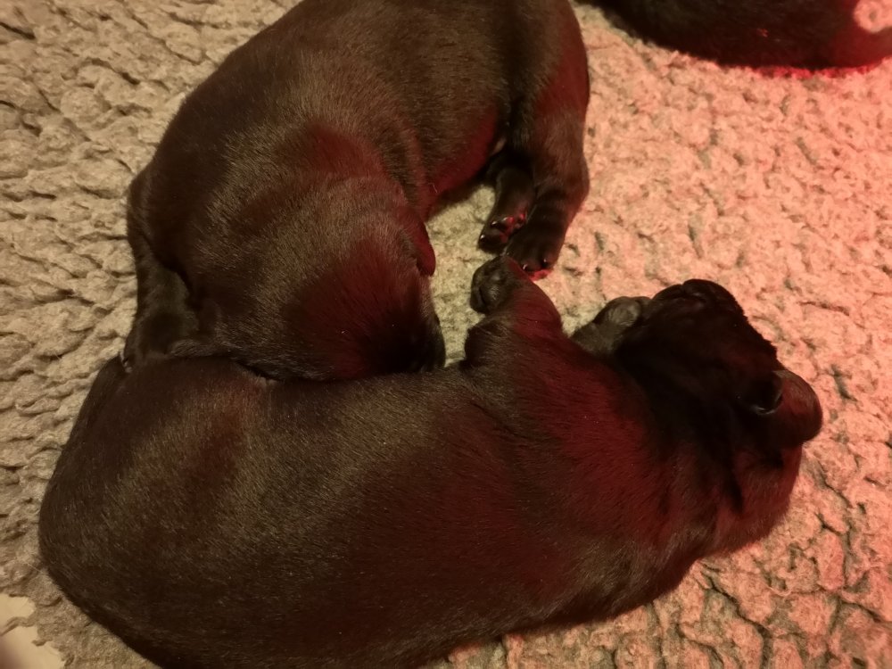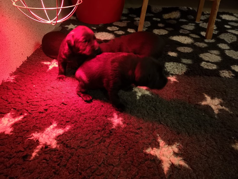 Lidt billeder fra den første uge i hvalpekassen, det røde lys skyldes varmelampe.