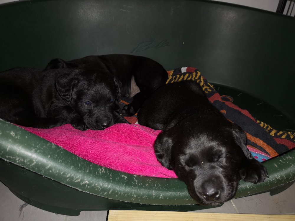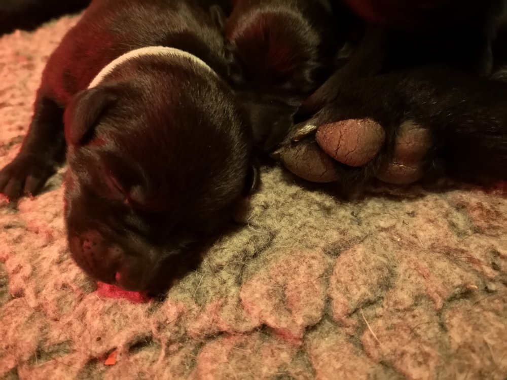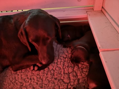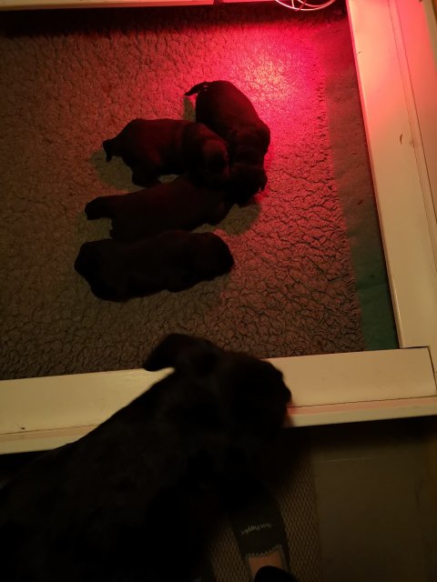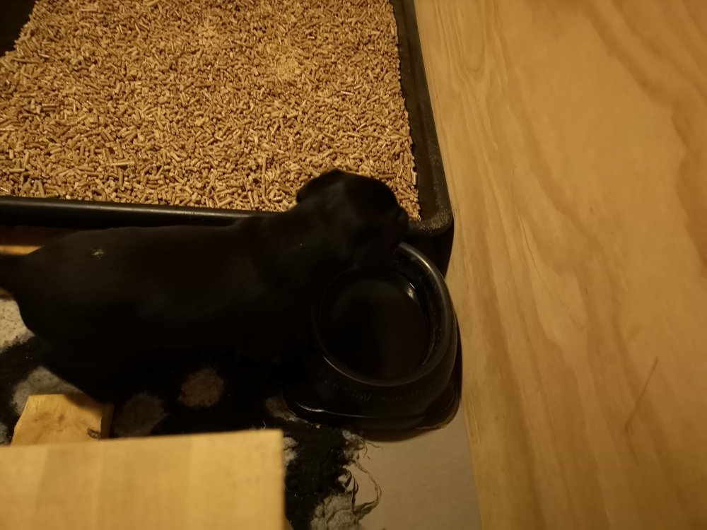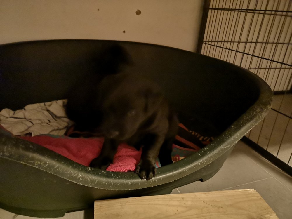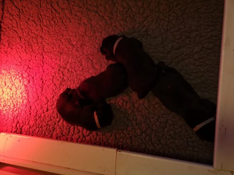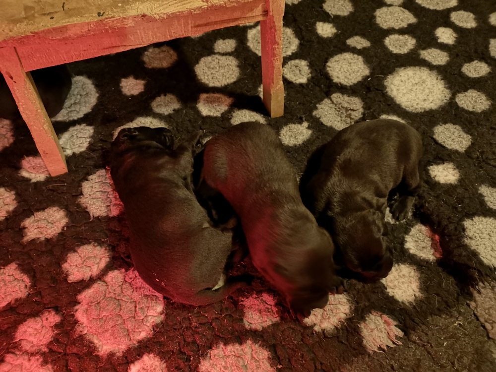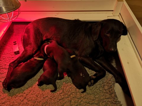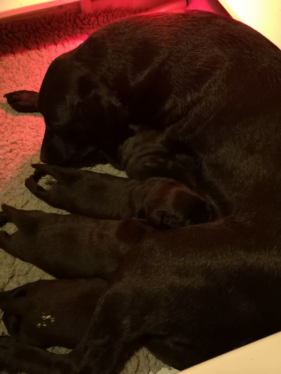 Lidt billeder fra den første uge i hvalpekassen, det røde lys skyldes varmelampe.