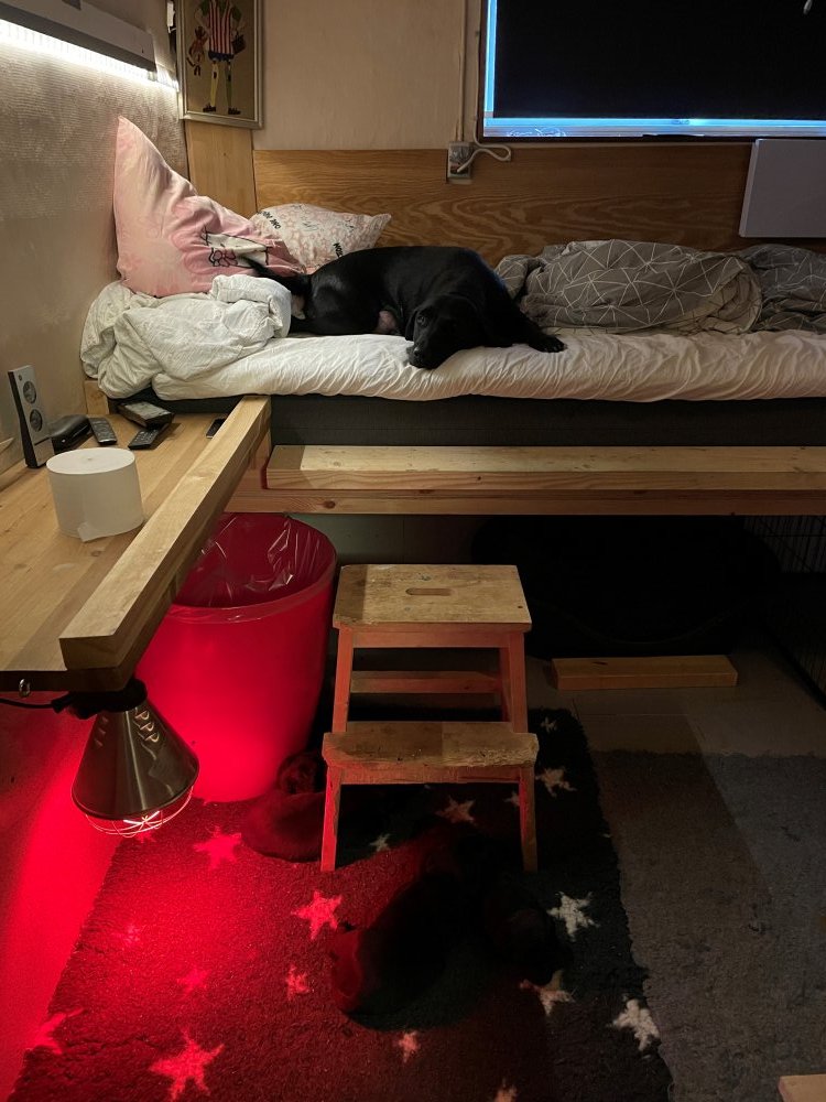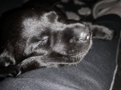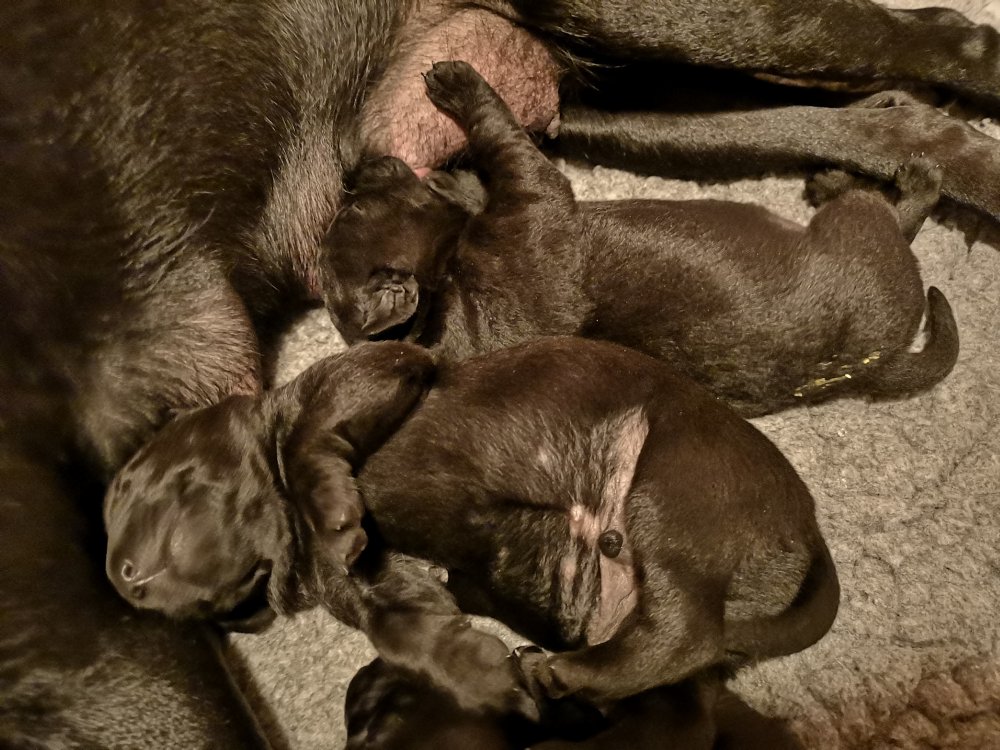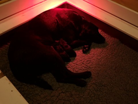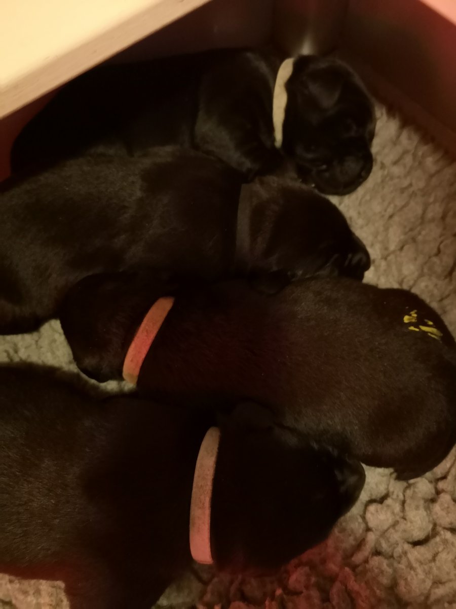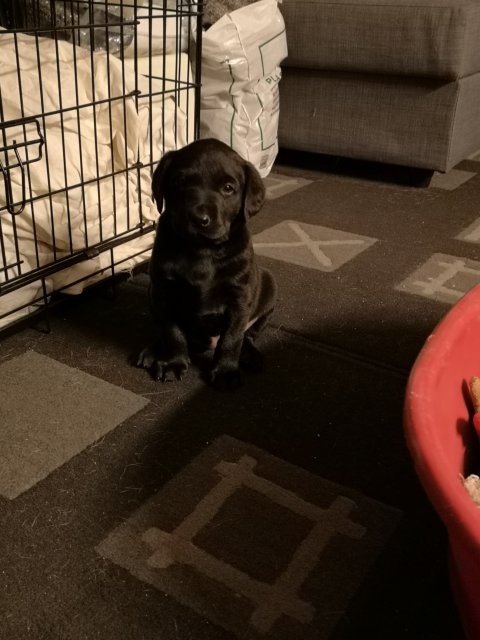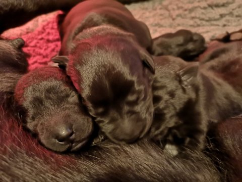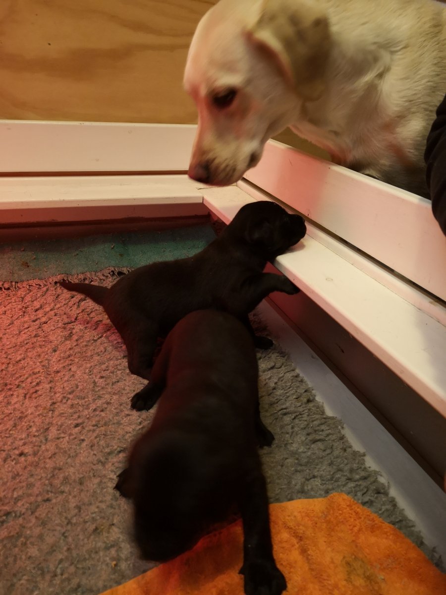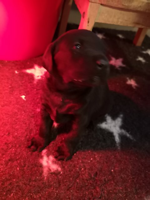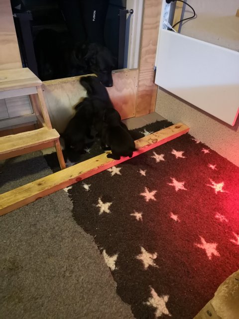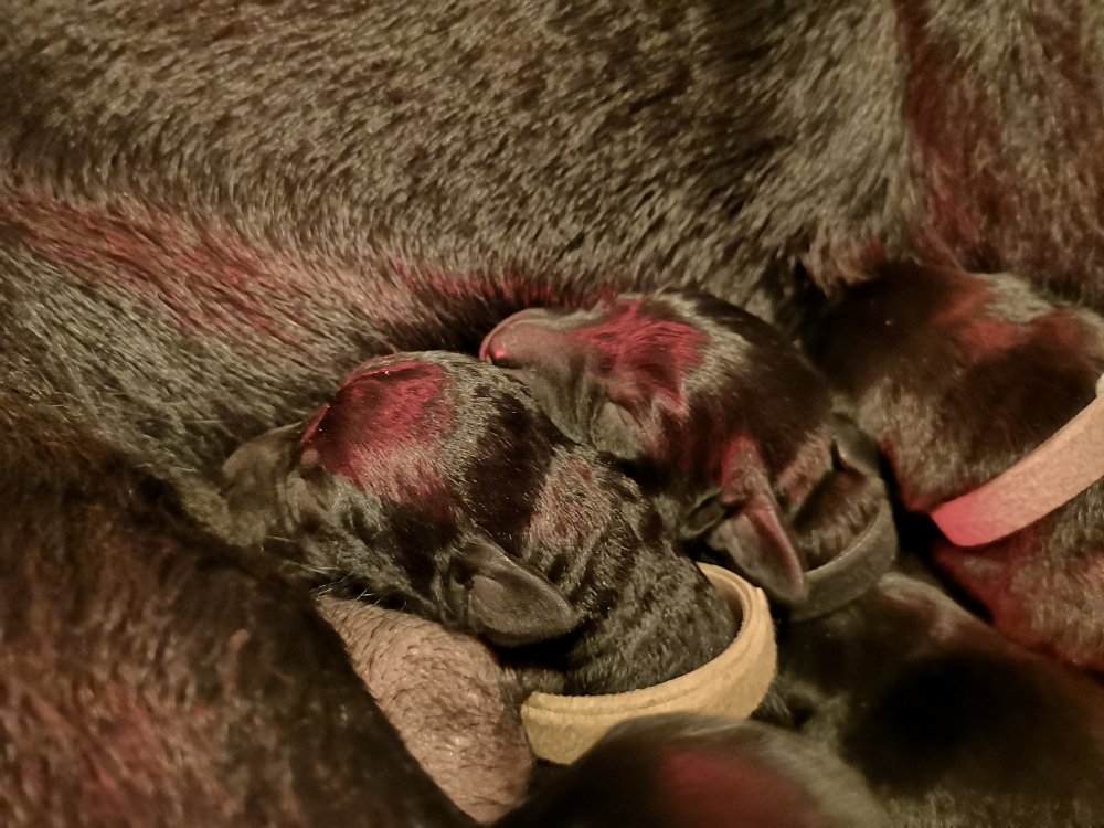 Lidt billeder fra den første uge i hvalpekassen, det røde lys skyldes varmelampe.