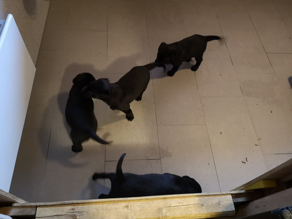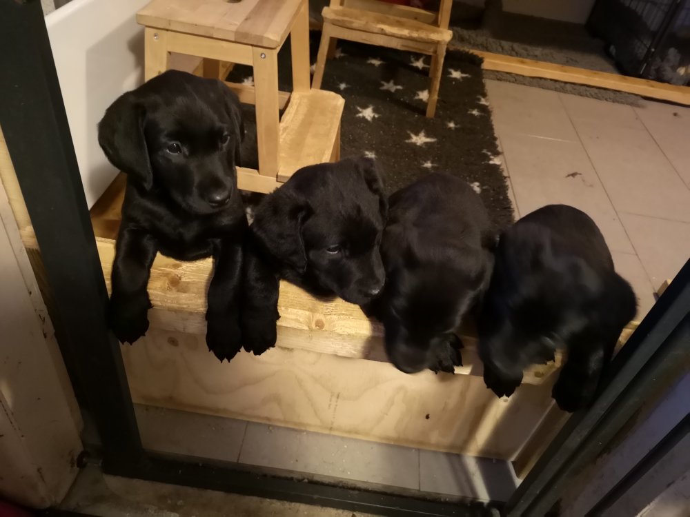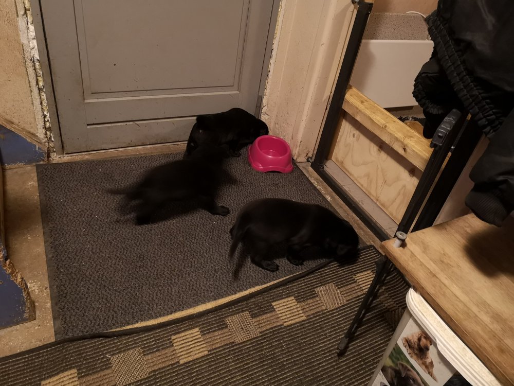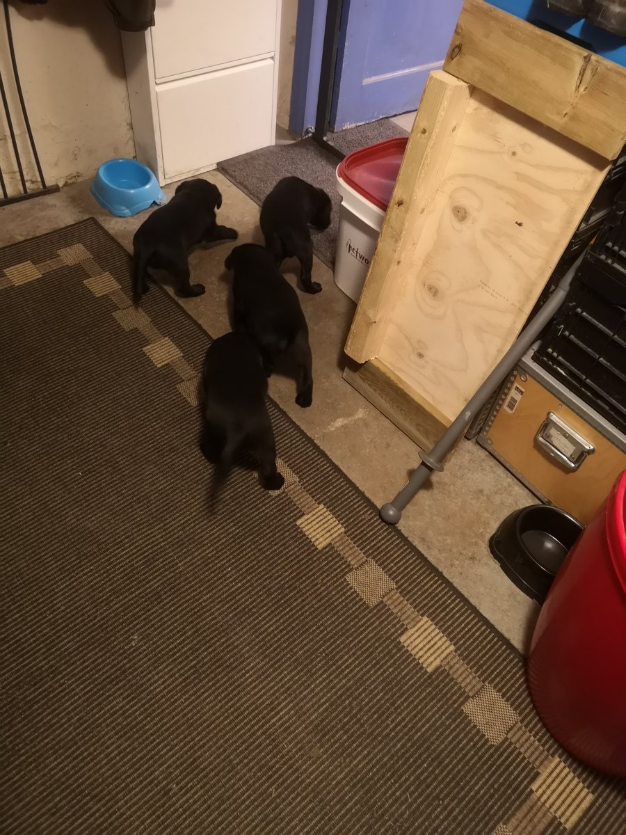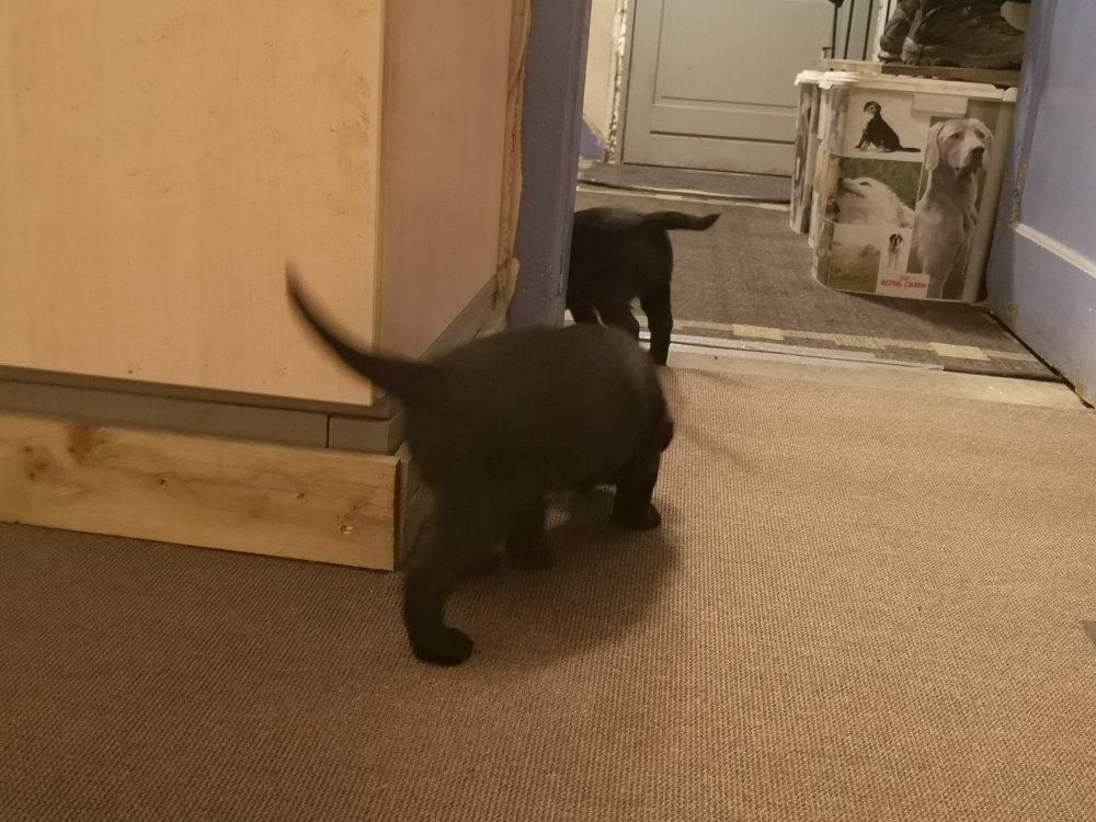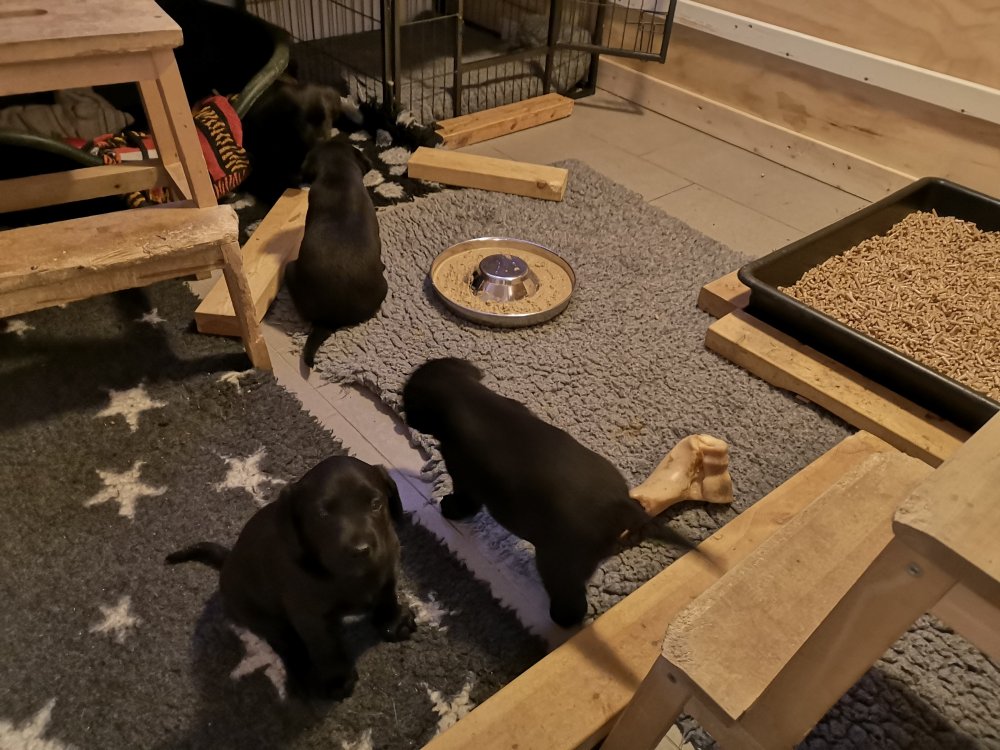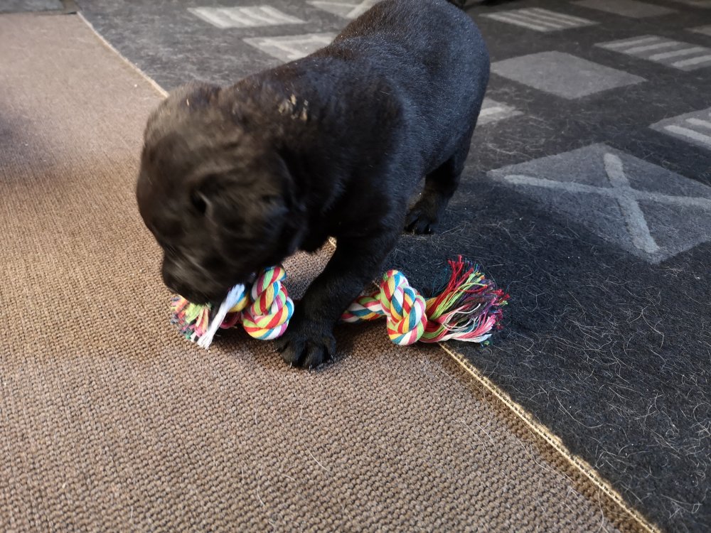 Hvalpene er blevet rigtig aktive i hvalperummet, der bliver leget, prøvet kræfter så de kan blive til rigtig hunde. Det er nogle rigtig glade hvalpe der kommer hen til os når vi kommer ned til dem. De vil rigitg gerne ud på nye opdagelser både ude og indenfor.