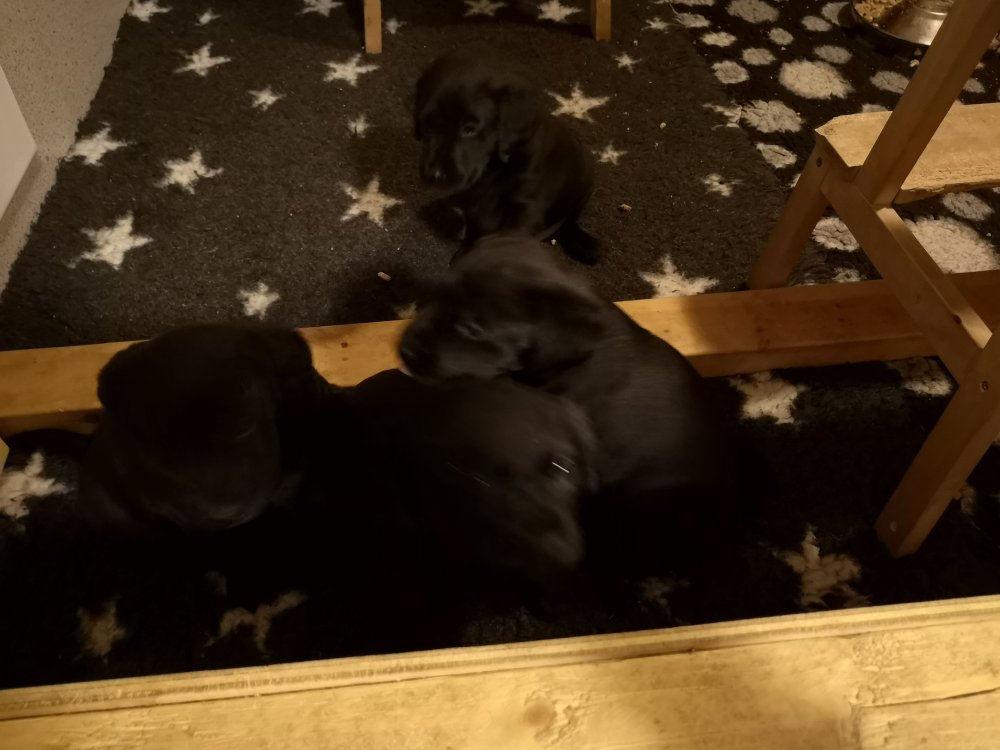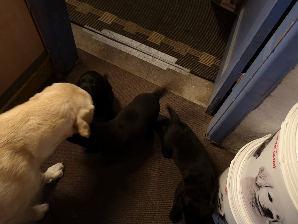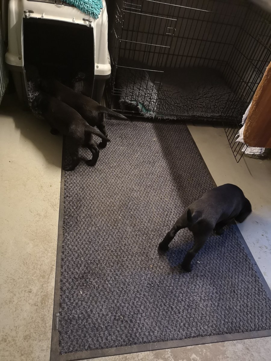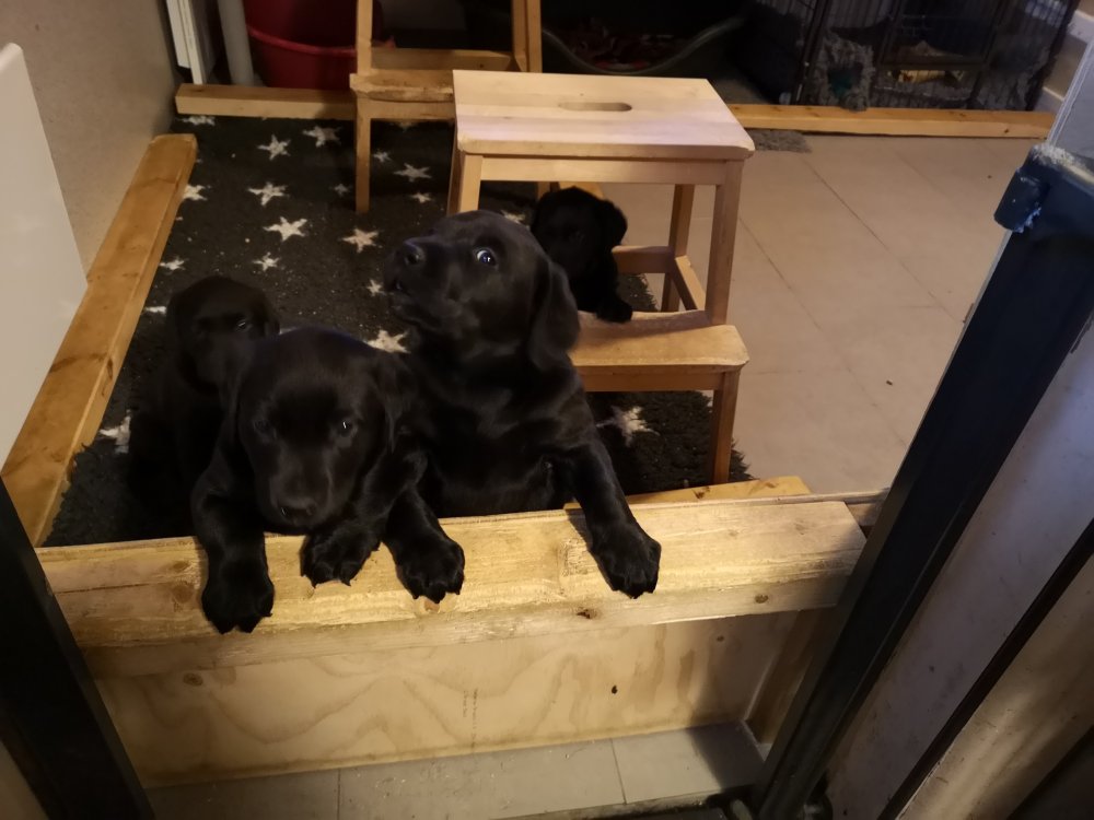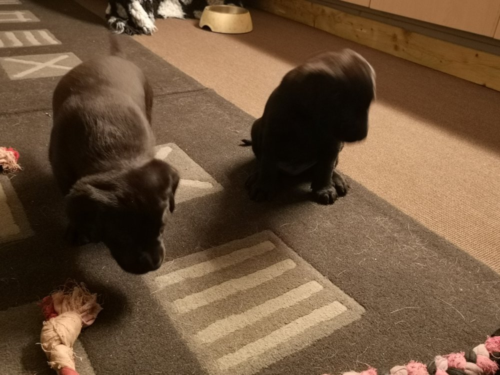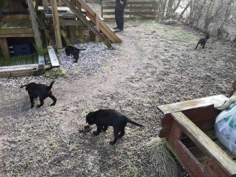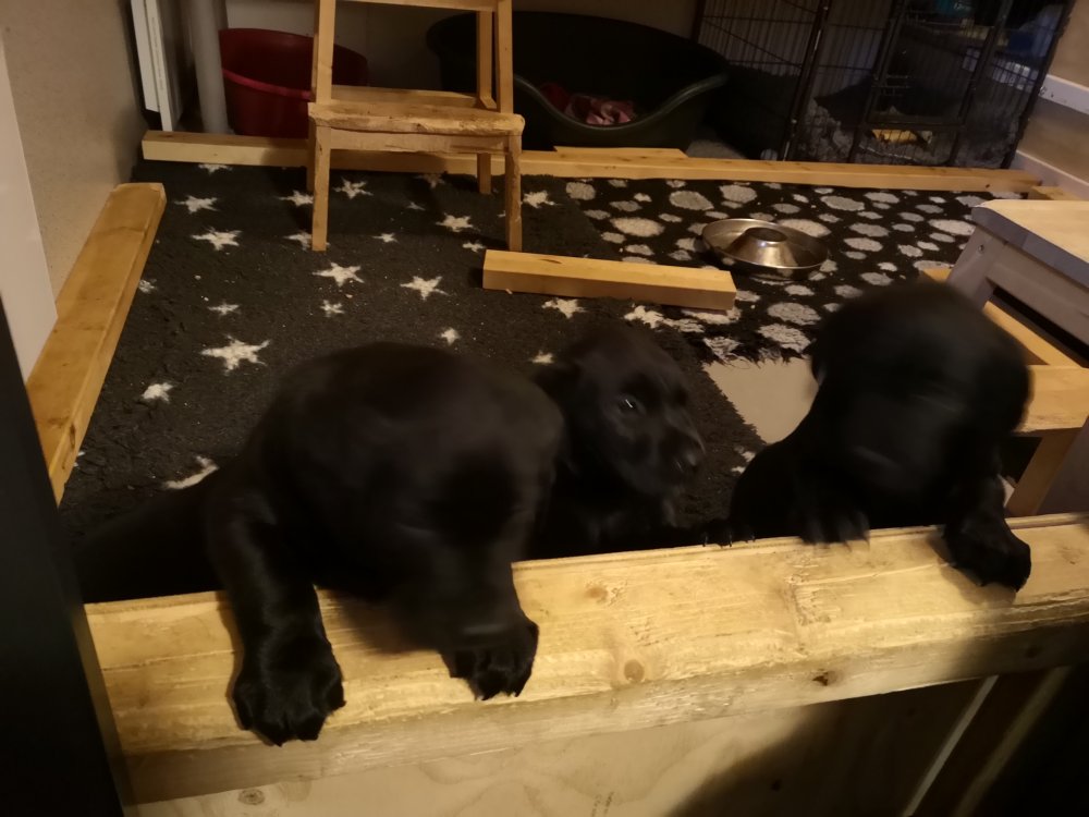 Hvalpene er blevet rigtig aktive i hvalperummet, der bliver leget, prøvet kræfter så de kan blive til rigtig hunde. Det er nogle rigtig glade hvalpe der kommer hen til os når vi kommer ned til dem. De vil rigitg gerne ud på nye opdagelser både ude og indenfor.