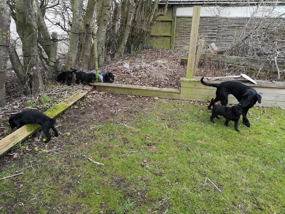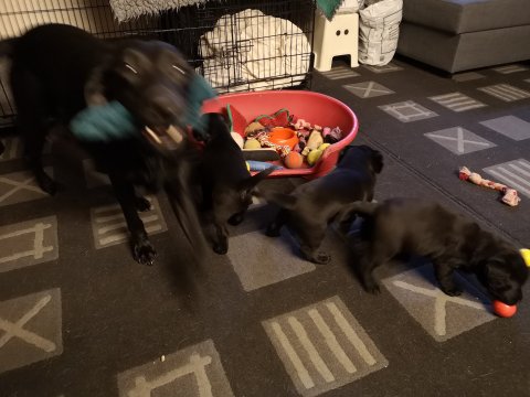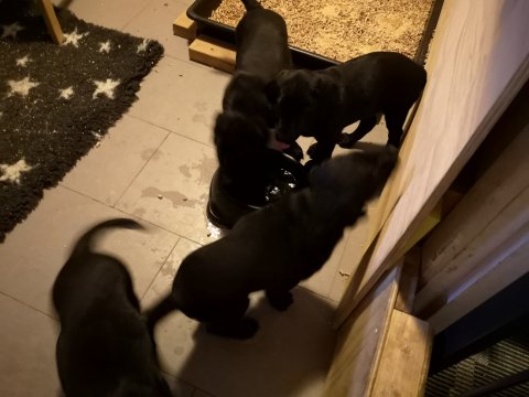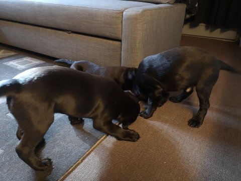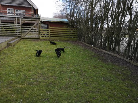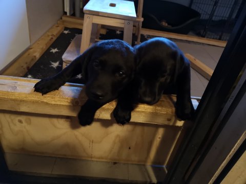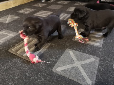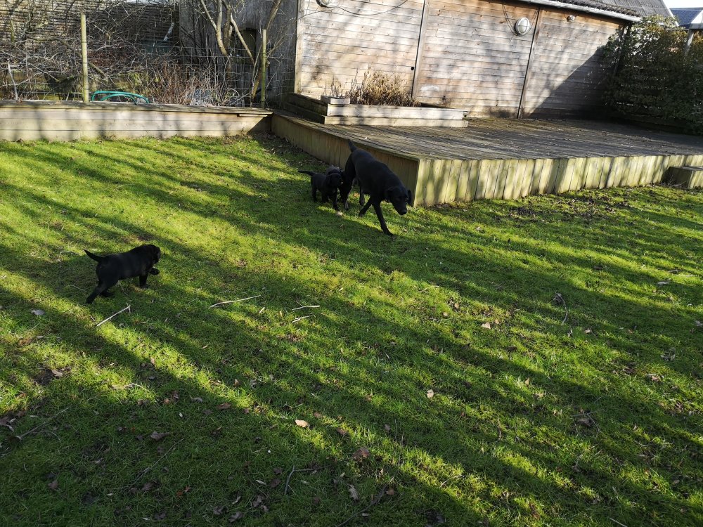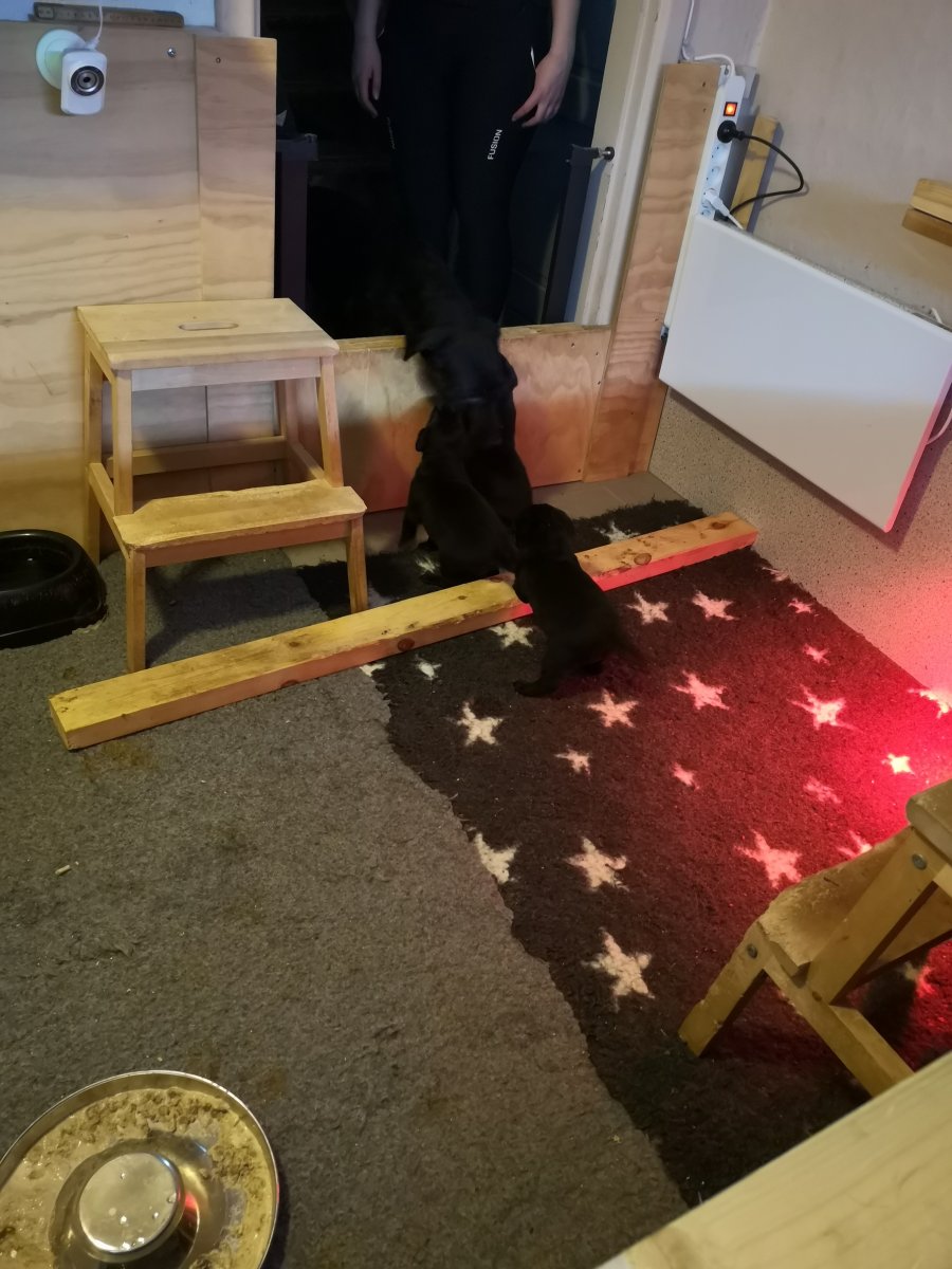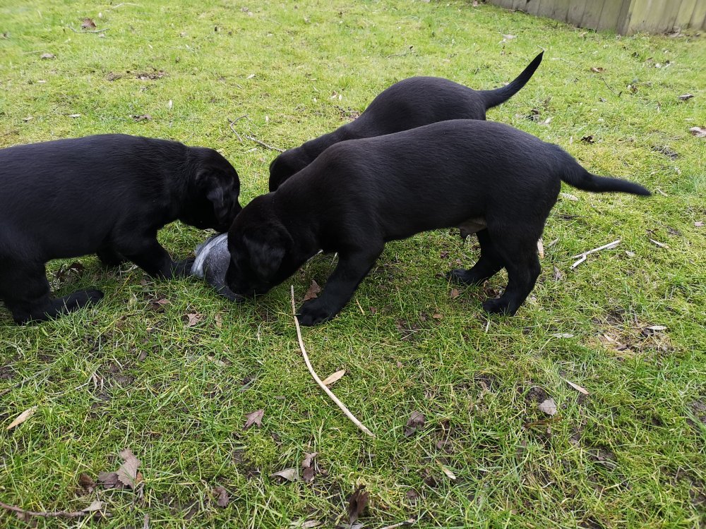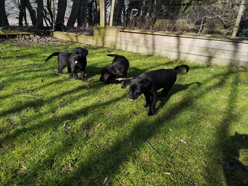 Hvalpene er blevet rigtig aktive i hvalperummet, der bliver leget, prøvet kræfter så de kan blive til rigtig hunde. Det er nogle rigtig glade hvalpe der kommer hen til os når vi kommer ned til dem. De vil rigitg gerne ud på nye opdagelser både ude og indenfor.