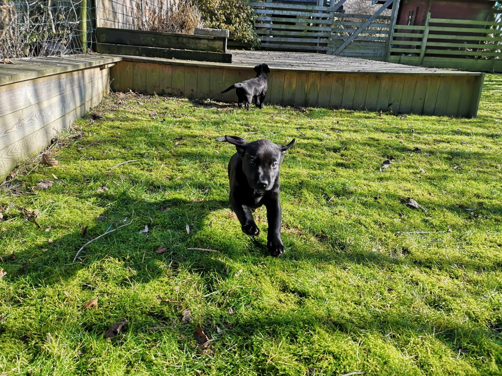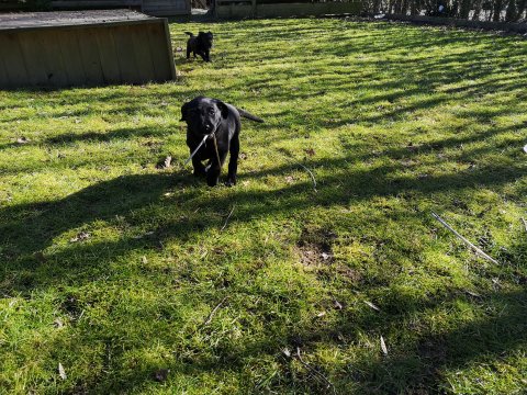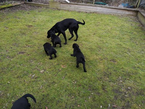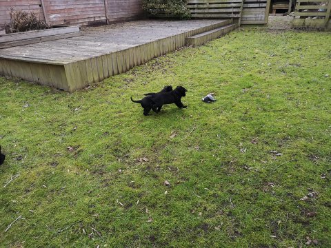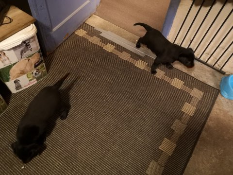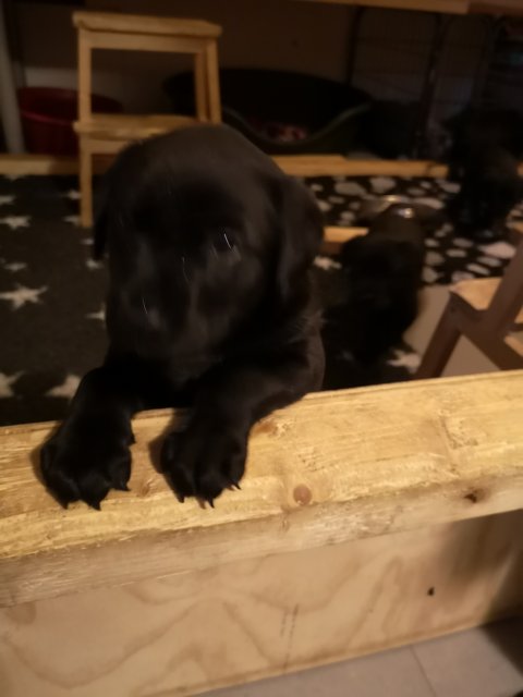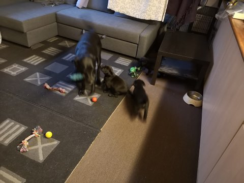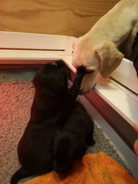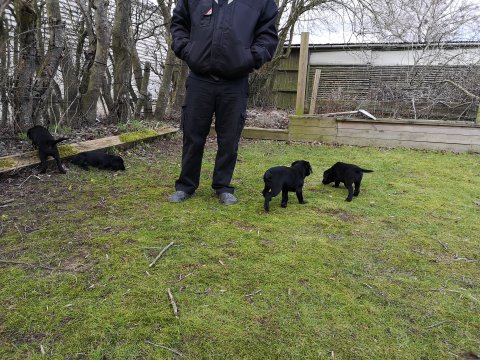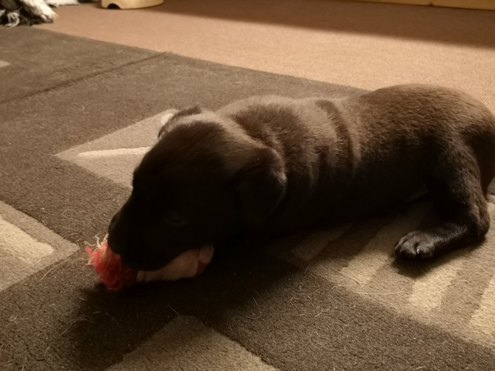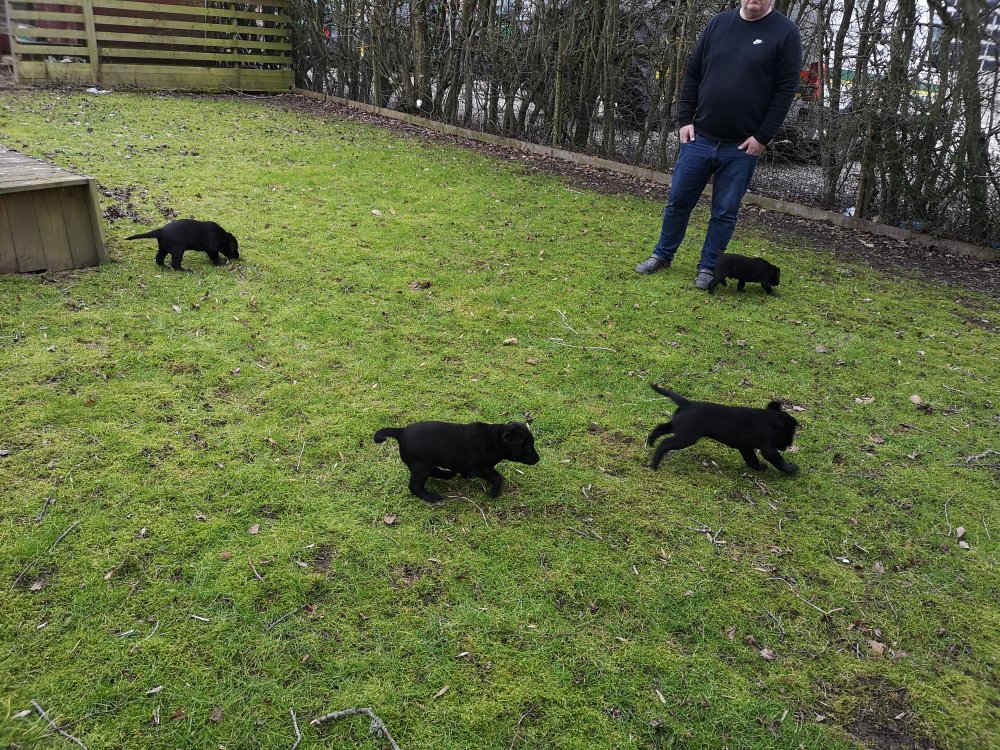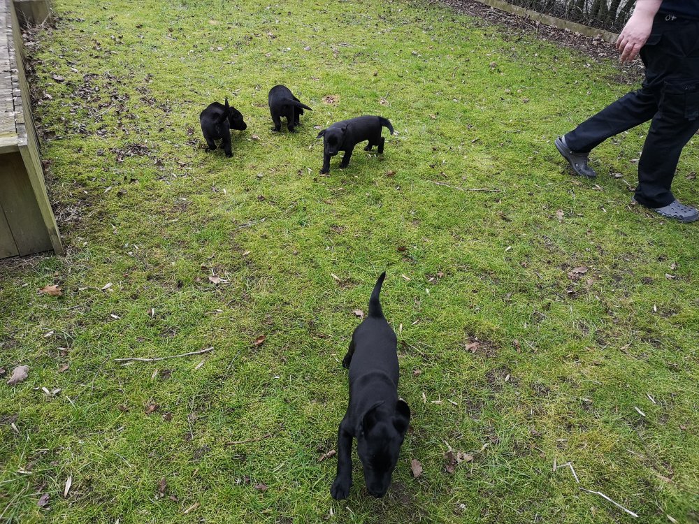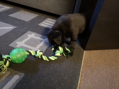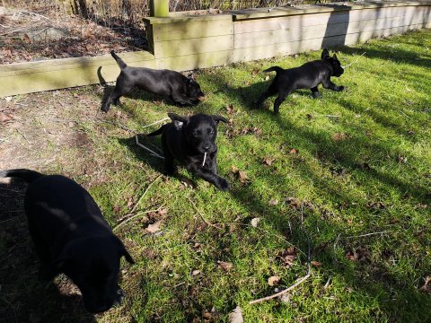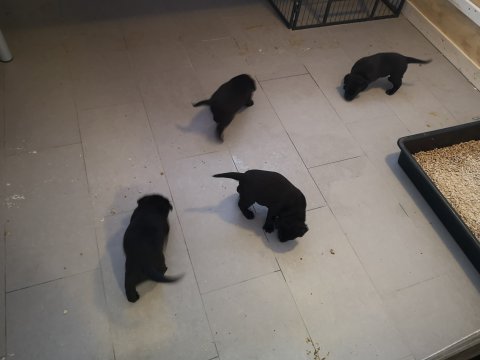 Hvalpene er blevet rigtig aktive i hvalperummet, der bliver leget, prøvet kræfter så de kan blive til rigtig hunde. Det er nogle rigtig glade hvalpe der kommer hen til os når vi kommer ned til dem. De vil rigitg gerne ud på nye opdagelser både ude og indenfor.