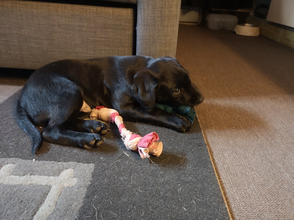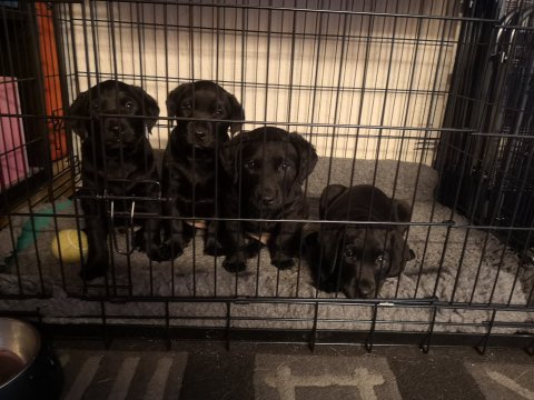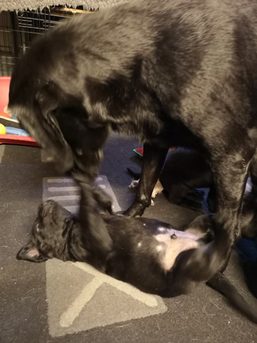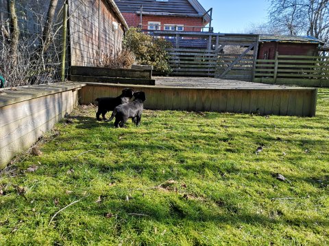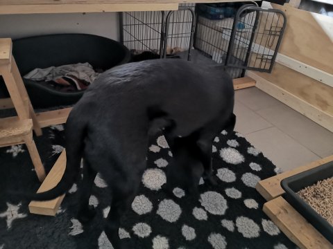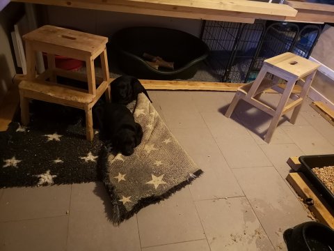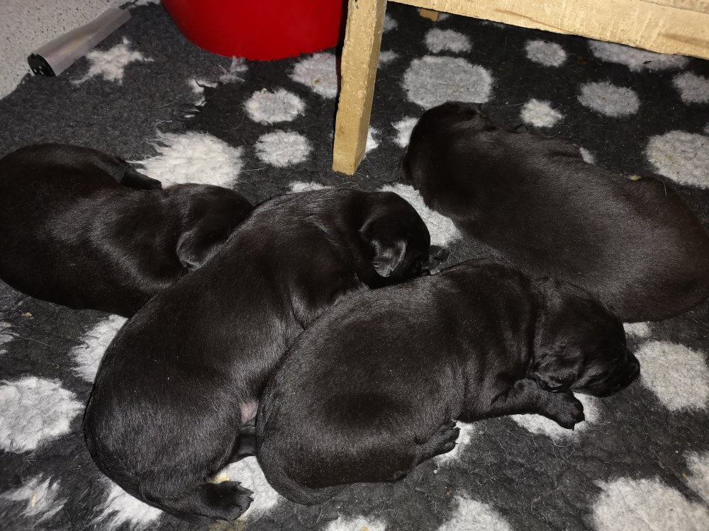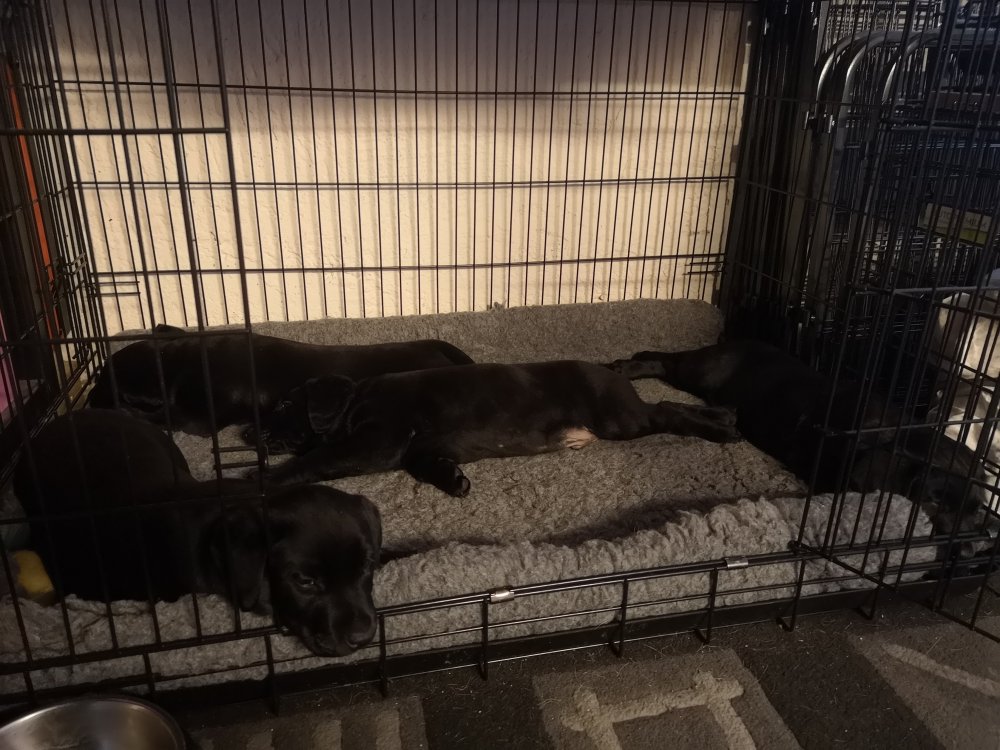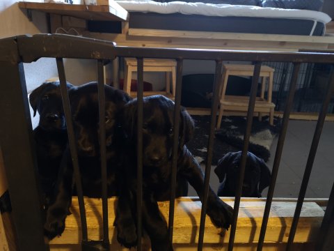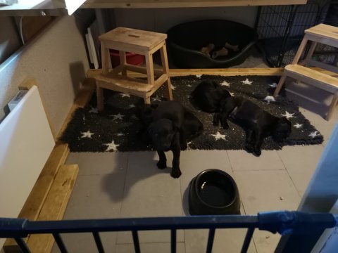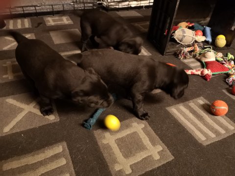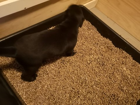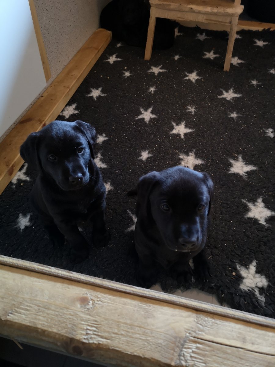 Det er den sidste uge i hvalpekassen og der har rigtig været gang i rummet, der blevet tumlet, leget og hygget samt trænet i at blive renlig. De har hver dag været udenfor og i hvalpebørnehave og de er ikke altid klar til at de skal ind i deres rum igen, de vil rigtig gerne ud på nye oplevelser. Når vi kommer ned og ser ind rummet er de der med det samme og vil meget gerne snakkes med. De er alle klar og nysgerrig til at komme ud i verden ud på nye oplevelser i deres nye familier.