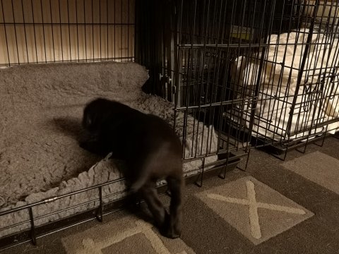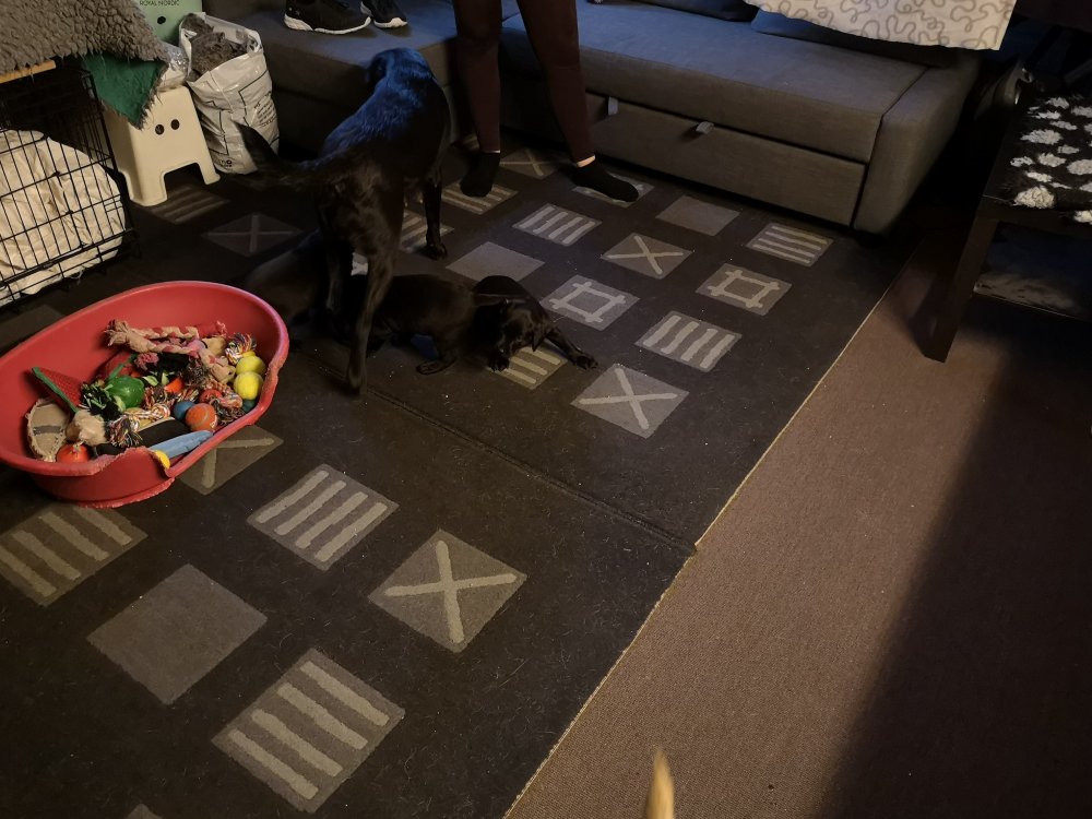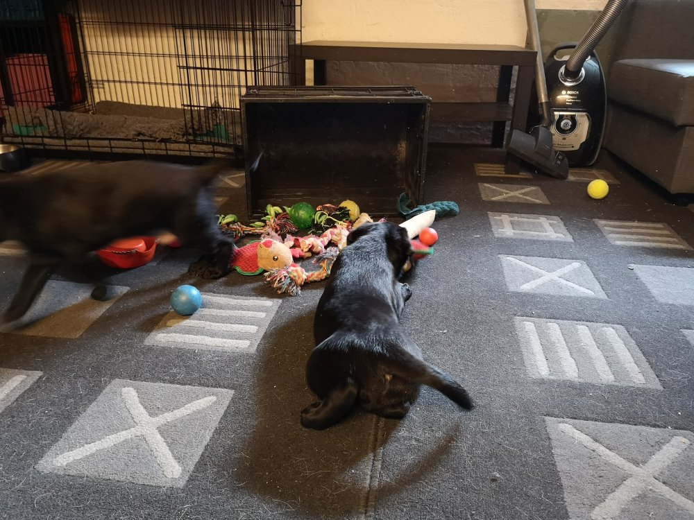 Der er kommet liv i hvalperummet, hvalpene har nu hel rummet.