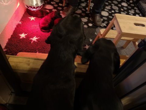 Når vi fløjter eller kalder på dem komme de løbene i fuld firspring hen til os. De er blevet svære at fotografer, for der hele tiden gang i dem, når de er vågne.