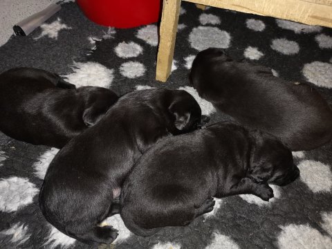 I denne uge er der sket meget med hvalpene. De har alle fået øjne og begyndt at bevæge sig rundt i kassen næsten som rigtig små hunde. De har også opdaget de andre hvalpe, så de er begyndt at "slås" med hinanden. De træner i og finde deres egen lyd, små bjæf og noget der ligner at de kan blive til store "farlige hunde" :-)